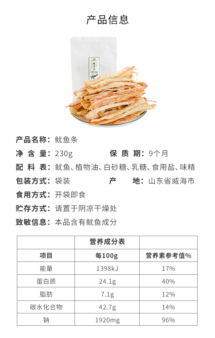 【米马团购】食味的初相 秘鲁深海巨鱿 鱿鱼条鱿鱼丝 230g*2袋 原味辣味可选