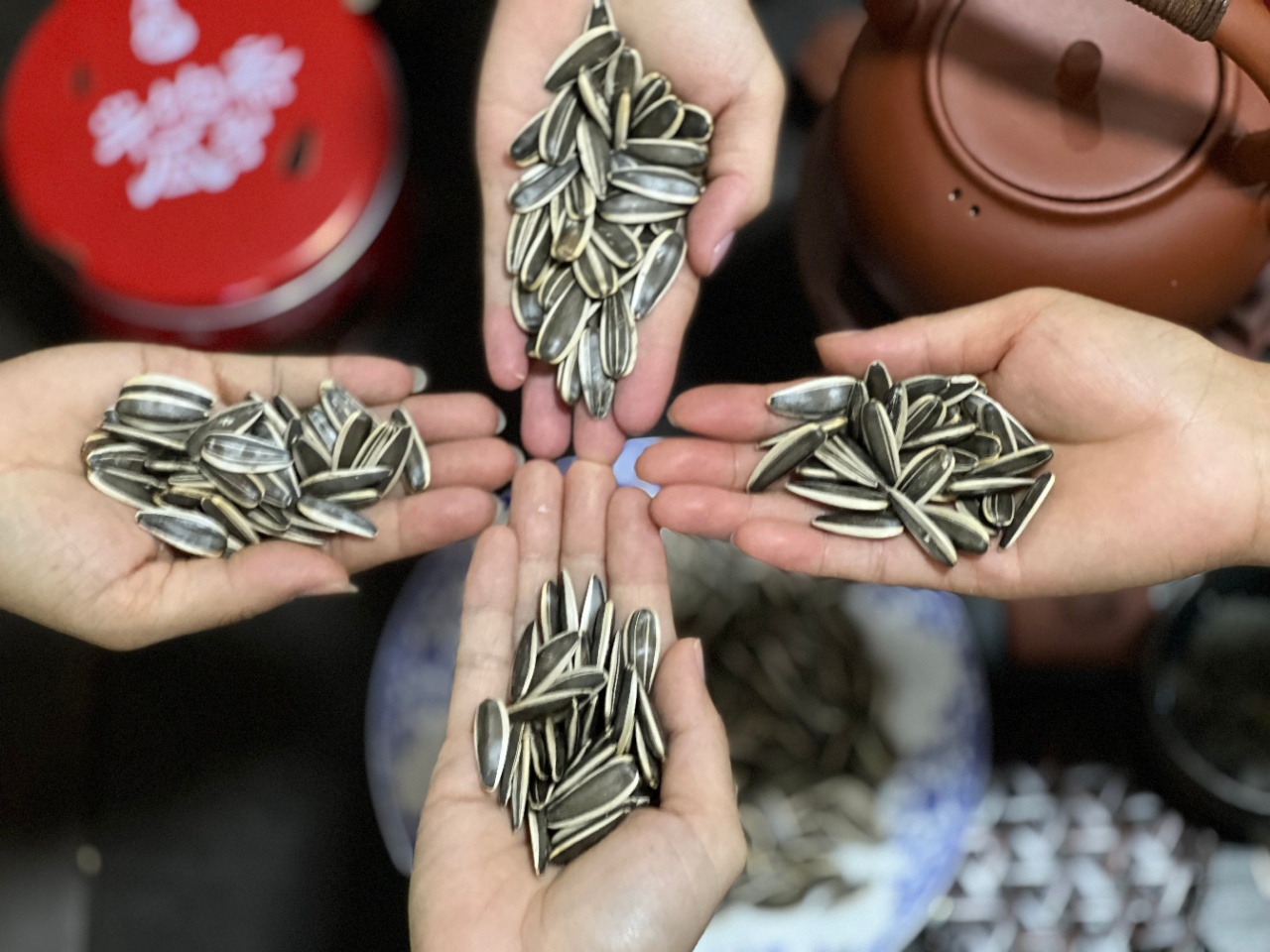 晾晒完全干以后机器打子,整个瓜子的一生,没有落过地,所以瓜子特别干净卫生,吃了不脏手。