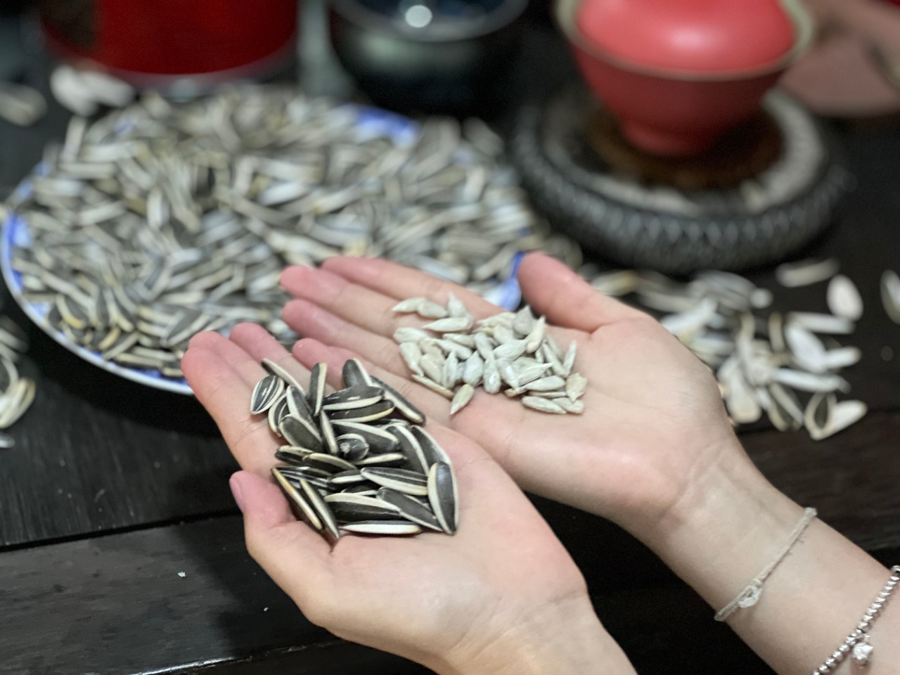 收回来的瓜子,9道机选,2道人工手选,一斤瓜子只选2-4两,可怕的不是瓜子大,而是每一颗都这么大。