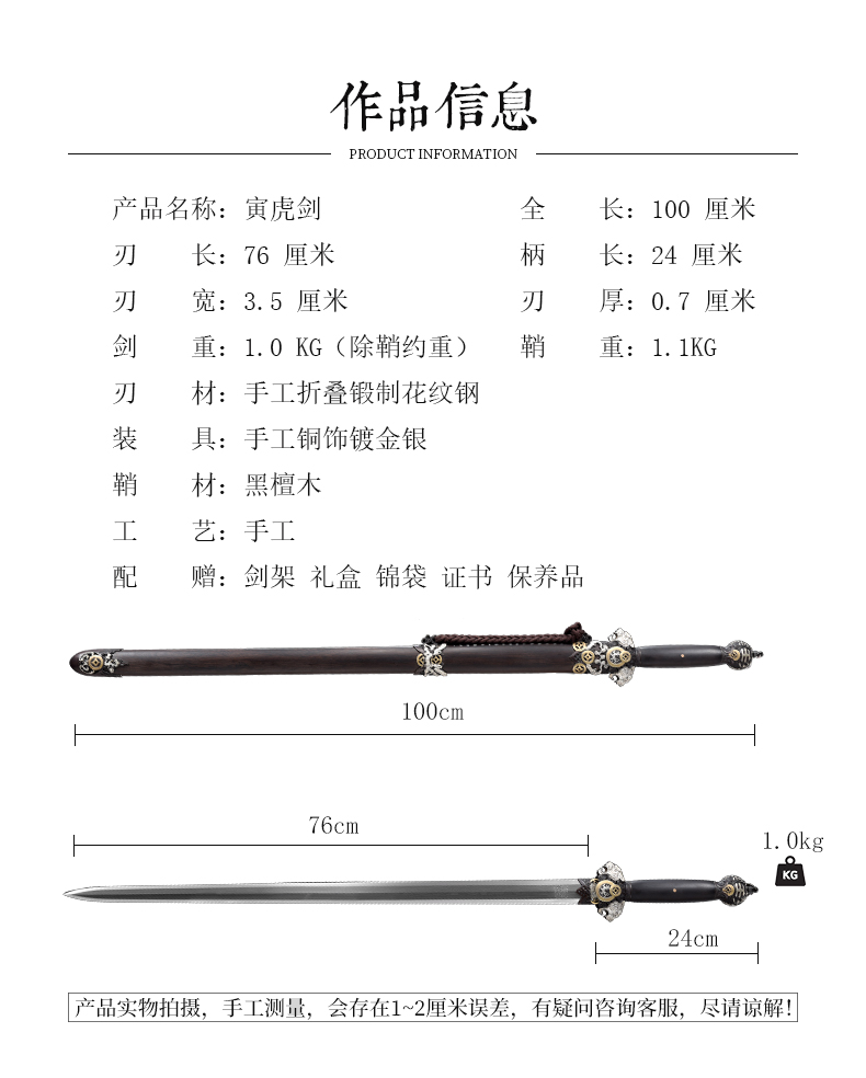寅虎剑 生肖宝剑 龙泉沈广隆宝剑 传统宝剑 未开刃 sgl-3188