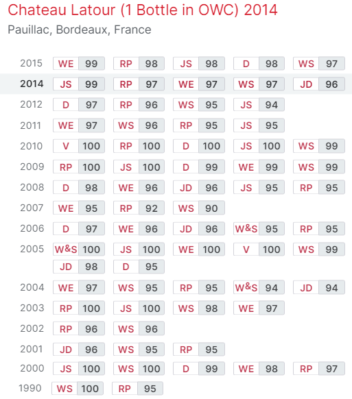 【正品行货,售完无补】【JS99+RP97+WS97+WE97】波尔多一级名庄:拉图酒庄正牌干红(2014年)