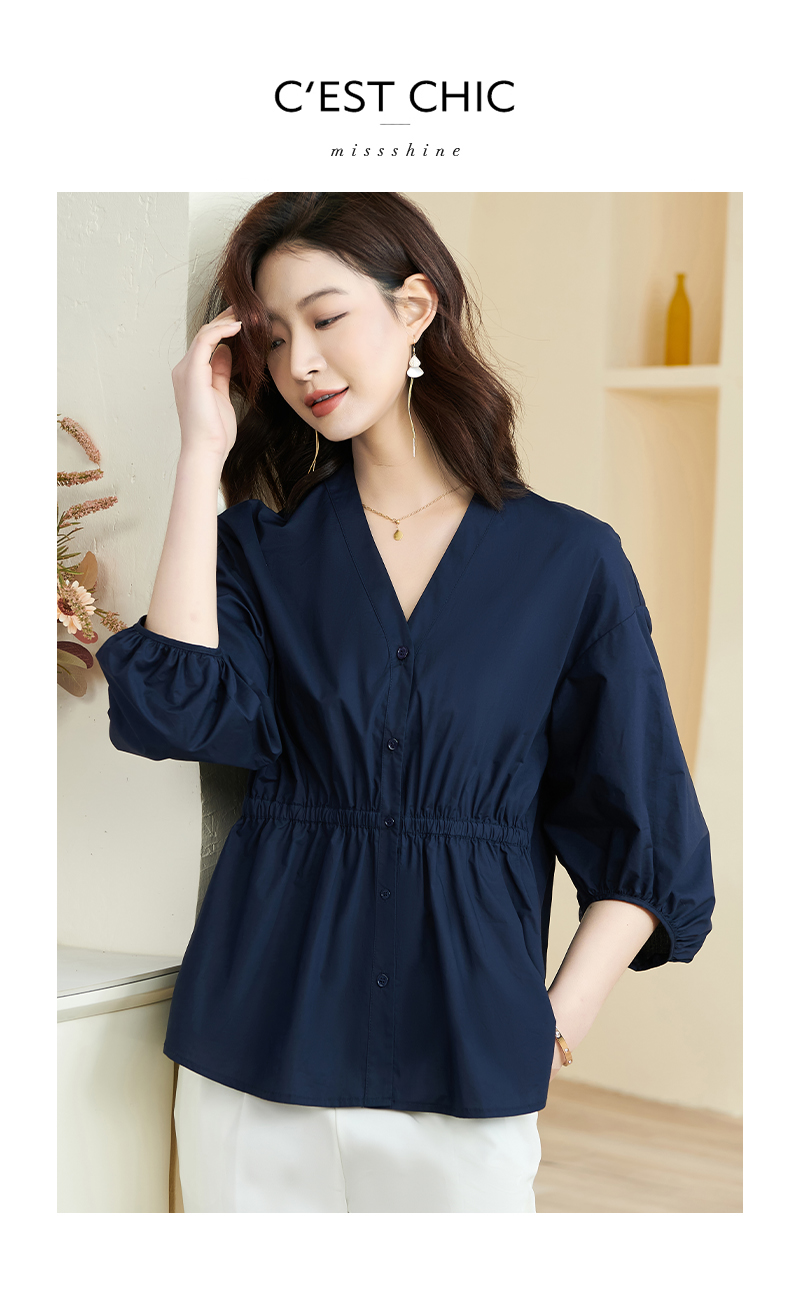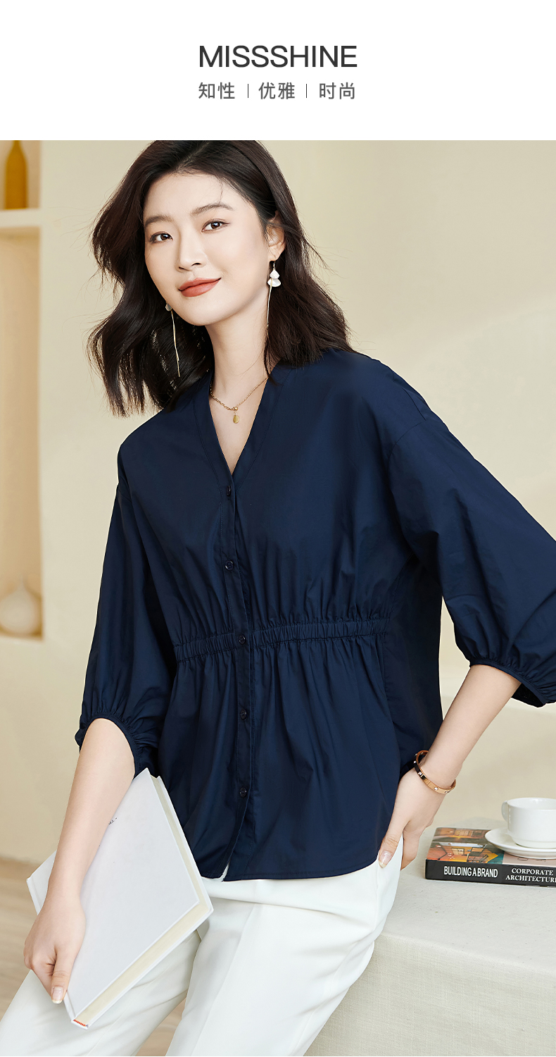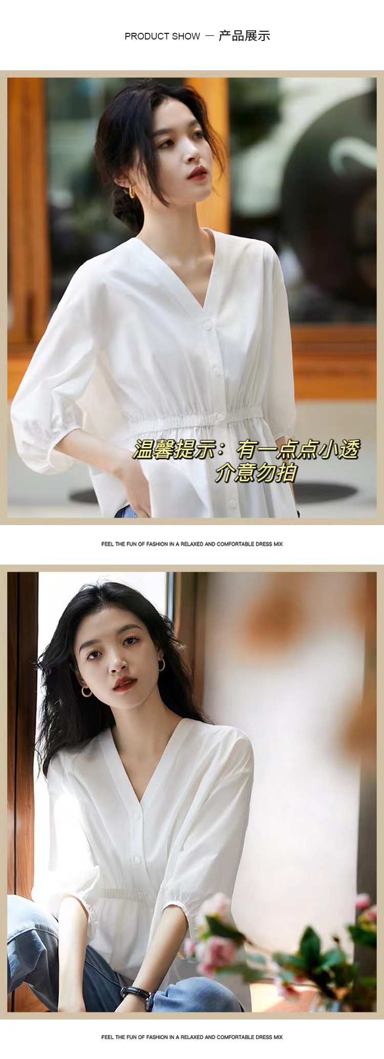 MOMMY KIKO v领灯笼袖衬衫女夏季法式别致娃娃衫洋气收腰显瘦小衫上衣