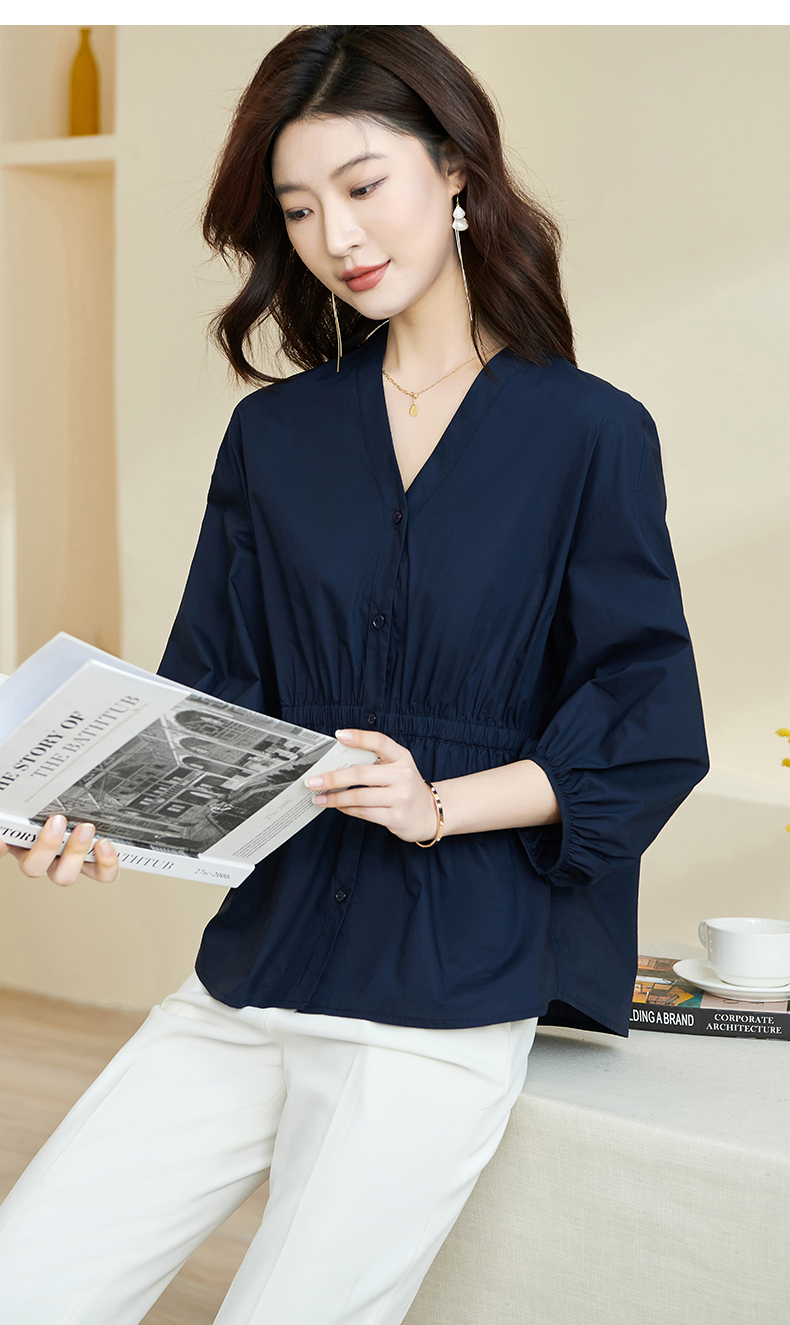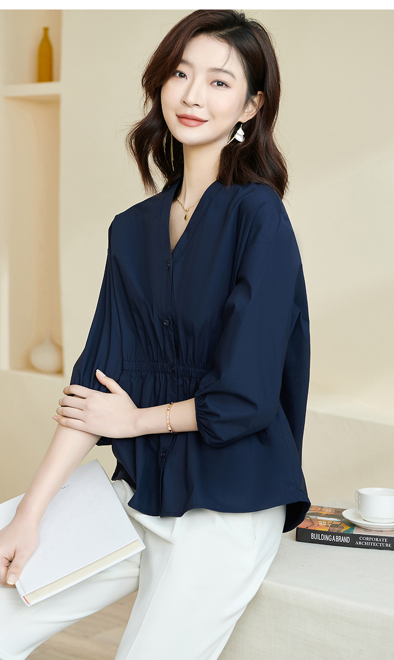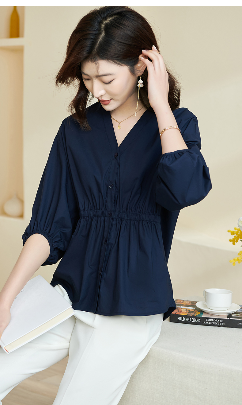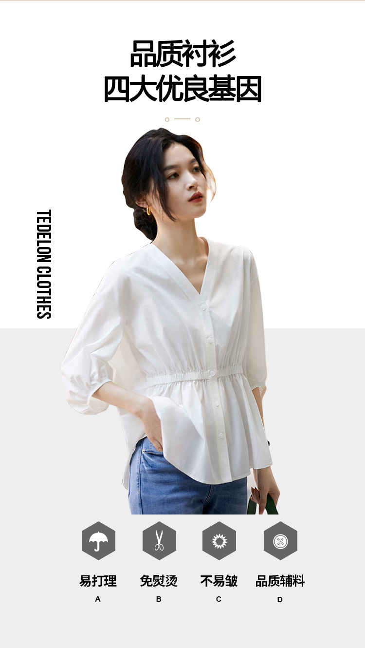 MOMMY KIKO v领灯笼袖衬衫女夏季法式别致娃娃衫洋气收腰显瘦小衫上衣