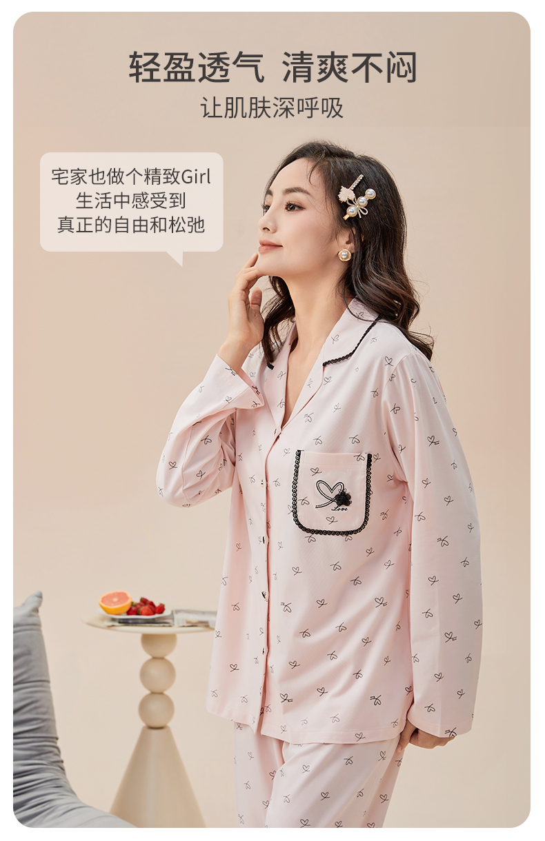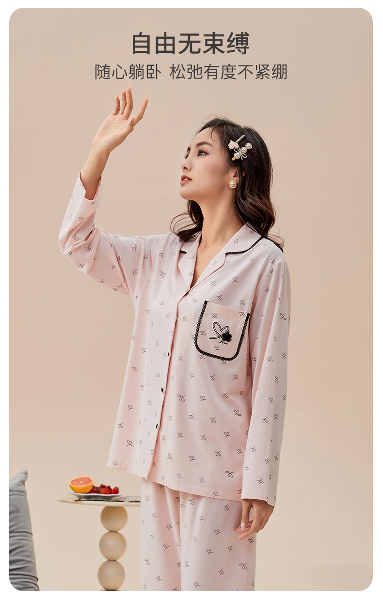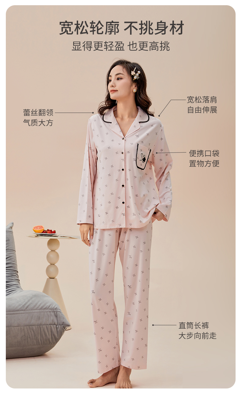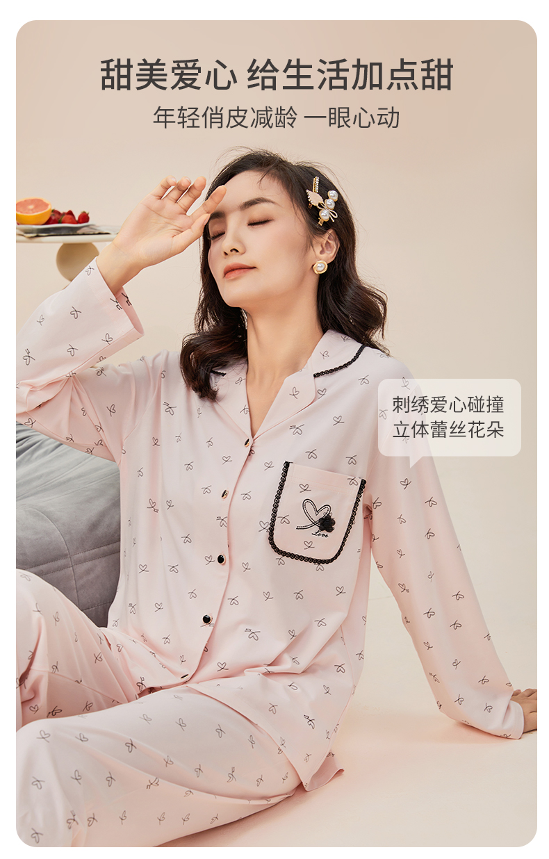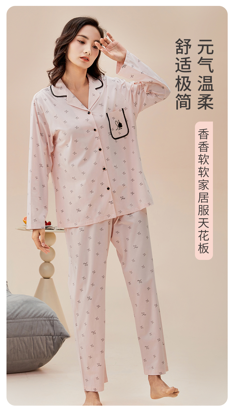 雅黛丽睡衣女款2026新款春秋款棉质亲肤透气印花家居服套装可外穿