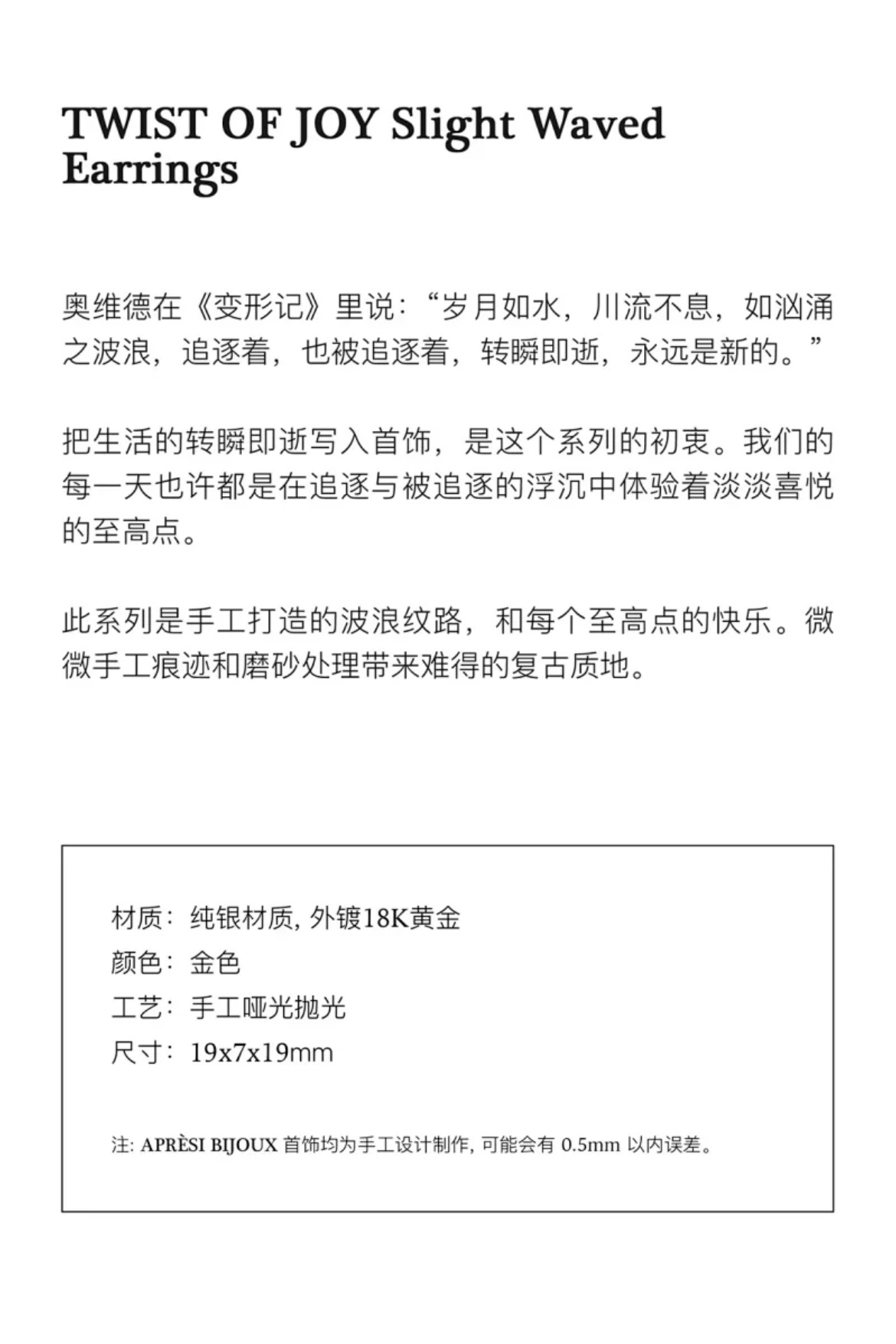 APRESI|TWIST OF JOY Slight Waved Hoops [逐浪窄版耳环]