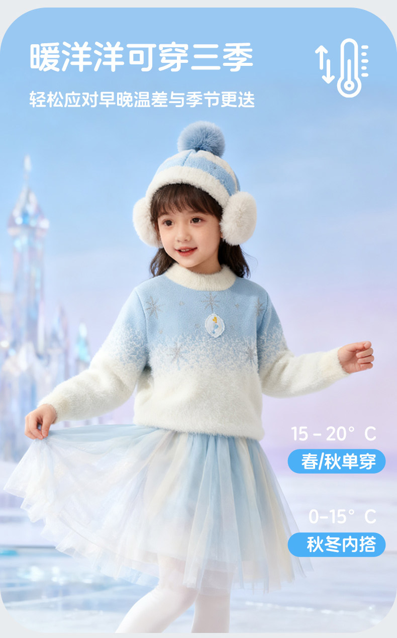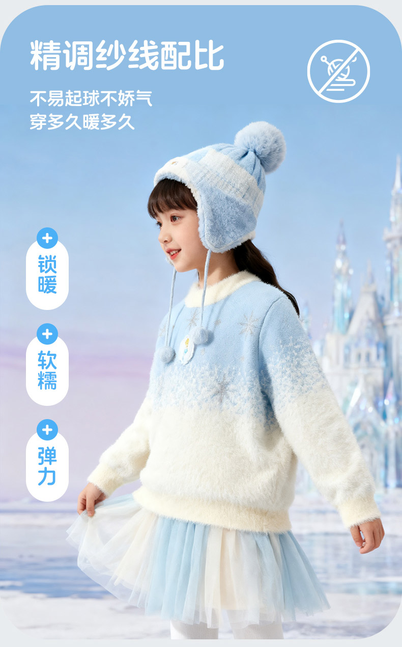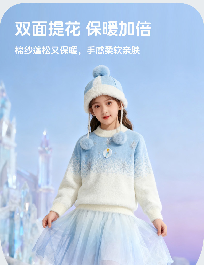 【迪士尼】灰姑娘仿貂绒毛衣秋冬新款女亲肤保暖毛衣中大童圆领渐变线衫