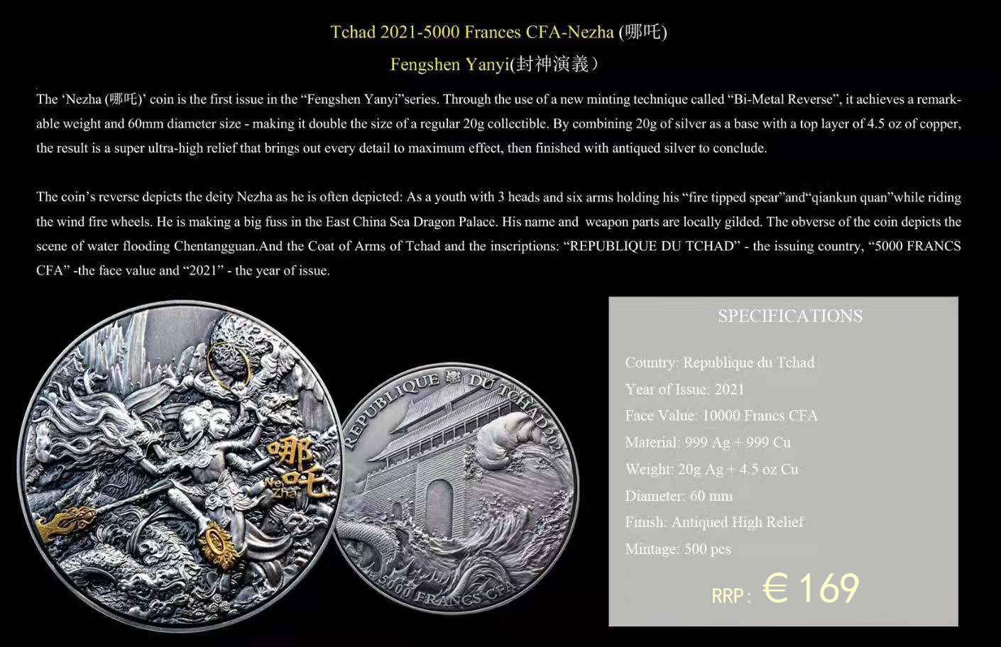 哪吒银币在国外的预定价格为169欧元,折合人民币1298元,有图有真相: