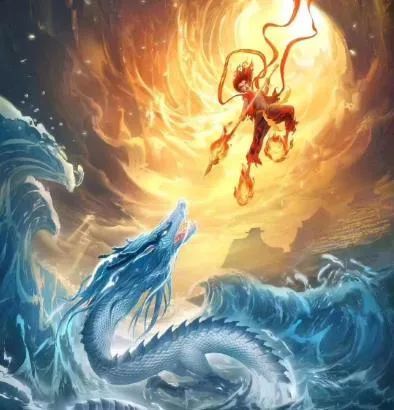这简直就是我们小时候脑海中的经典形象:三头六臂的哪吒,脚踩风火轮,手持火尖枪和乾坤圈,形象生动,霸气侧漏!