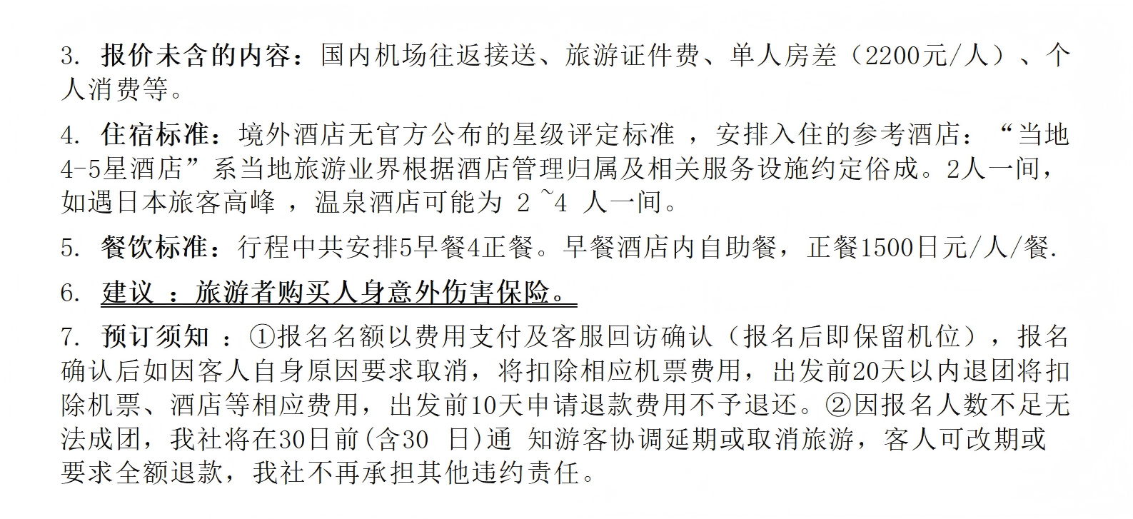 5、出发前 1-4 日内取消,损失费用为旅游费用总额的 70%;