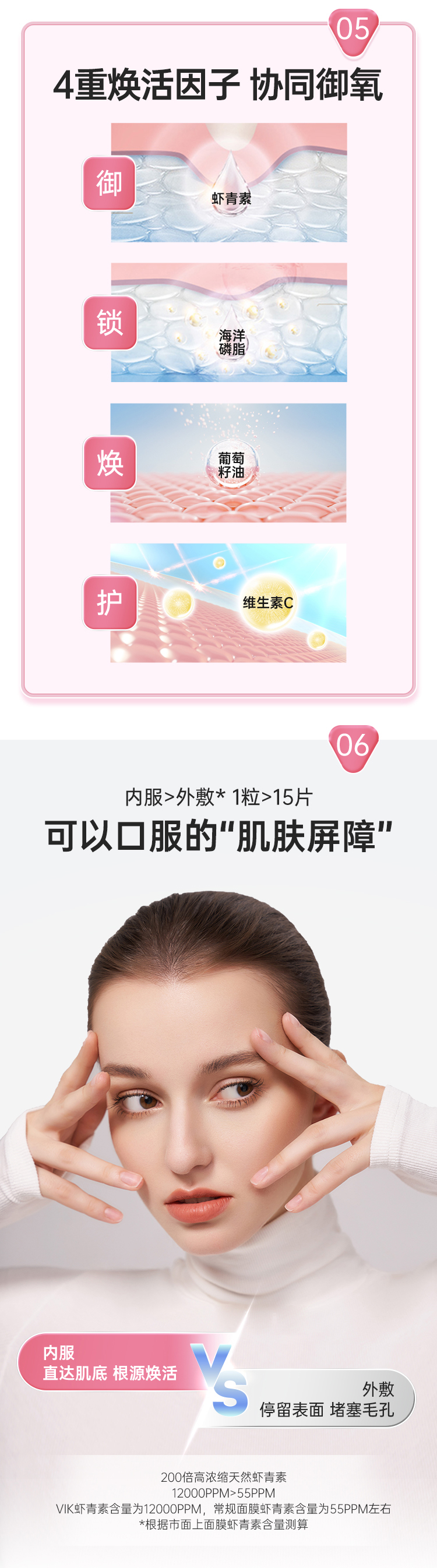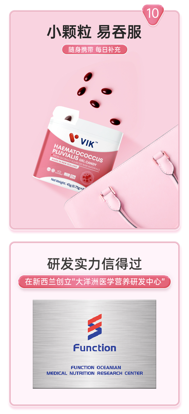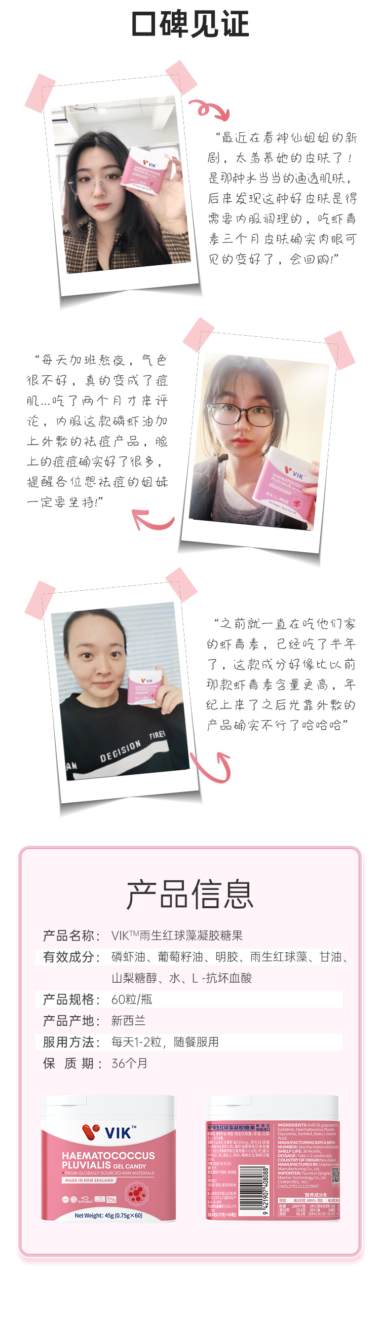 vik雨生红球藻凝胶糖果 富含磷脂虾青素 0.75g*60粒/瓶