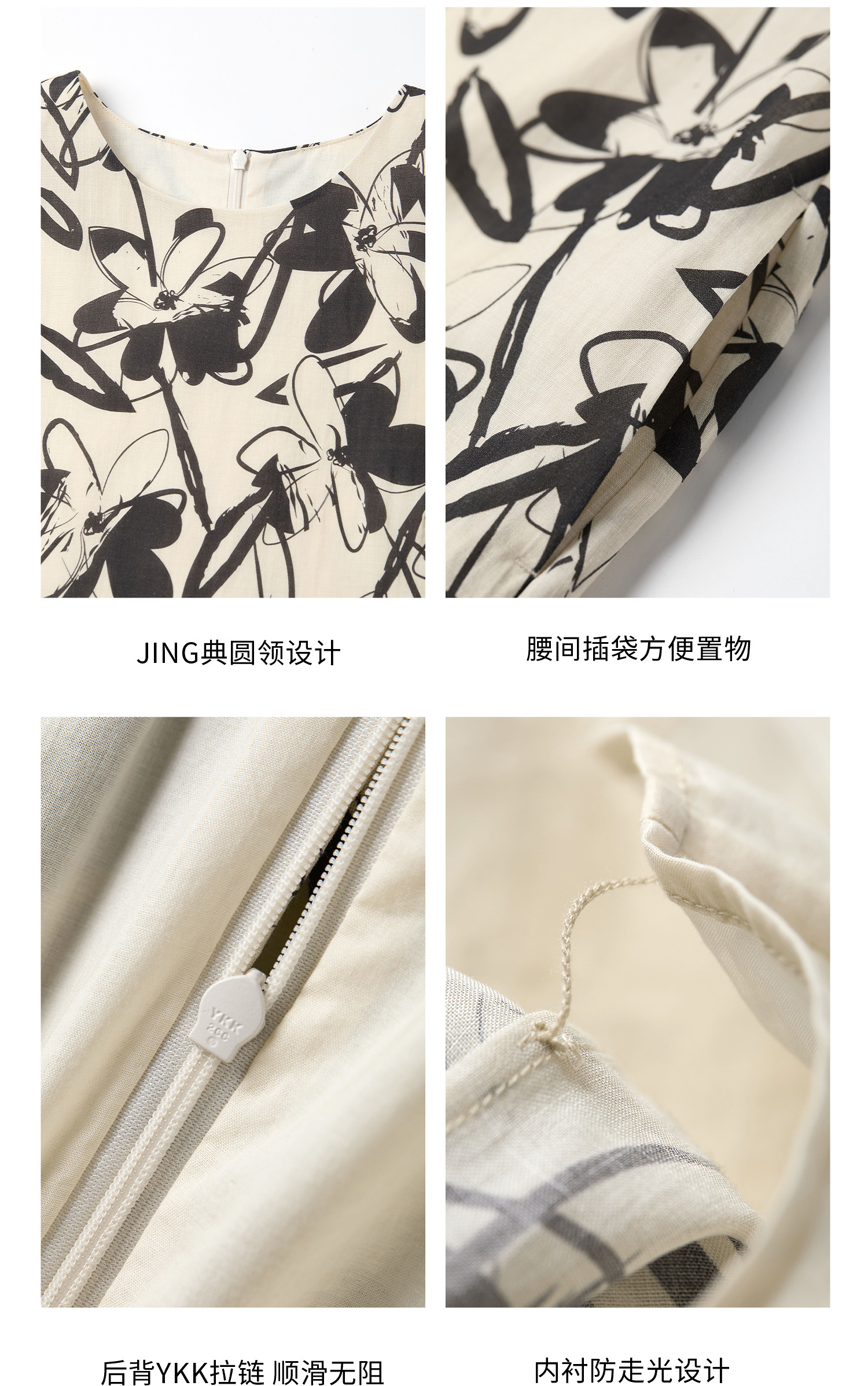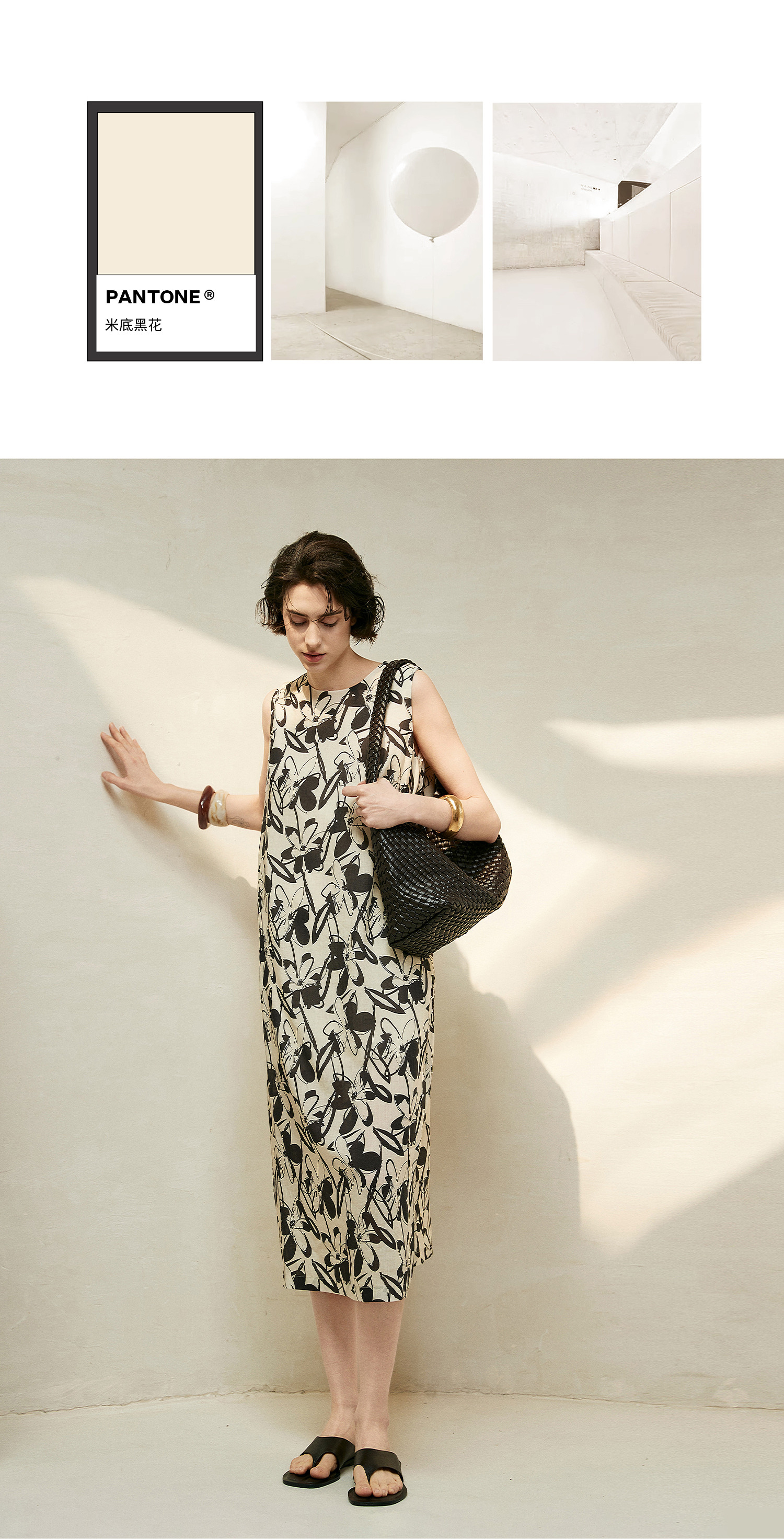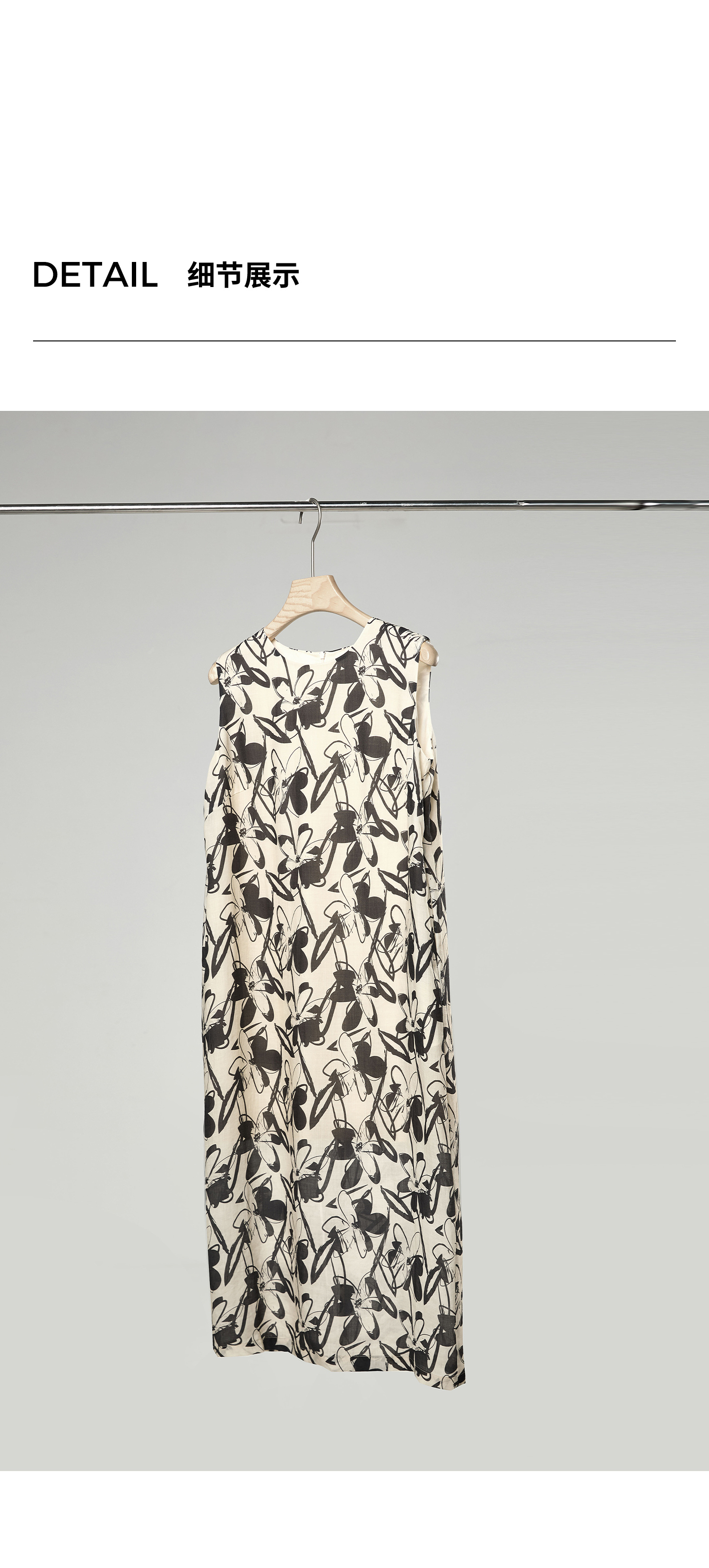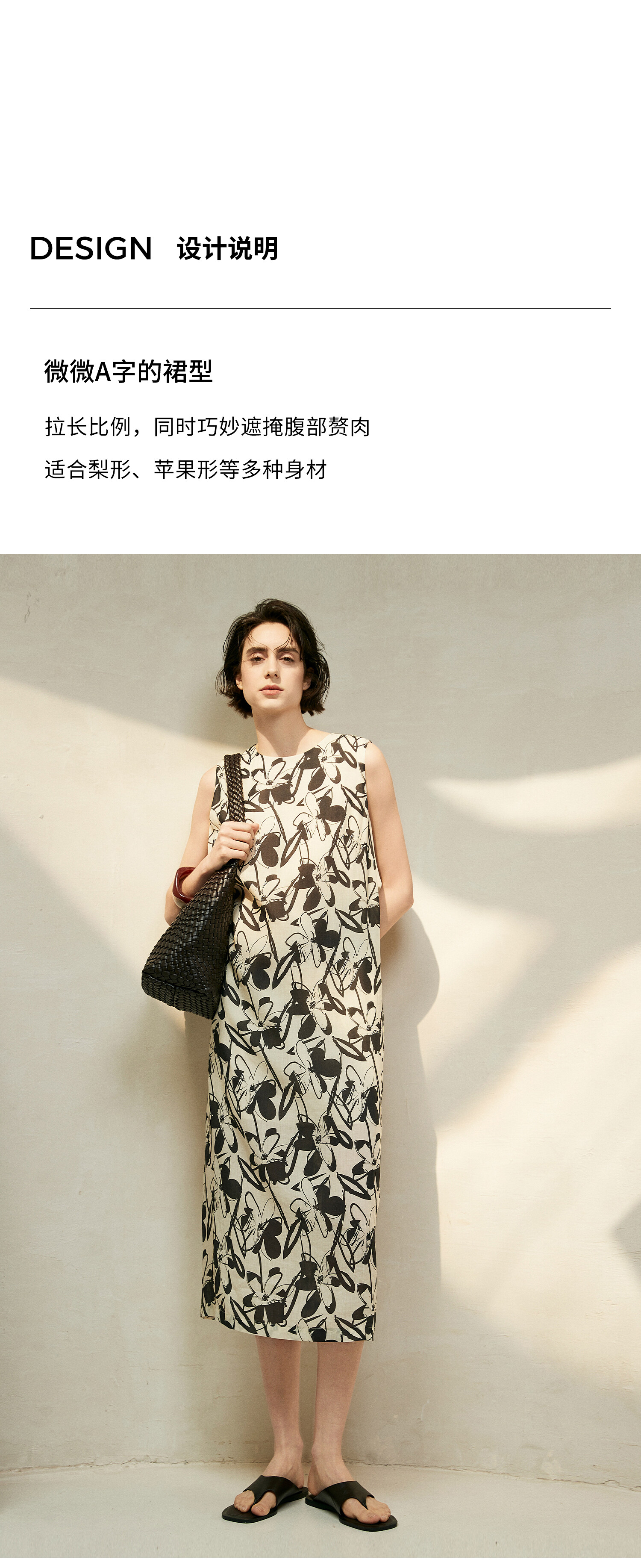 棉仓363616001-初棉复古慵懒风无袖扭结印花背心裙25春夏