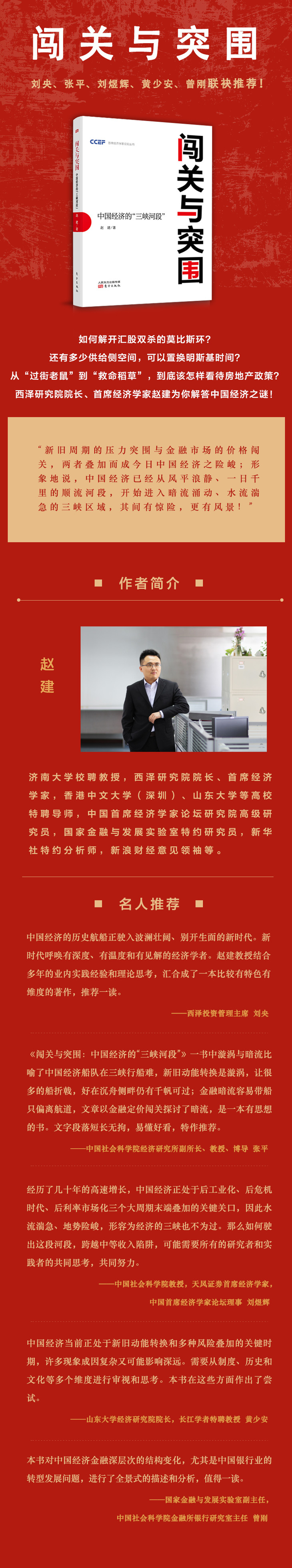 中国经济的历史航船正驶入波澜壮阔、别开生面的新时代。新时代呼唤有深度、有温度和有见解的经济学者。赵建教授结合多年的业内实践经验和理论思考,汇合成了一本比较有特色有维度的著作,推荐一读。