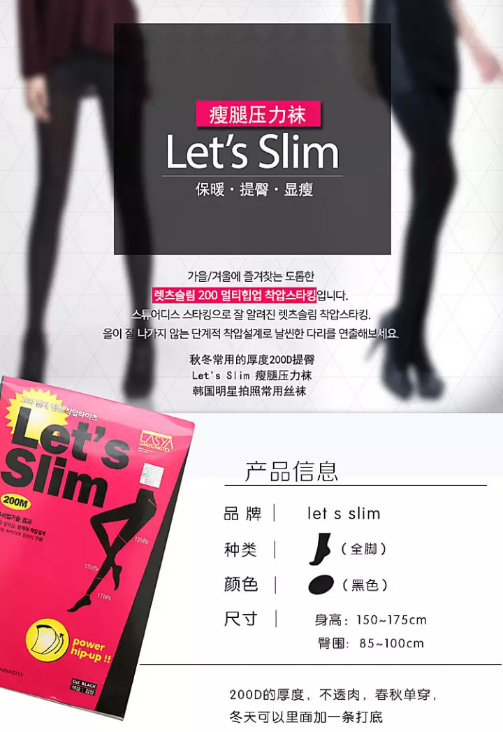 韩国 LET'Slim 瘦腿袜 200D 适合15-20度穿