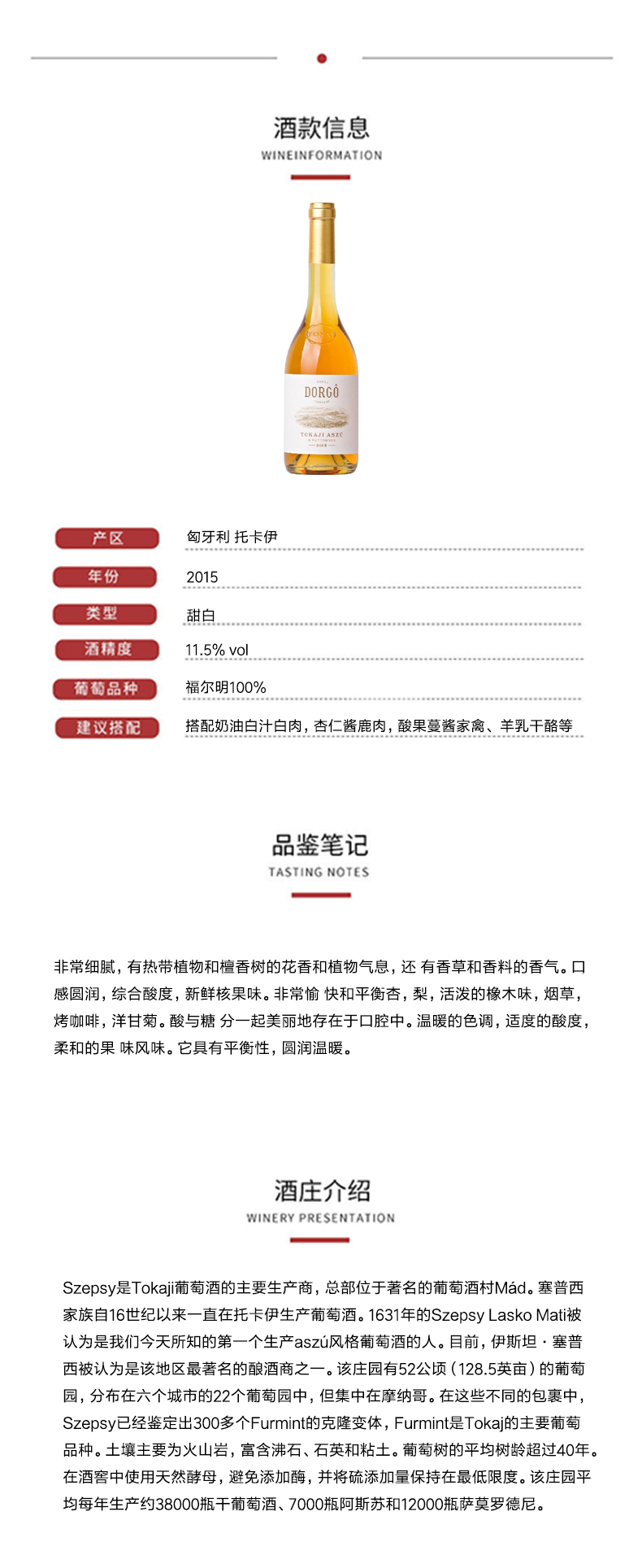 德罗戈托卡伊阿苏6筐甜型白葡萄酒2015年 DORGO TOKAJI ASZU 6 PUTTONYOS 2015