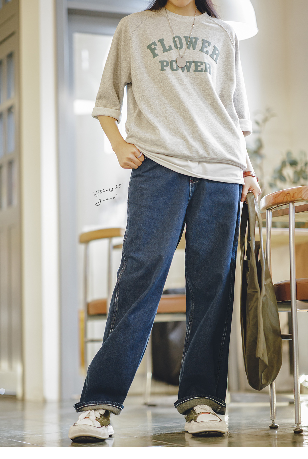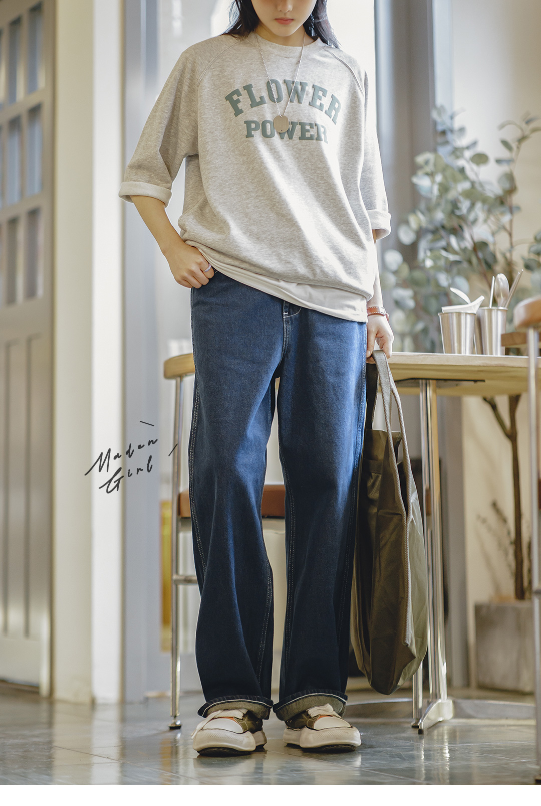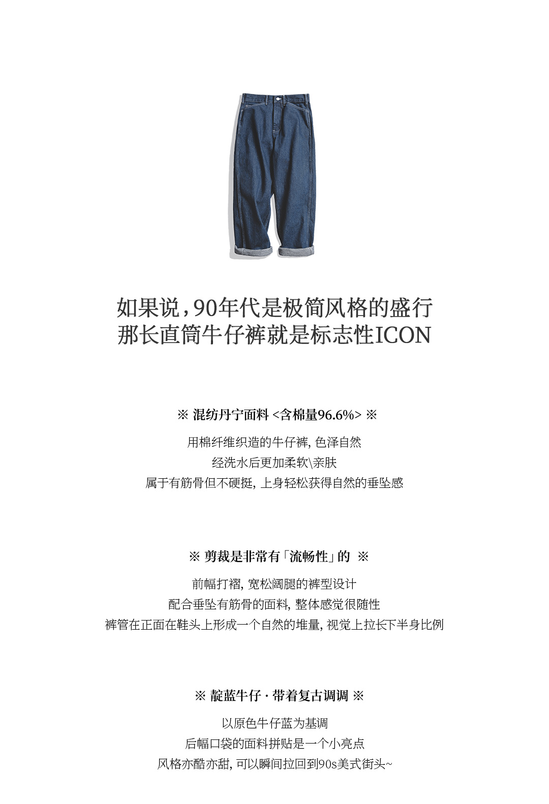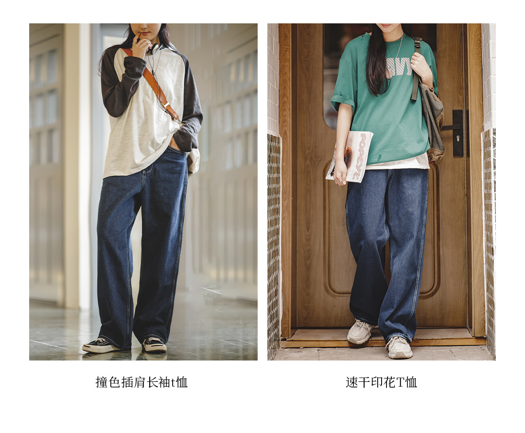 马登女装美式复古直筒休闲裤男友风气质日系大码宽松阔腿牛仔裤