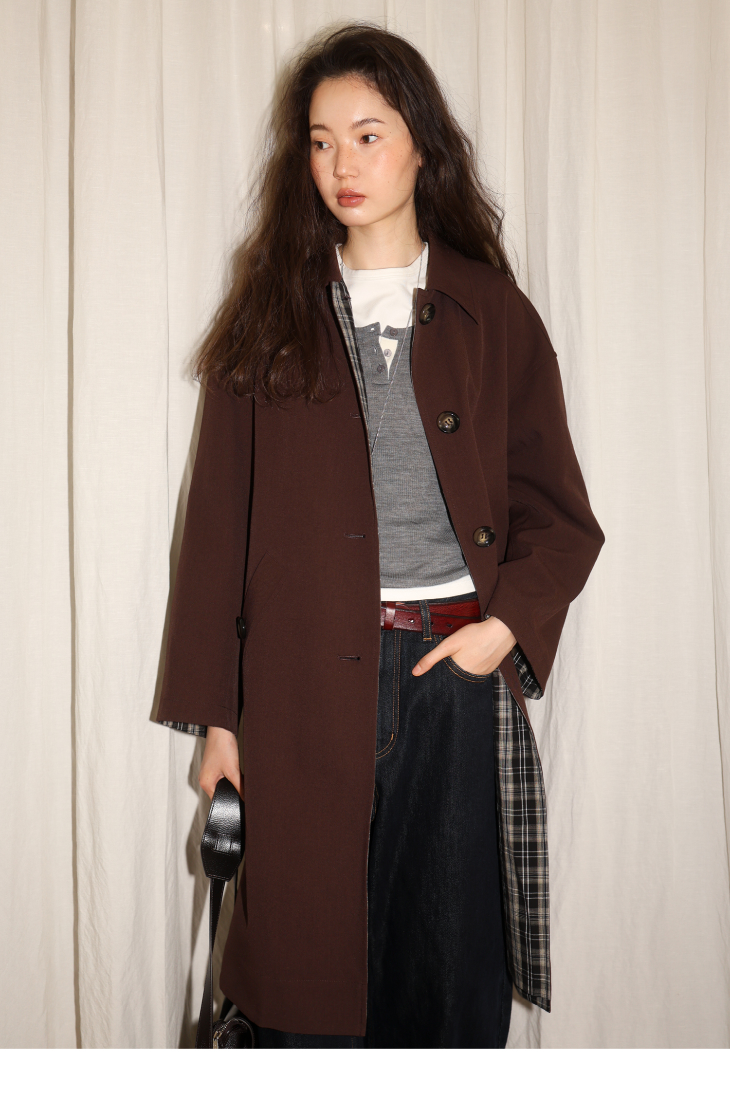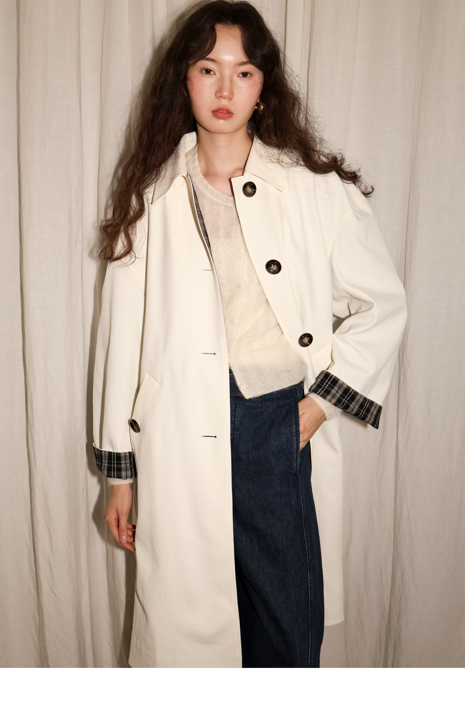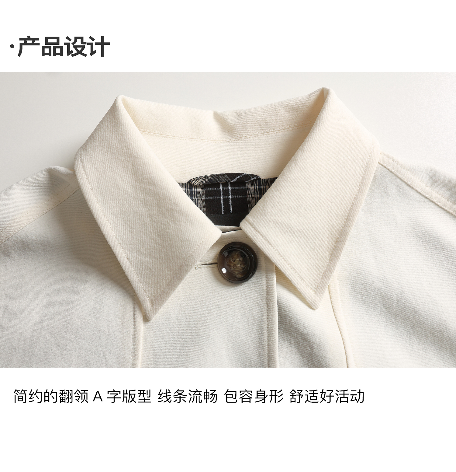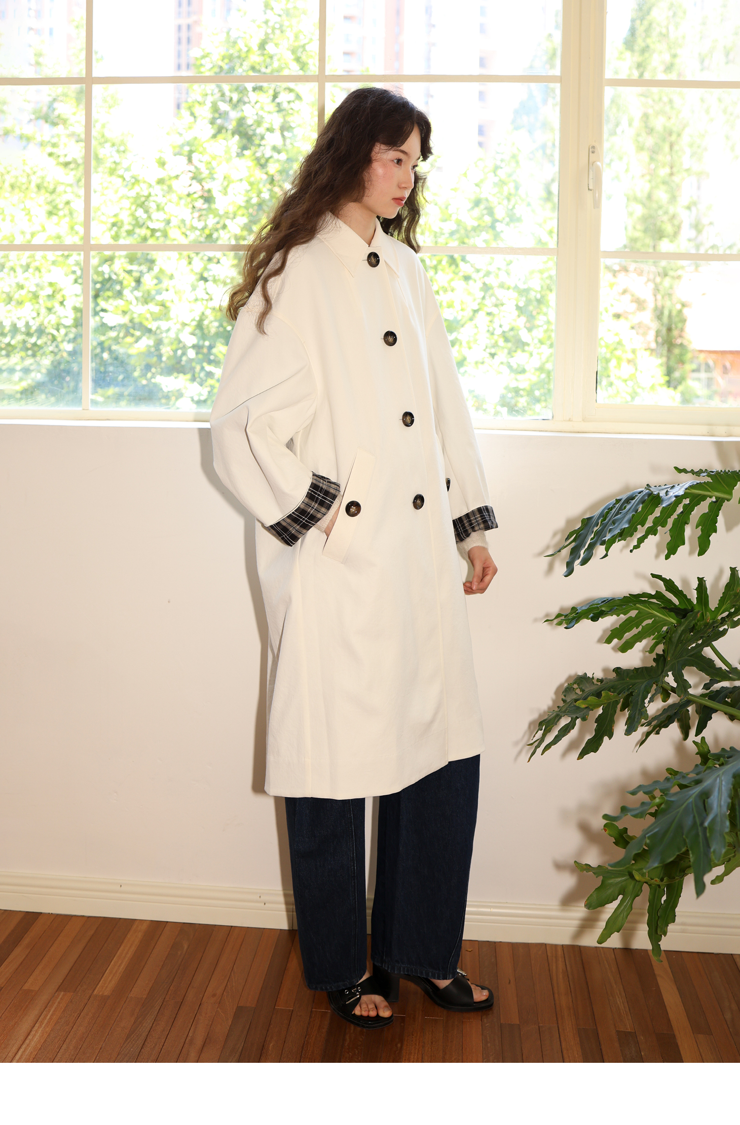 【8/6新品】素舶中空纱廓形中长款风衣 格纹翻领外套