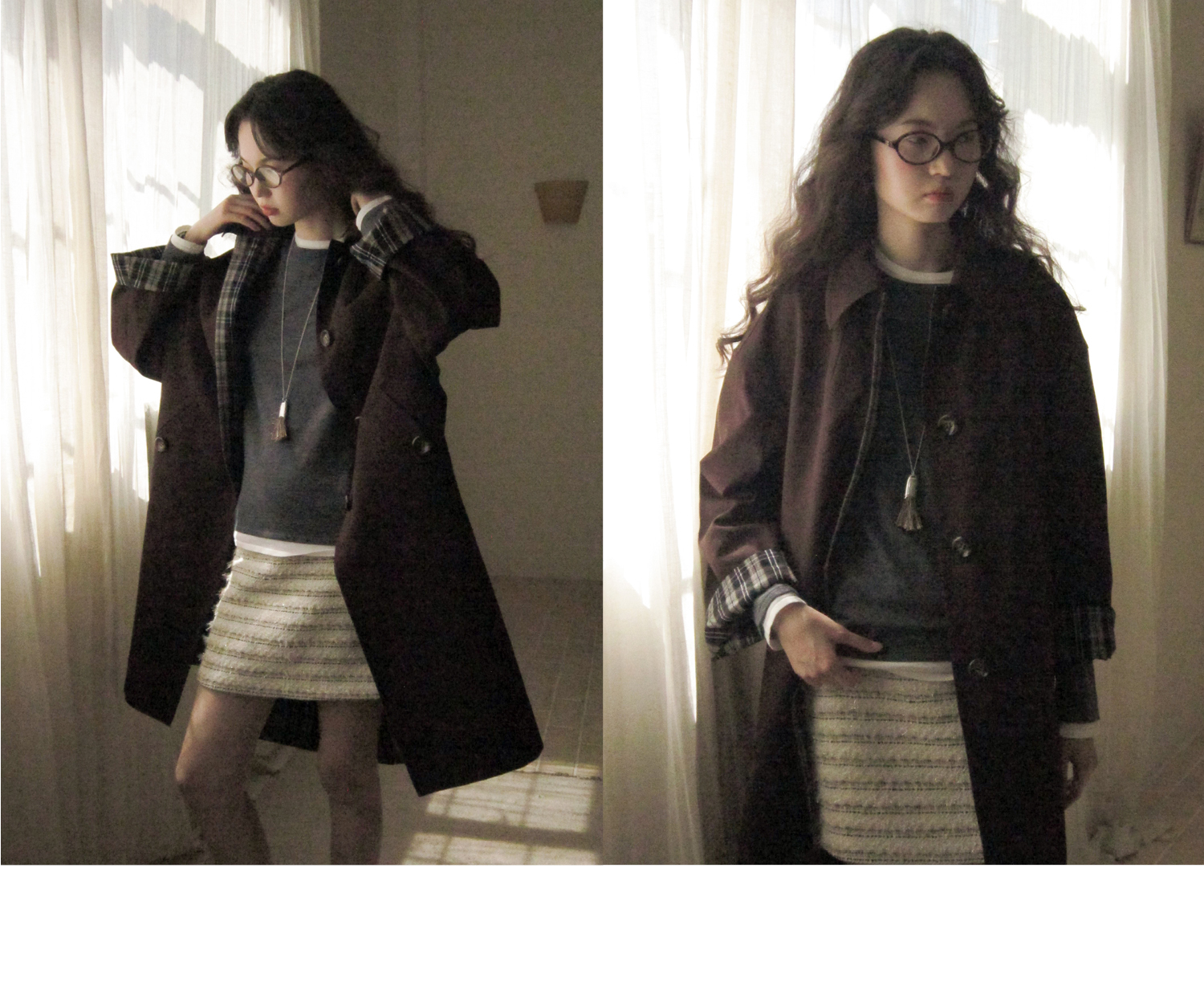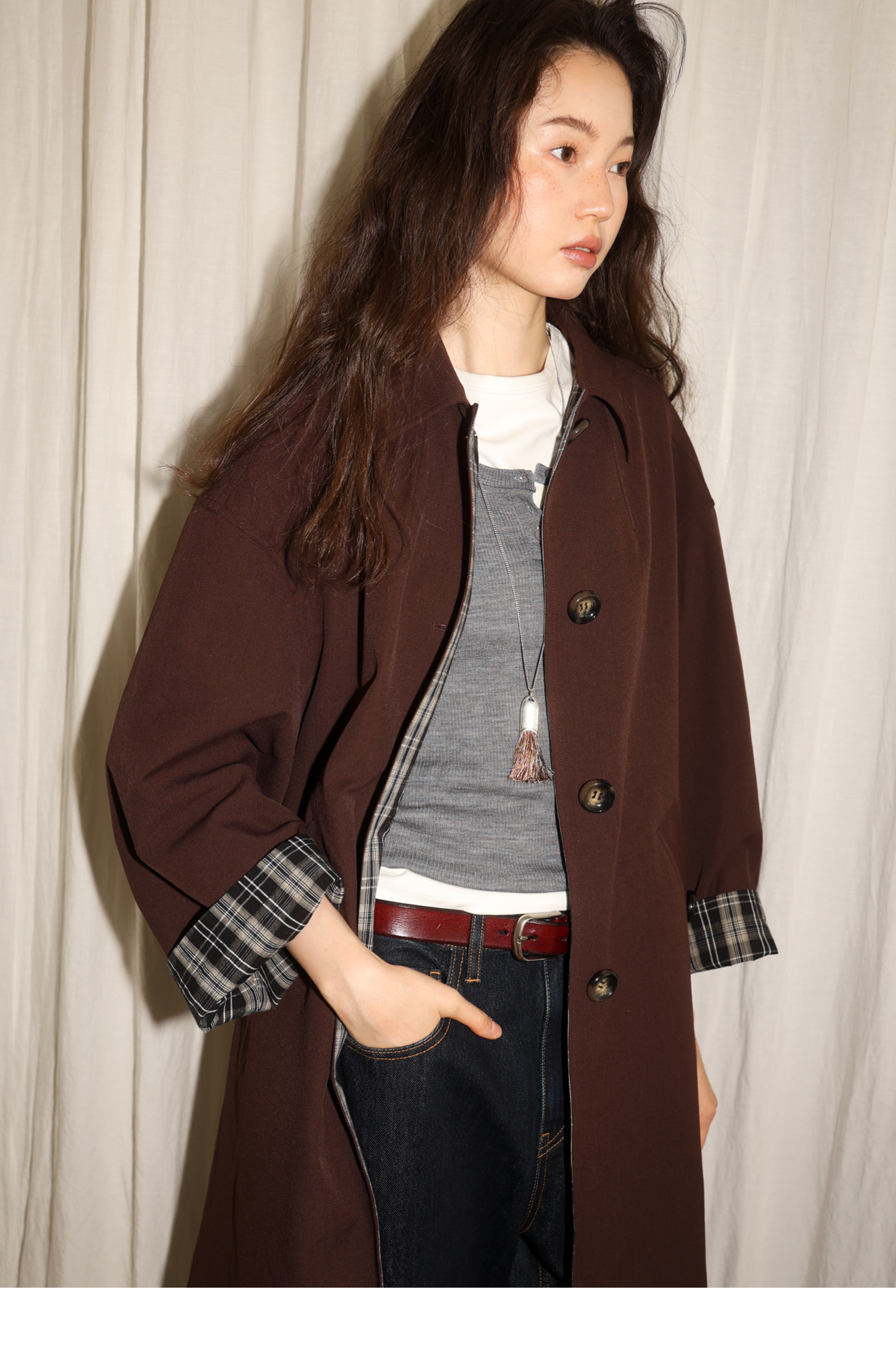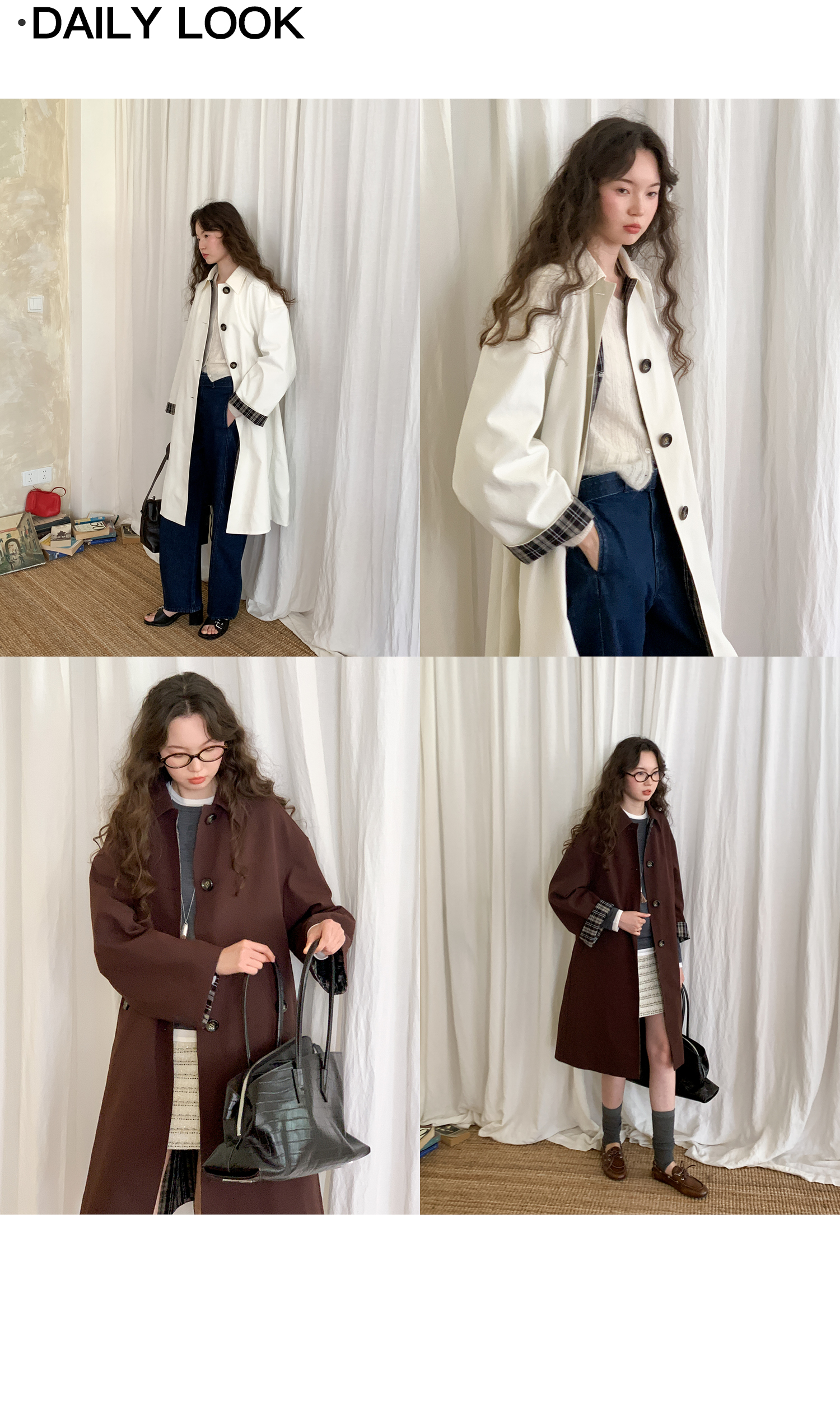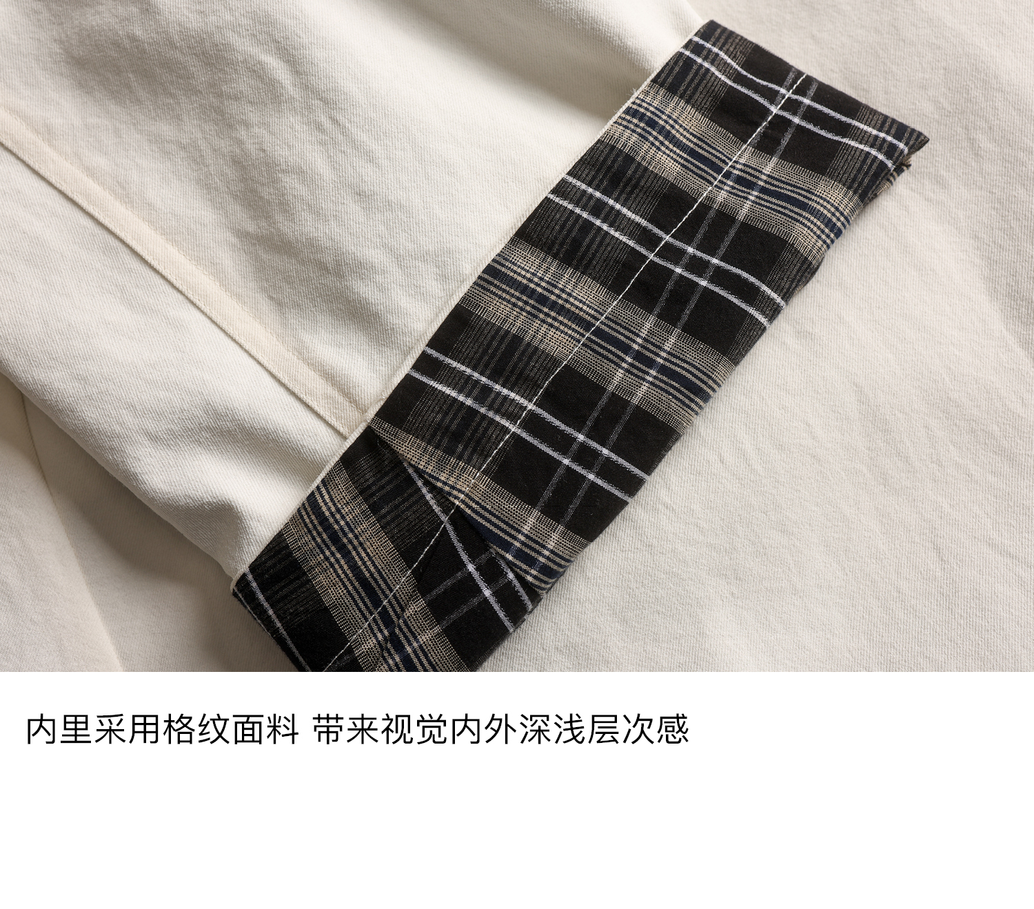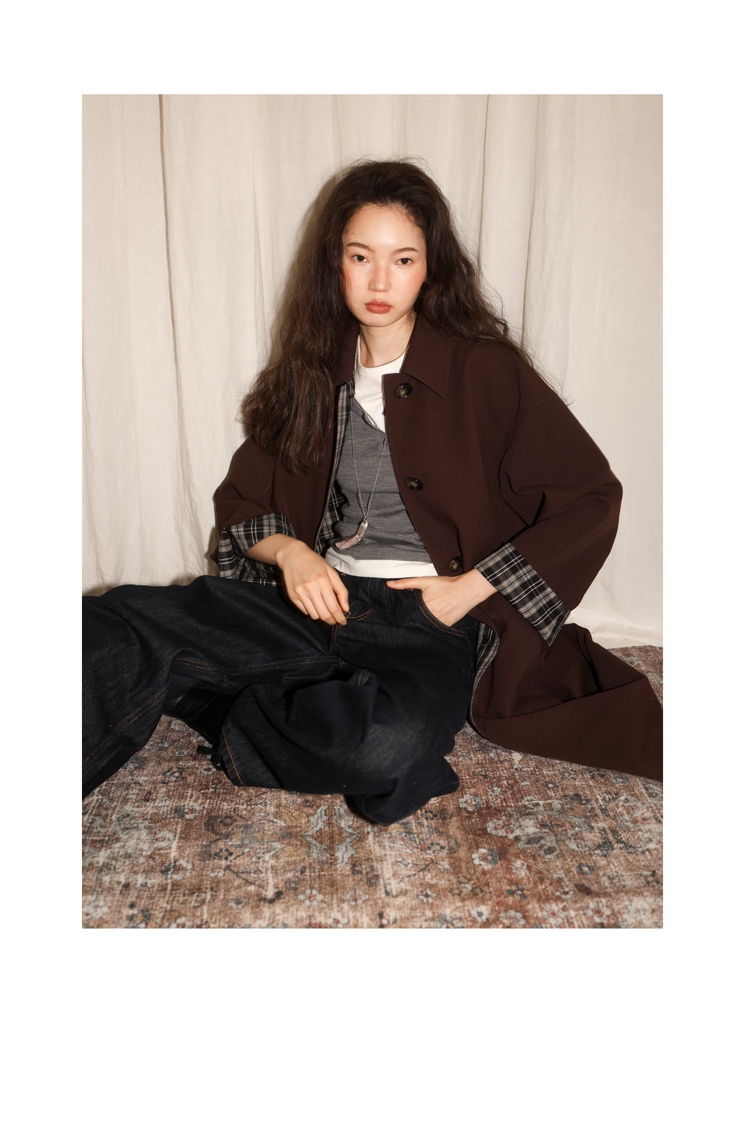 【8/6新品】素舶中空纱廓形中长款风衣 格纹翻领外套