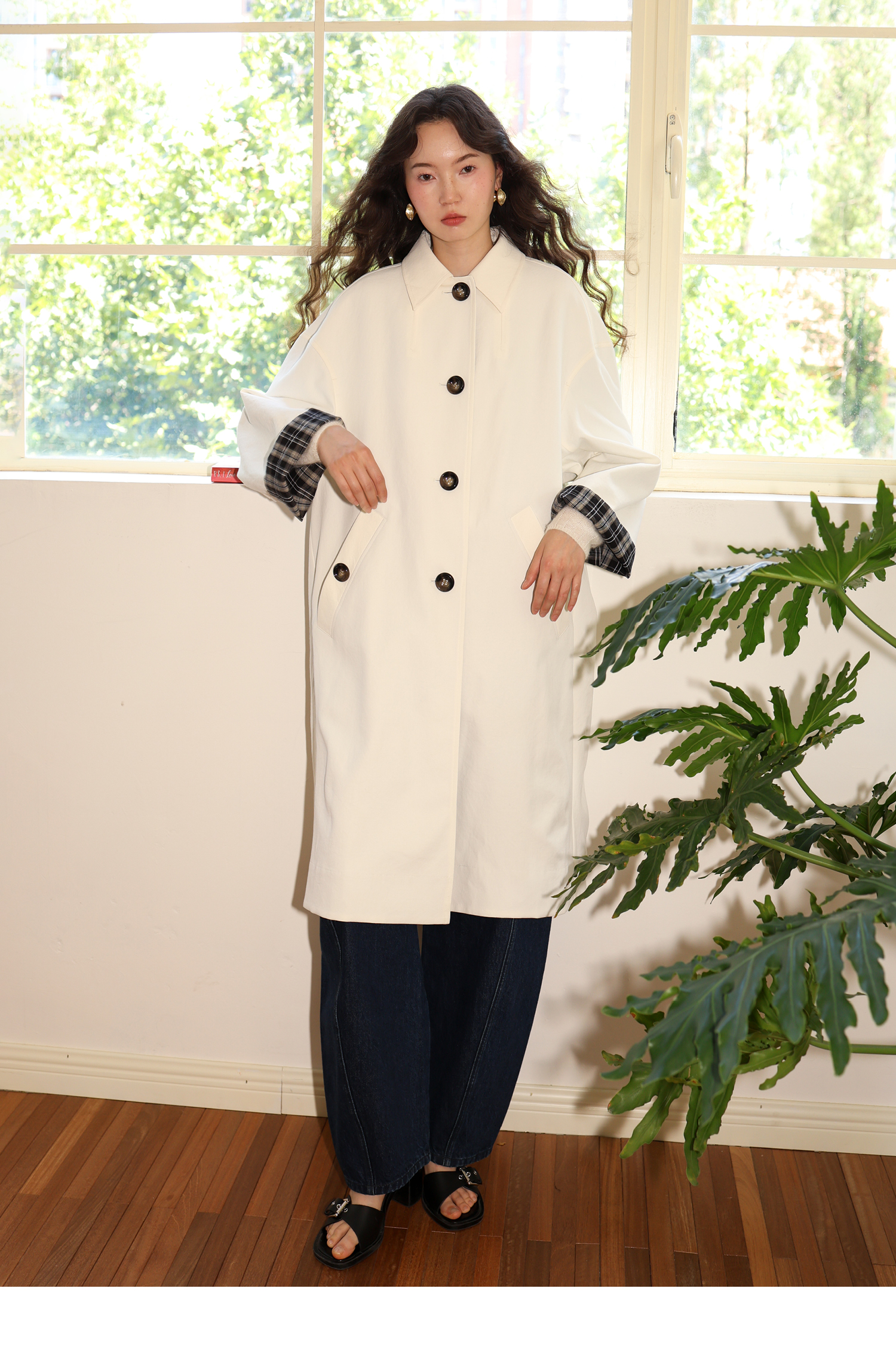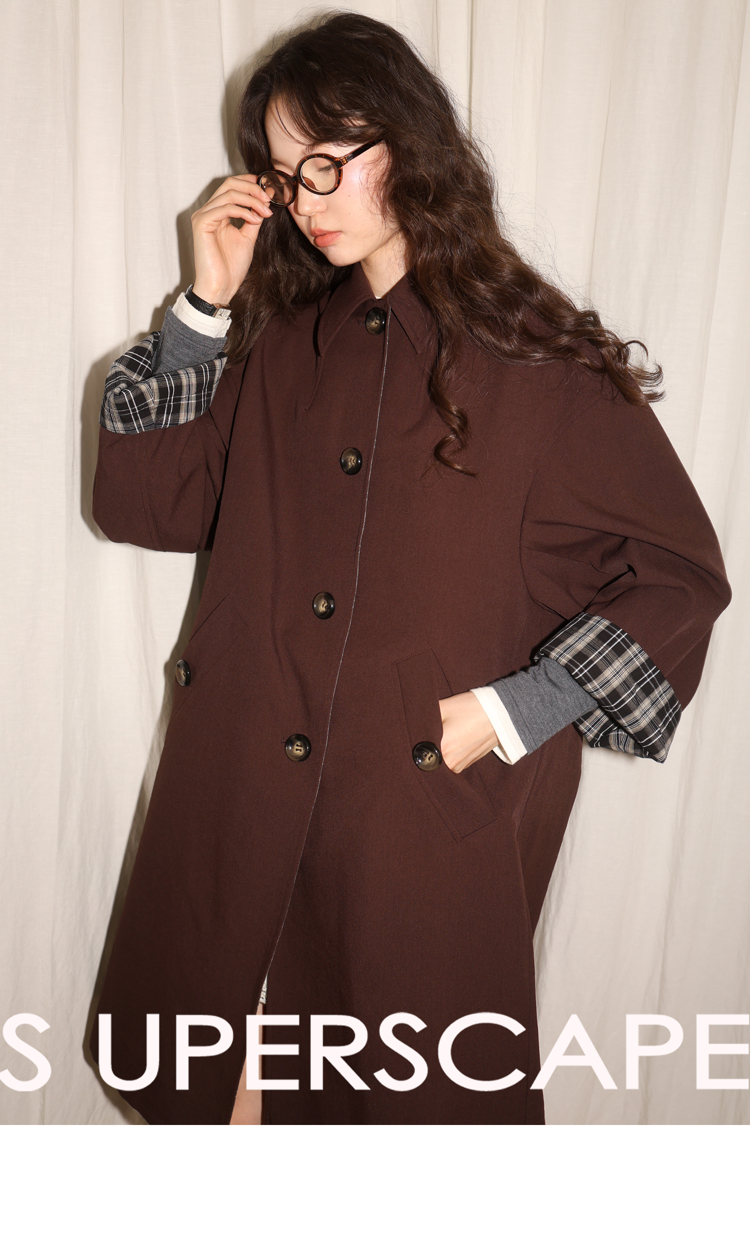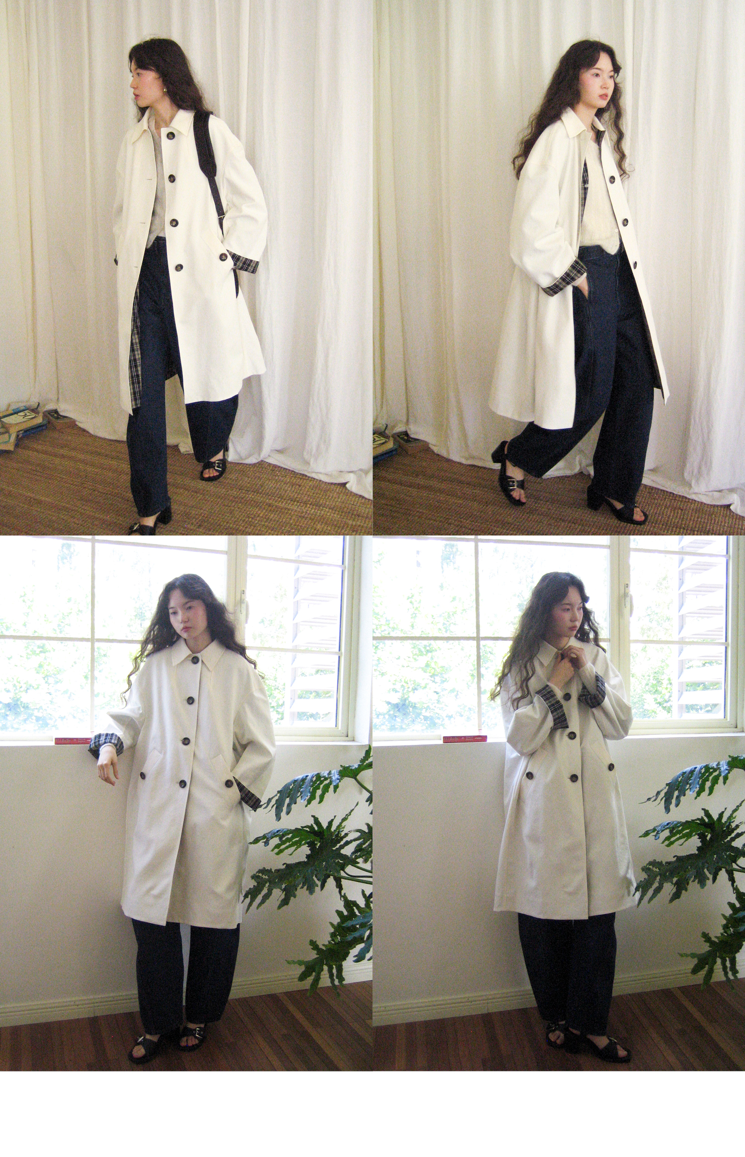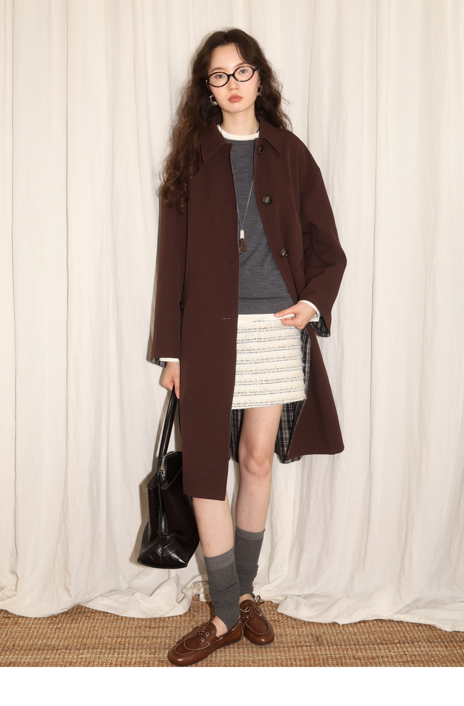 【8/6新品】素舶中空纱廓形中长款风衣 格纹翻领外套