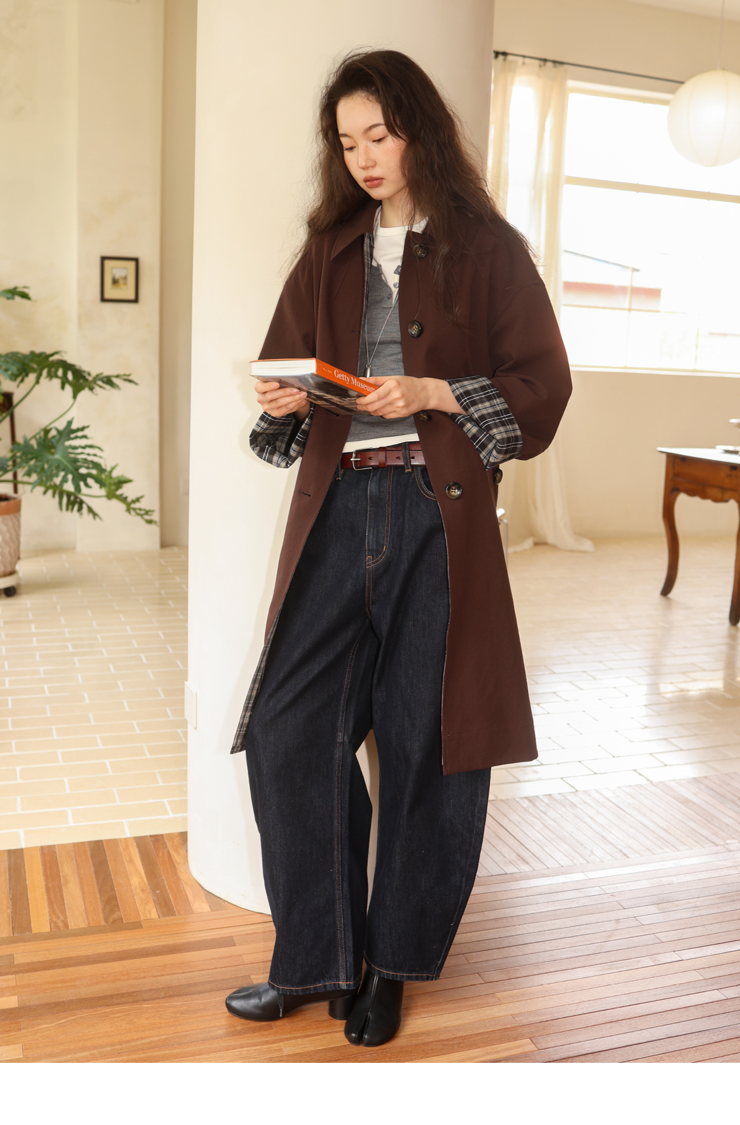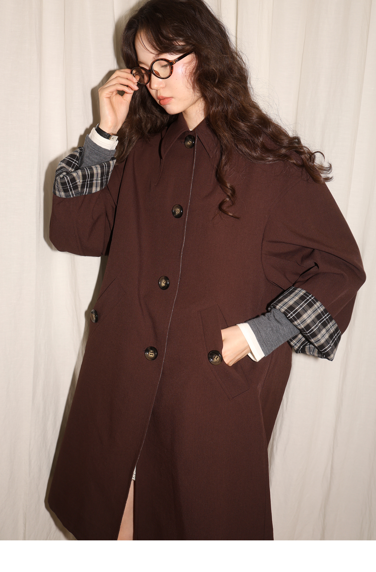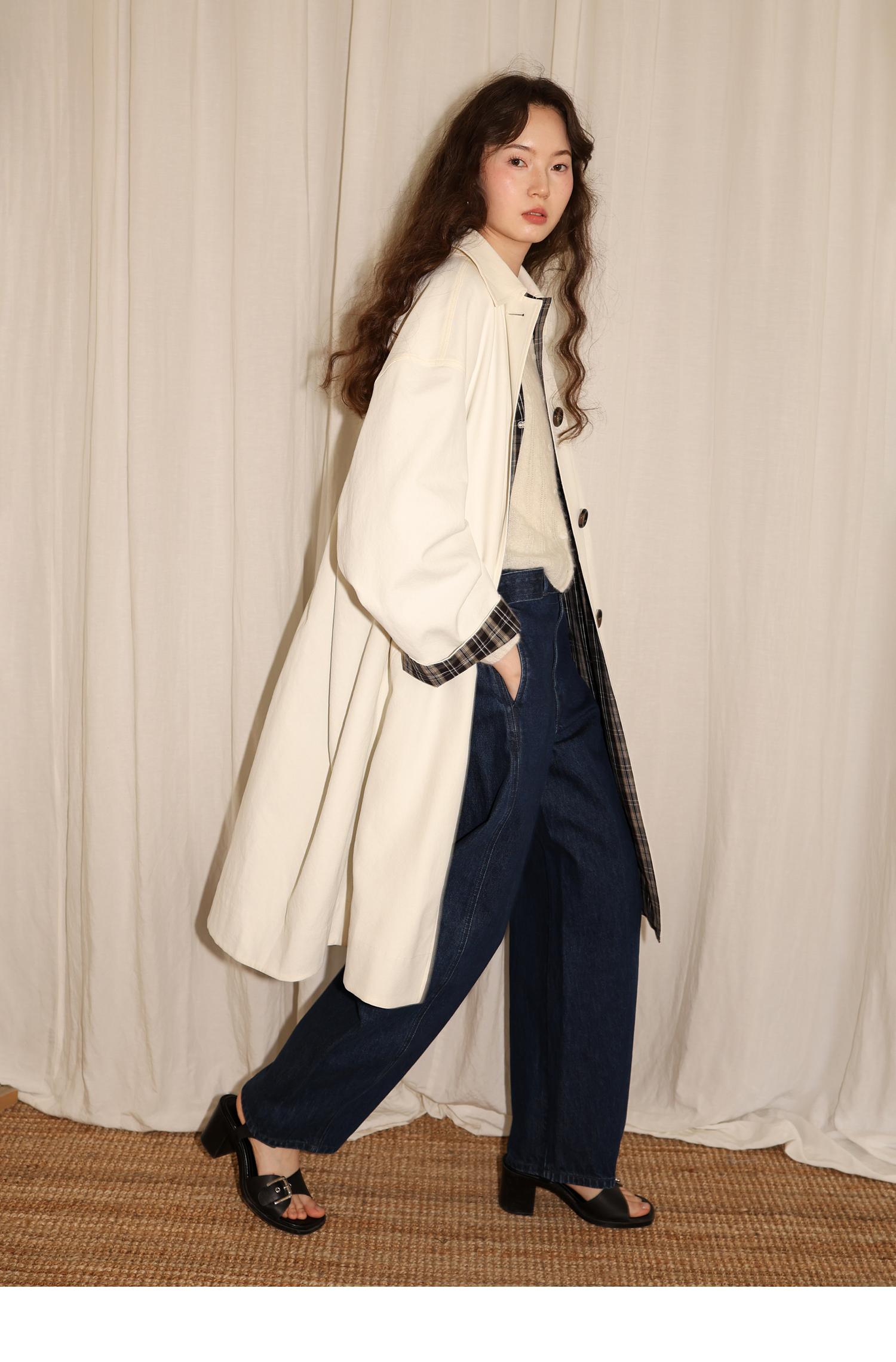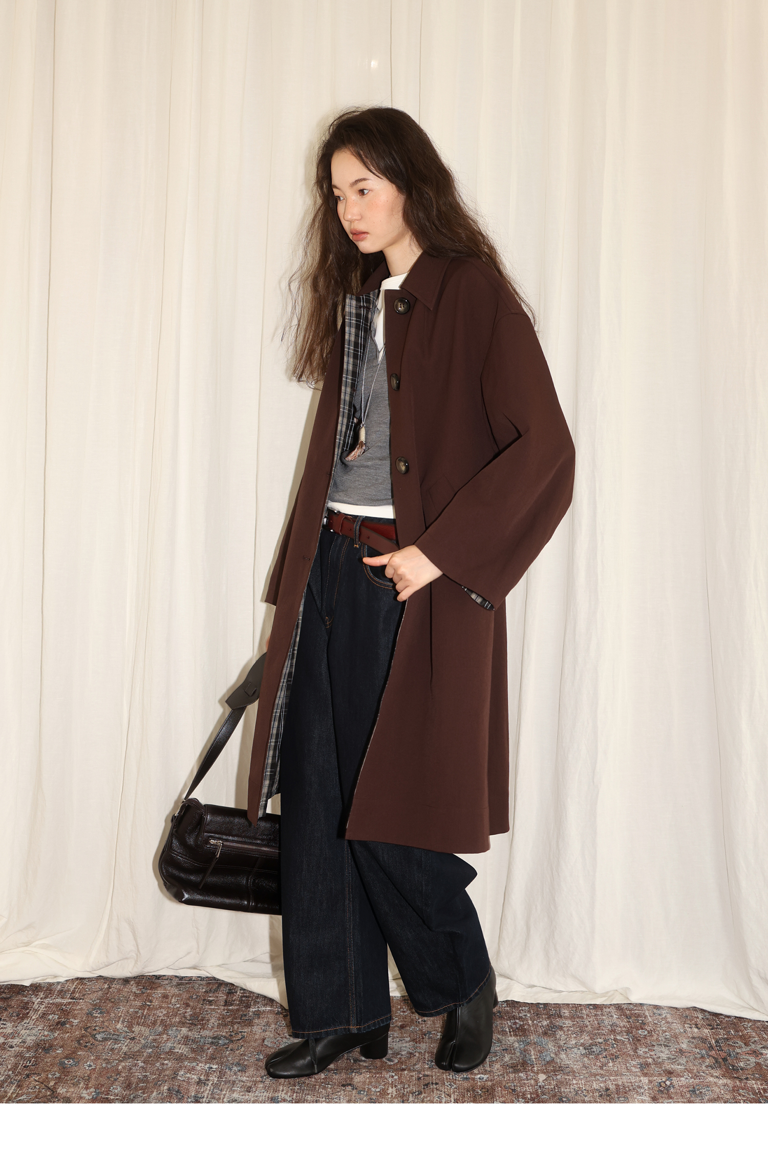 【8/6新品】素舶中空纱廓形中长款风衣 格纹翻领外套