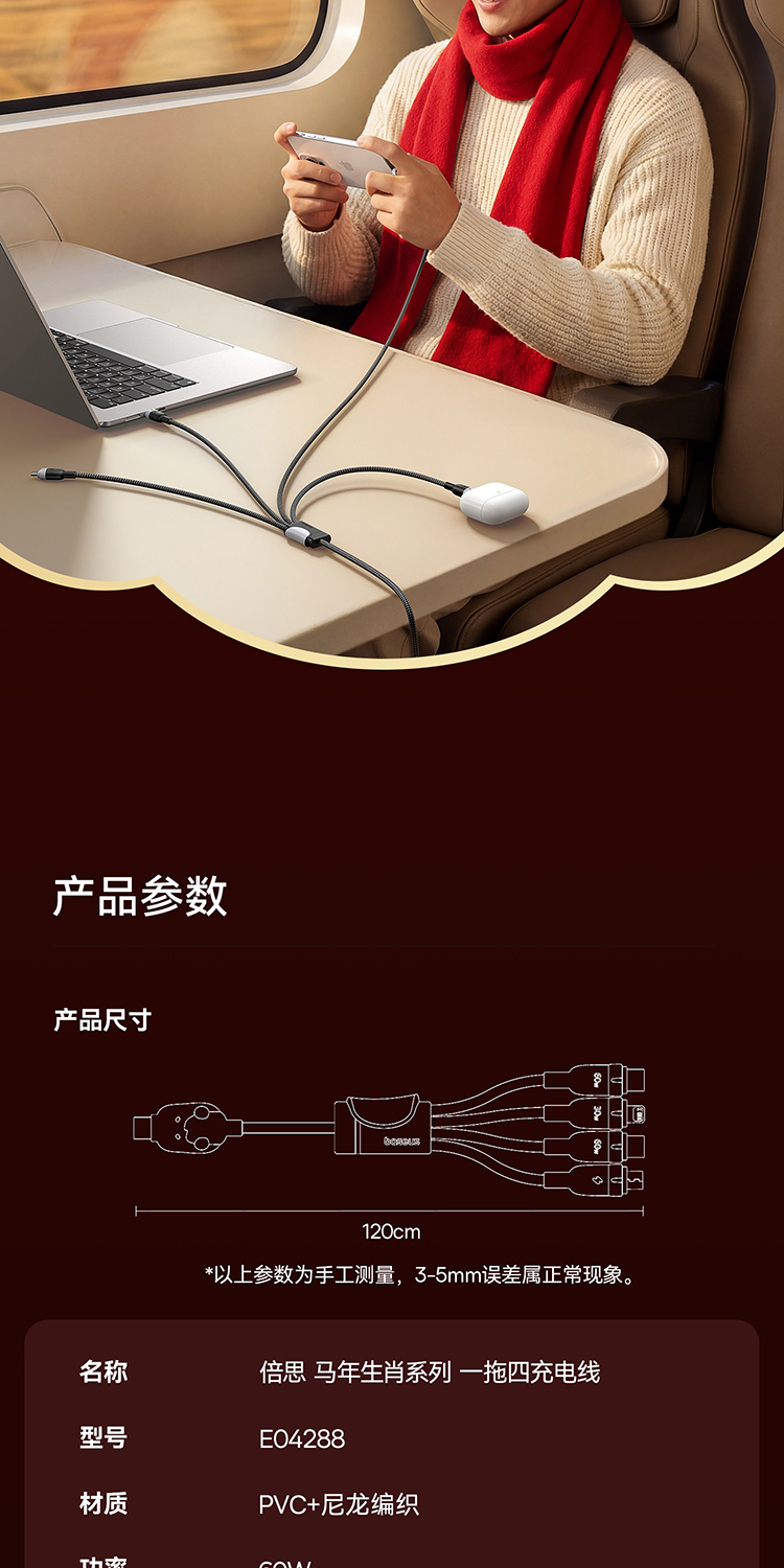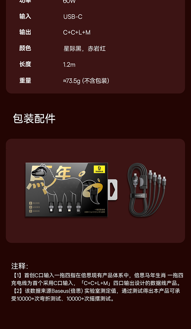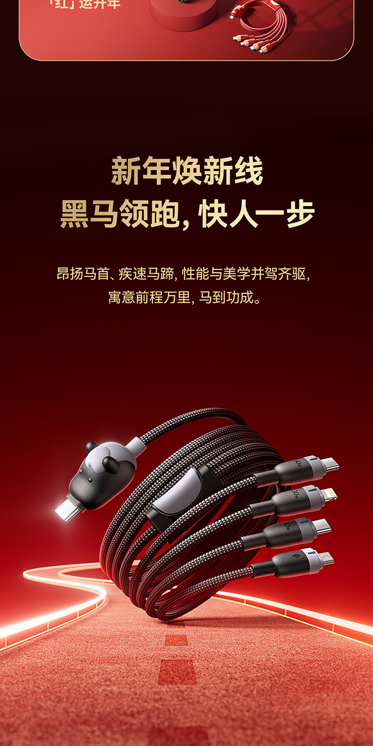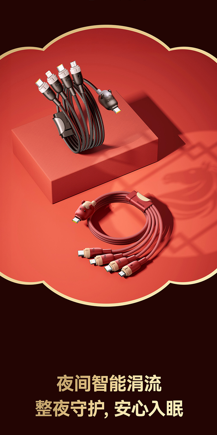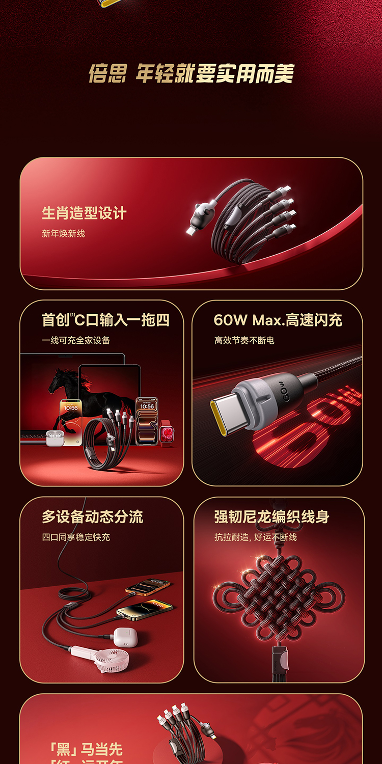 【员工内购】倍思 马年生肖系列 一拖四充电线 USB-C to C+C+L+M 60W 1.2m