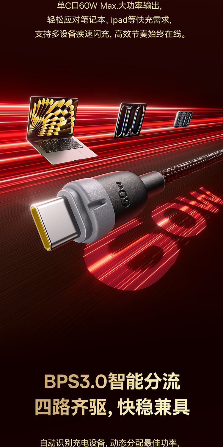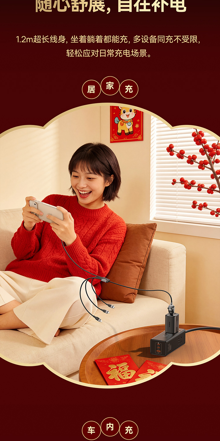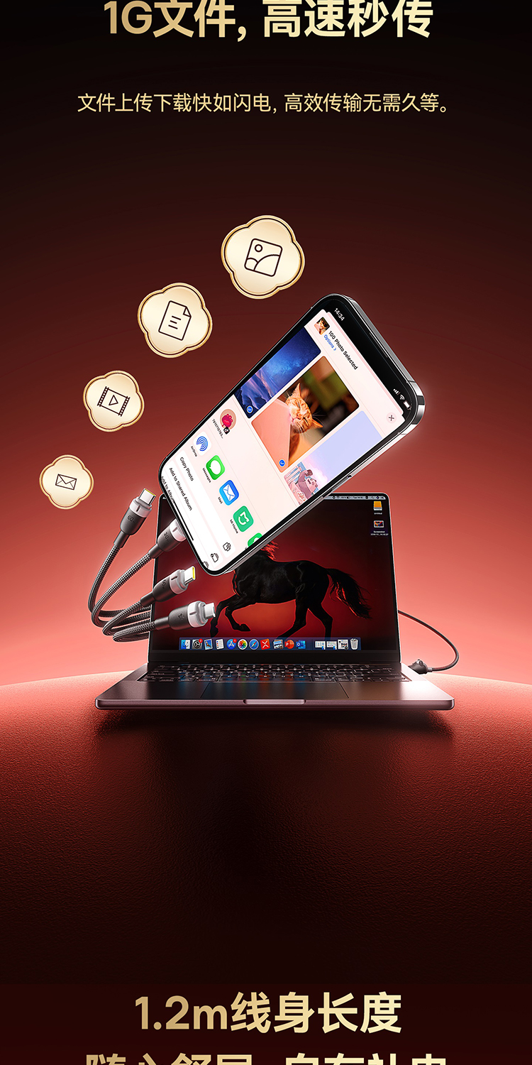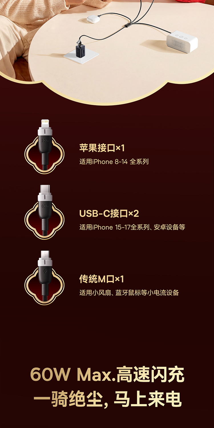 【员工内购】倍思 马年生肖系列 一拖四充电线 USB-C to C+C+L+M 60W 1.2m