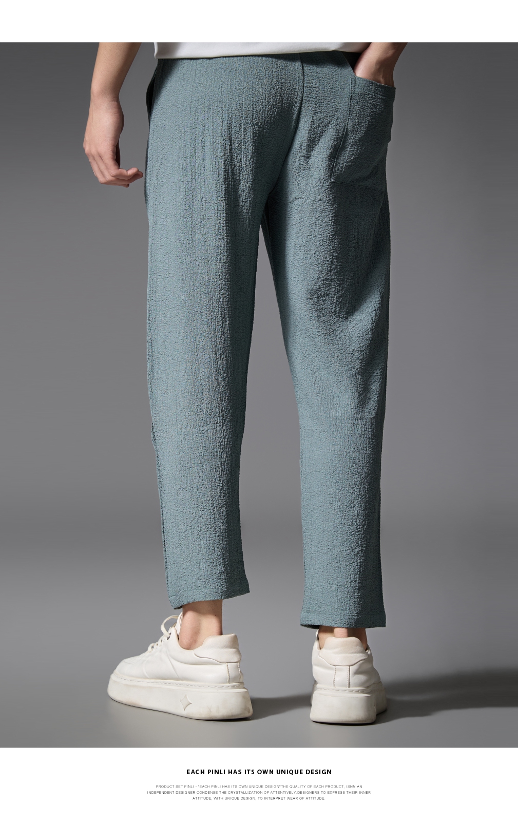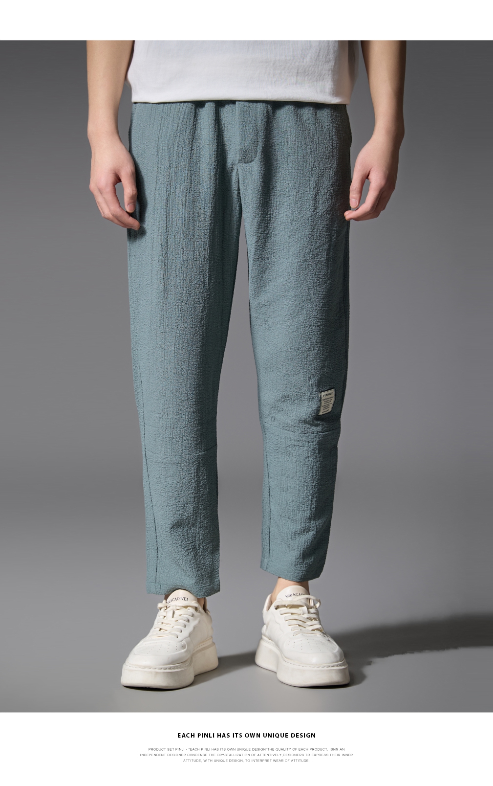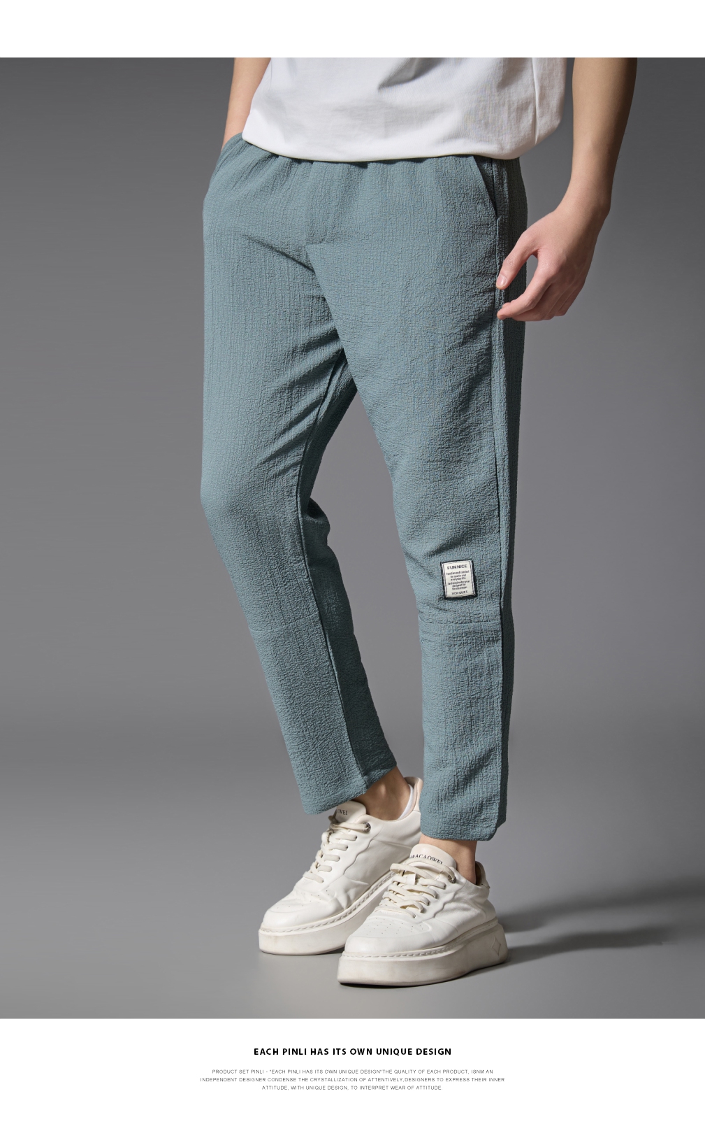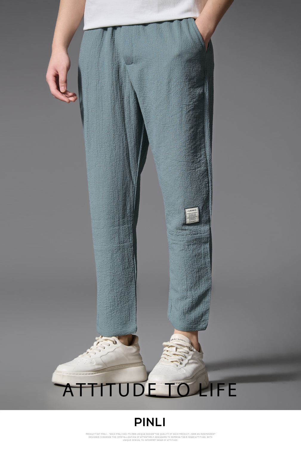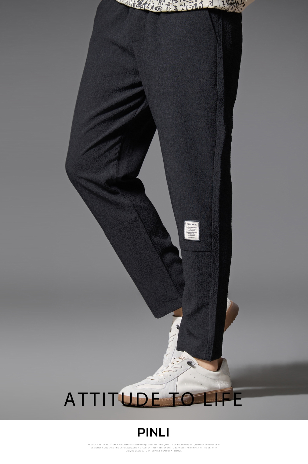 PINLI品立2025春季新款男士字母章仔绣休闲直筒长裤潮GD251117029