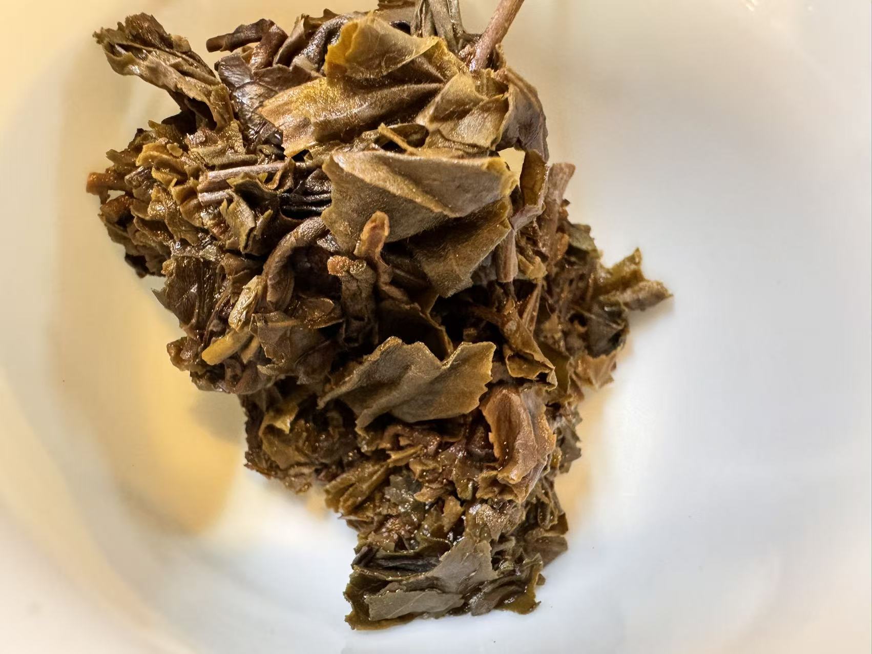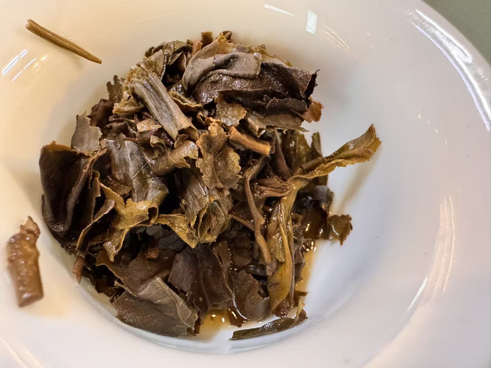 闷泡后,叶底逐渐伸展,有很好的活性且色泽漂亮,再次侧面反映出仓储很好,自然转化。