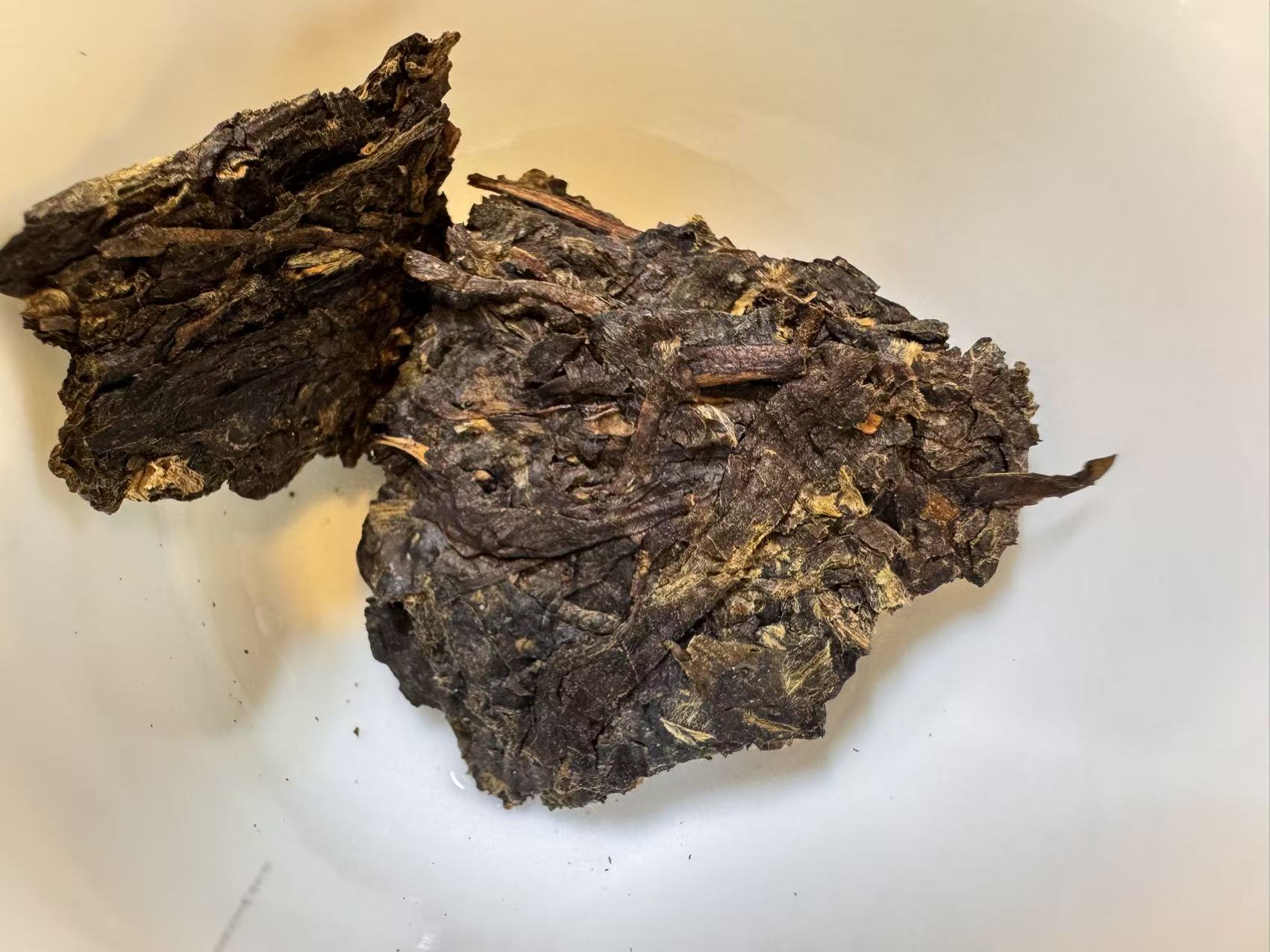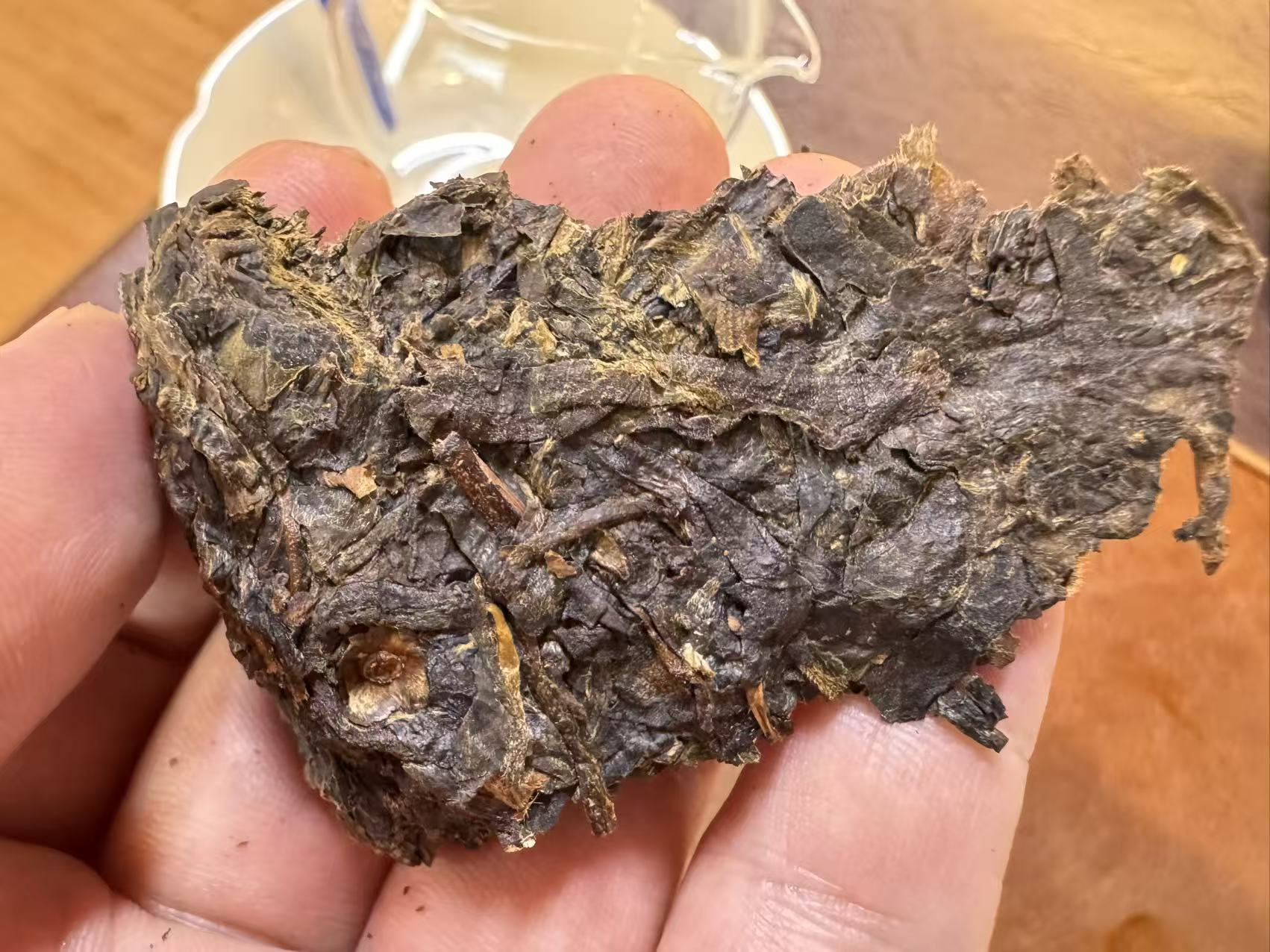 撬下来的茶块,引文很紧压,所有感觉有茶油附着。