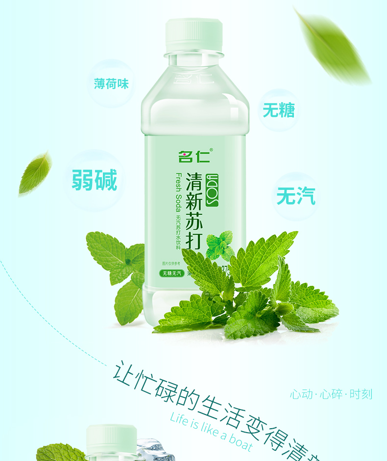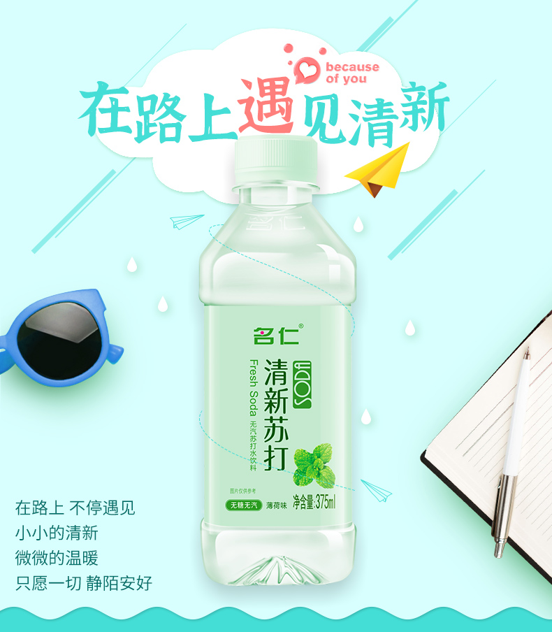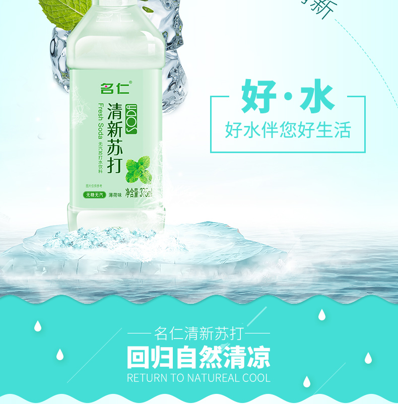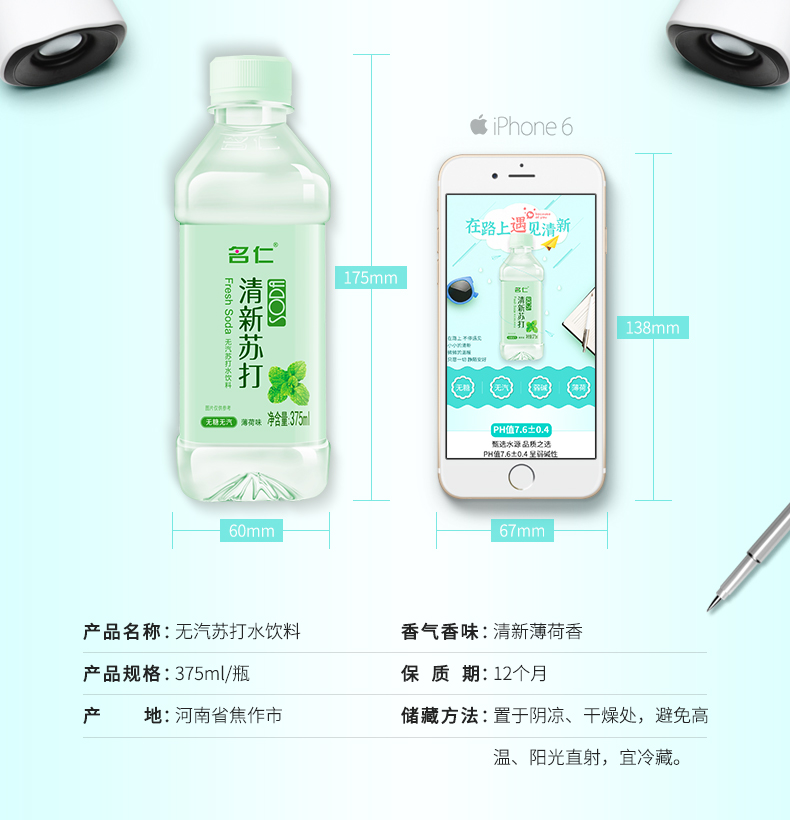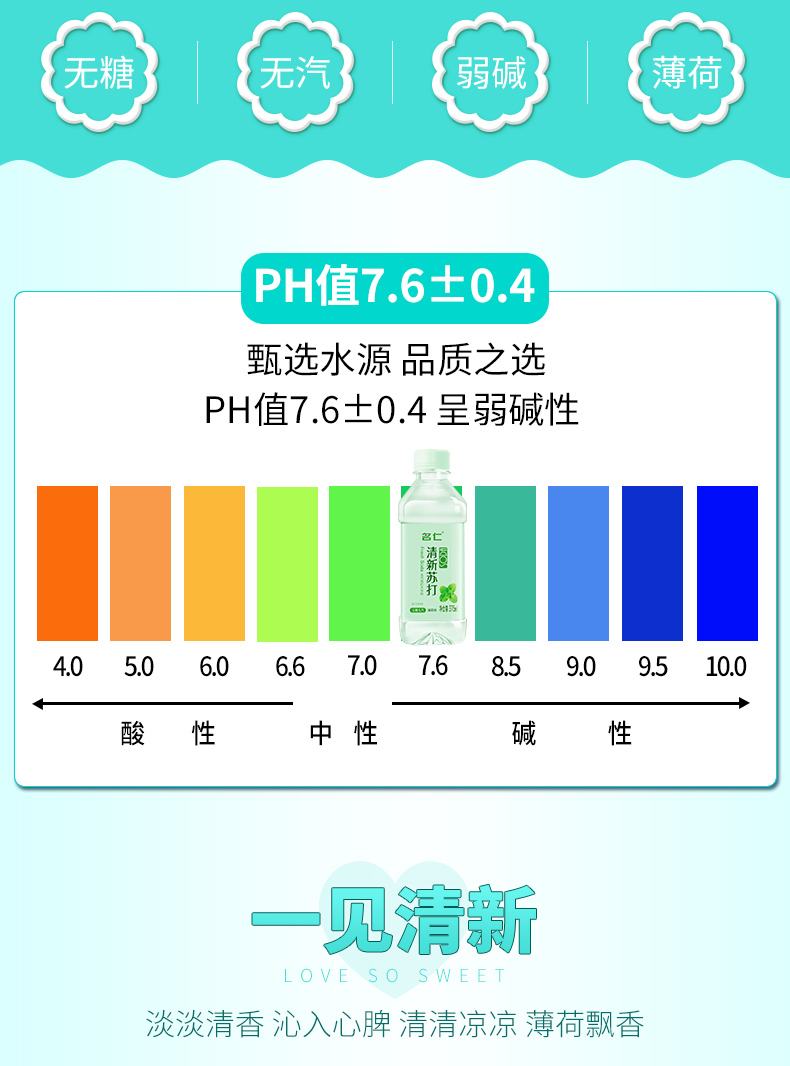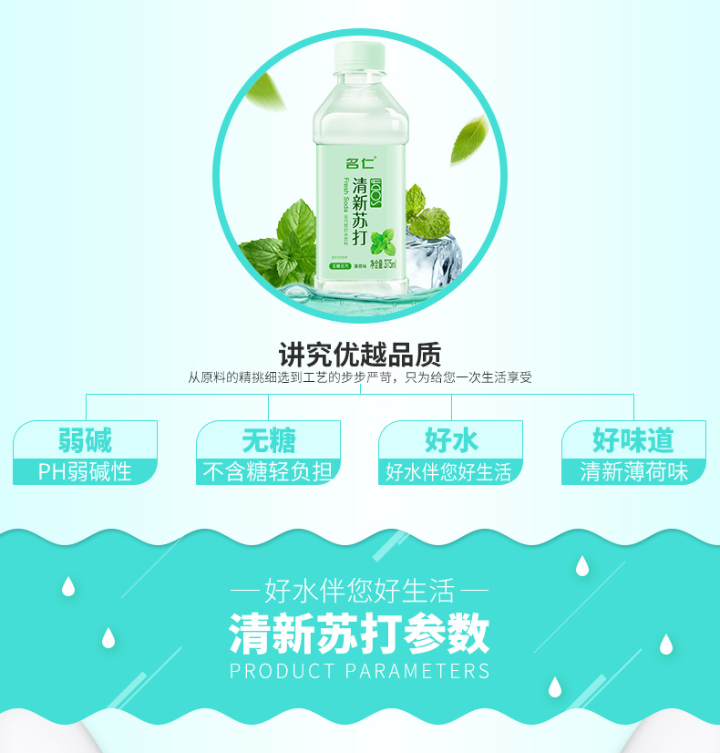 清新苏打水饮料弱碱性水 无糖无汽纯净矿泉水375ml*24瓶薄荷味