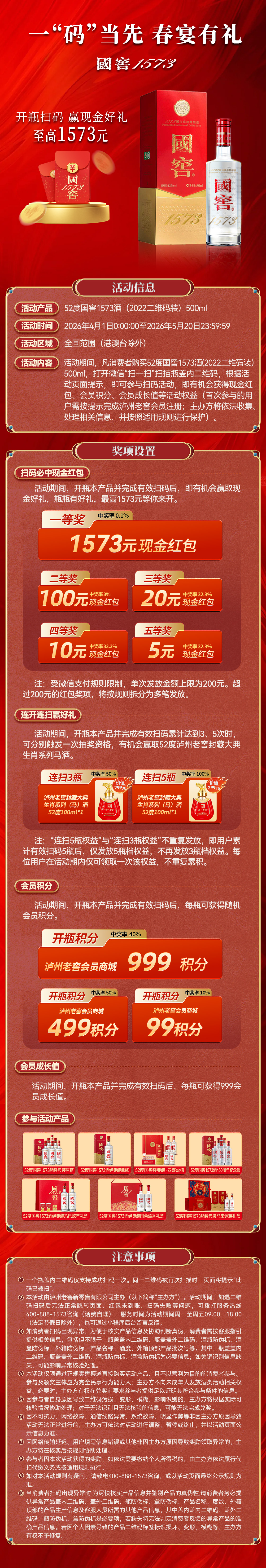 【扫码有好礼】52度国窖1573酒(2022二维码装)500ml 泸州老窖官方旗舰店