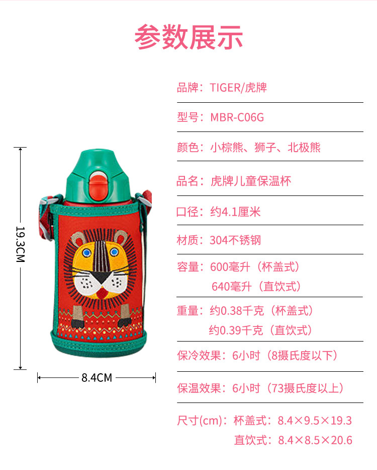 【一般贸易】日本虎牌Tiger日版儿童水杯新款老款都有600ml/800ml两用型保冷/保温杯