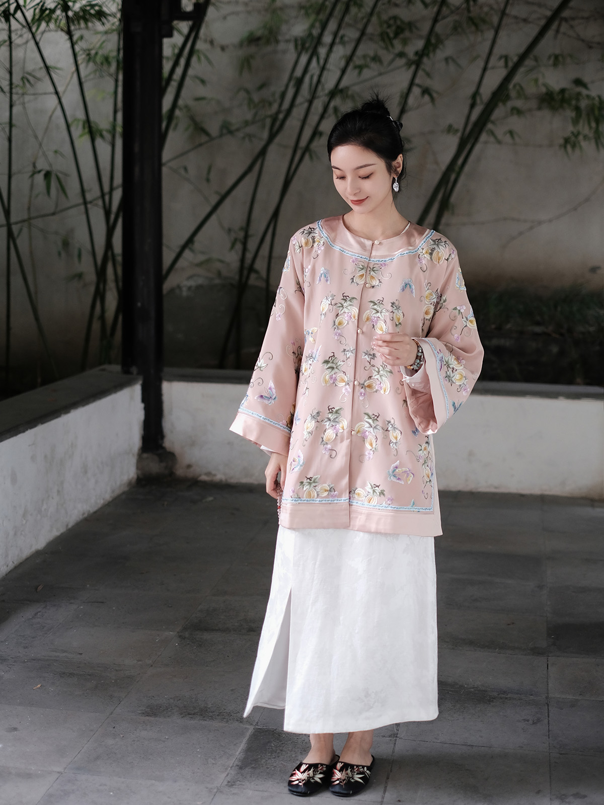 盛唐牡丹 |高货限量款|手工刺绣瓜瓞绵绵对襟长衫 [特价品]