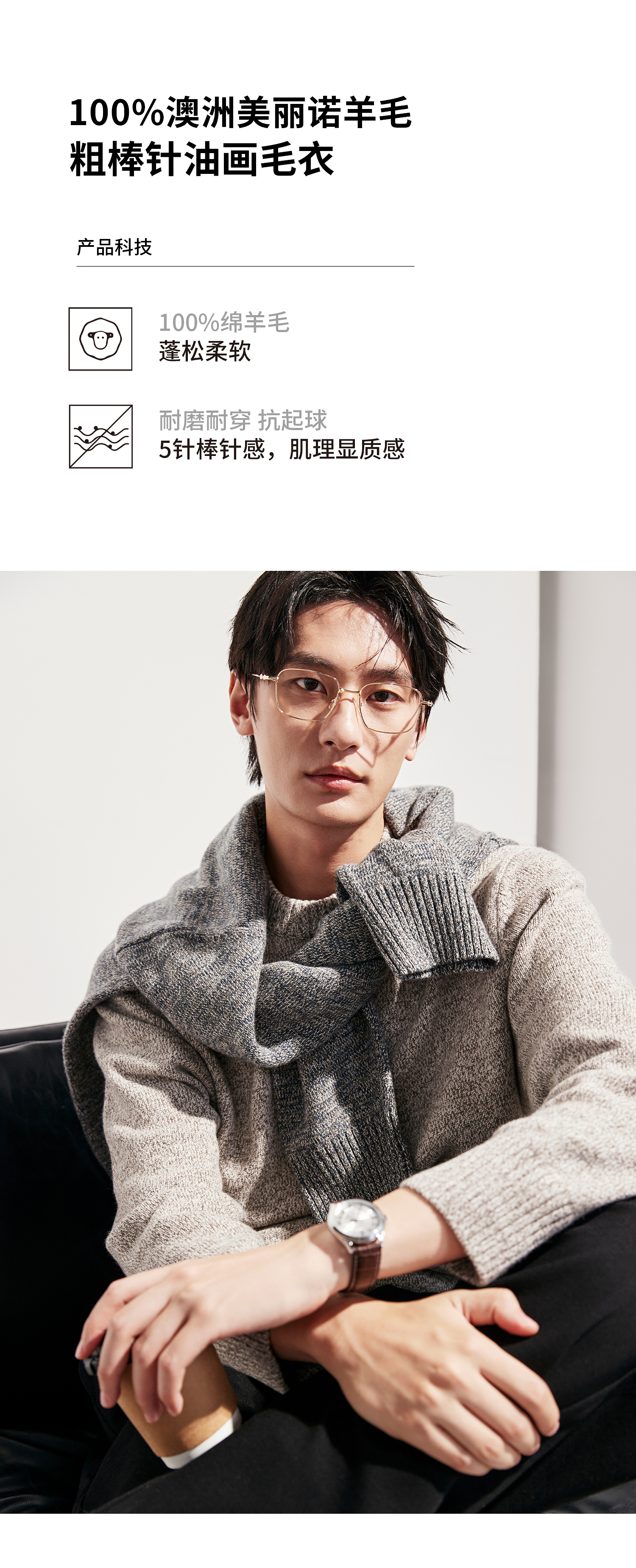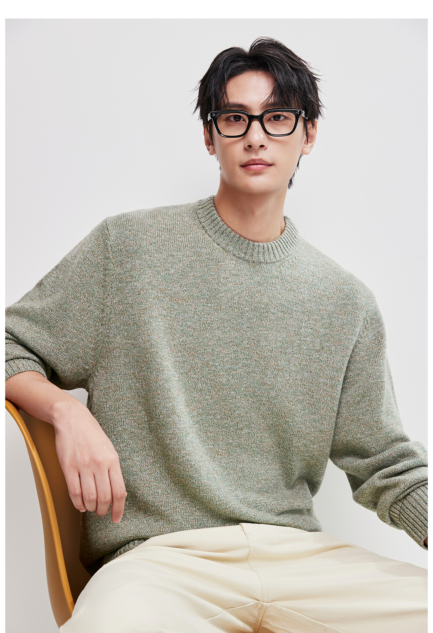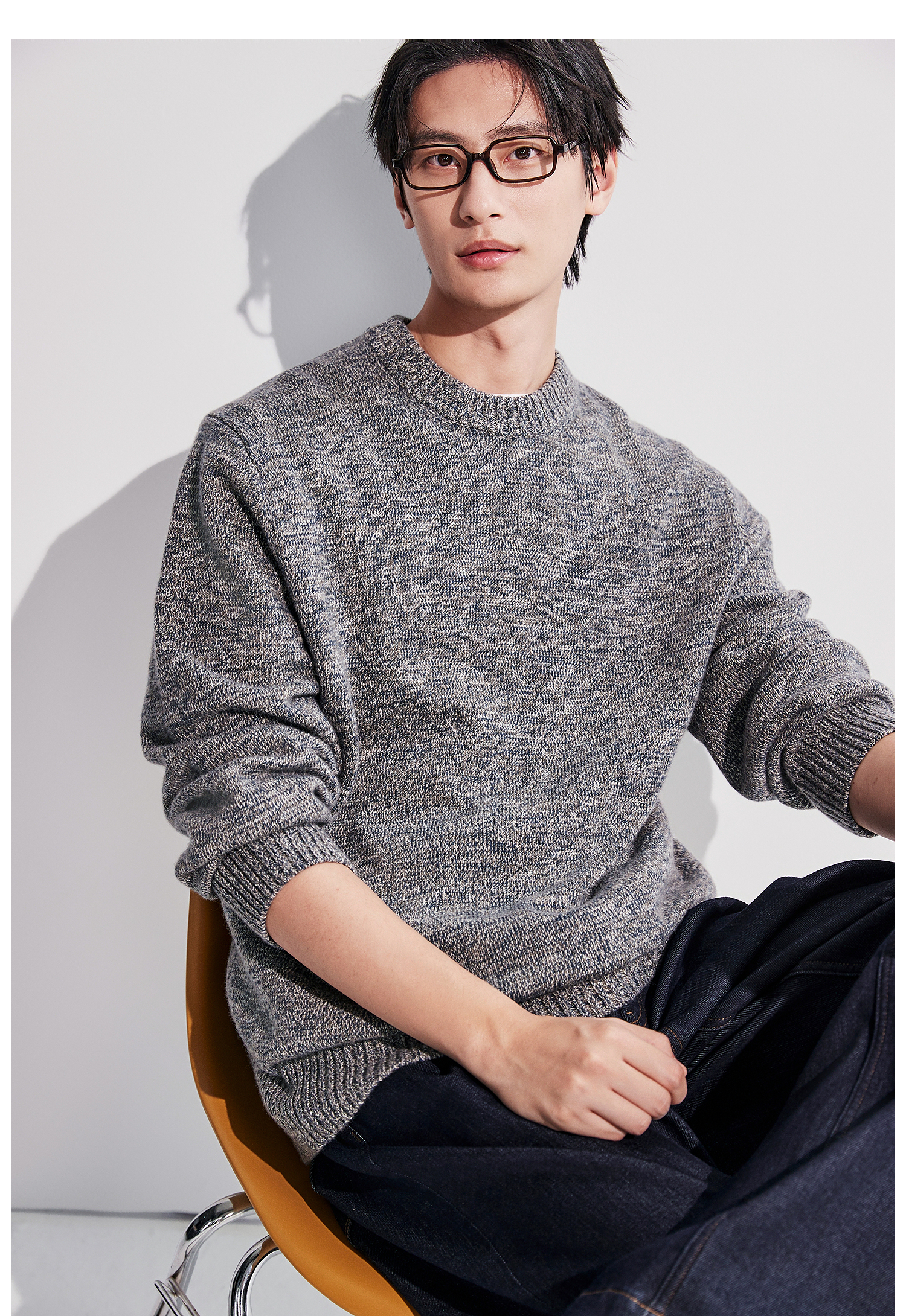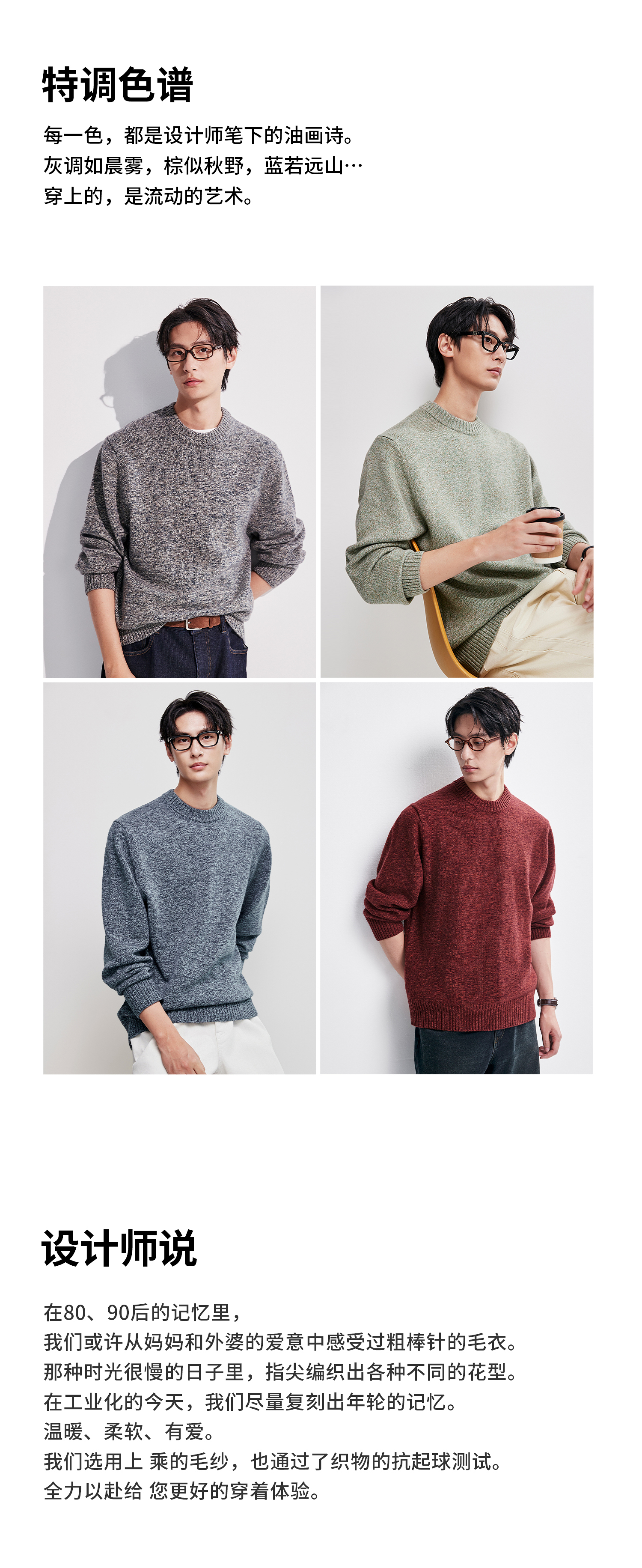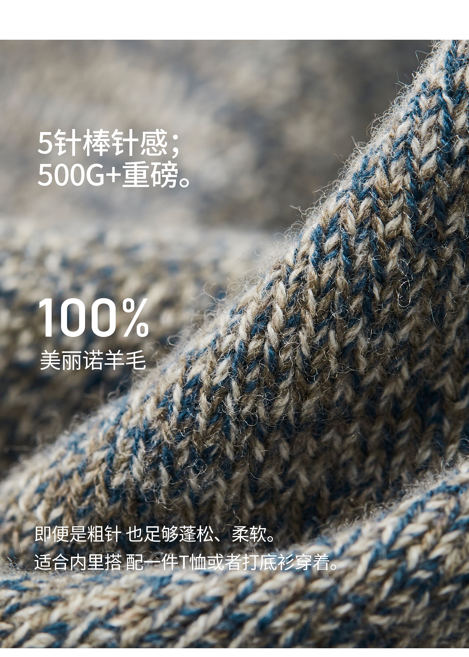 棉先生美丽诺全羊毛毛衣男秋冬高级感宽松情假风厚款花纱羊毛衫