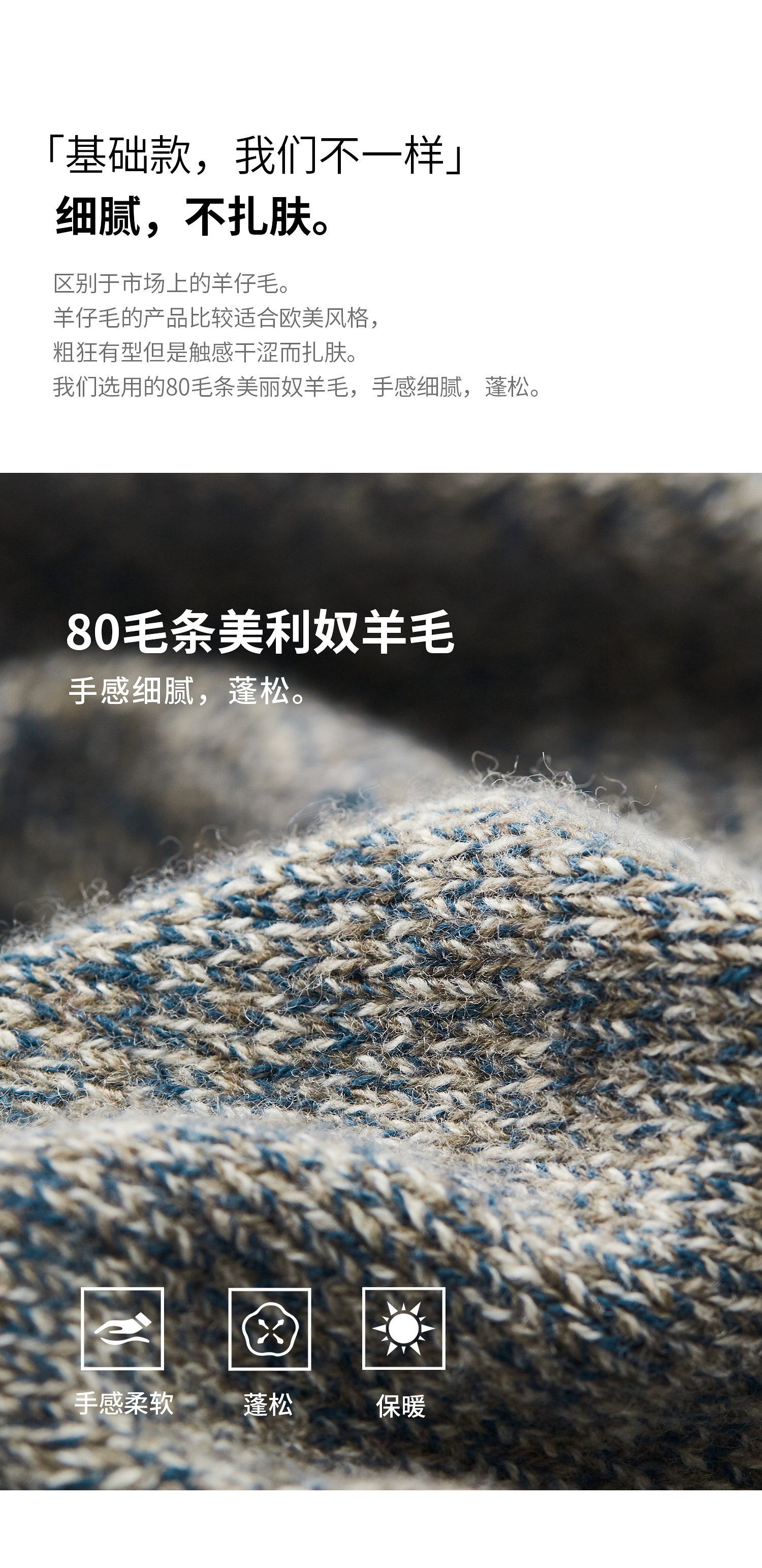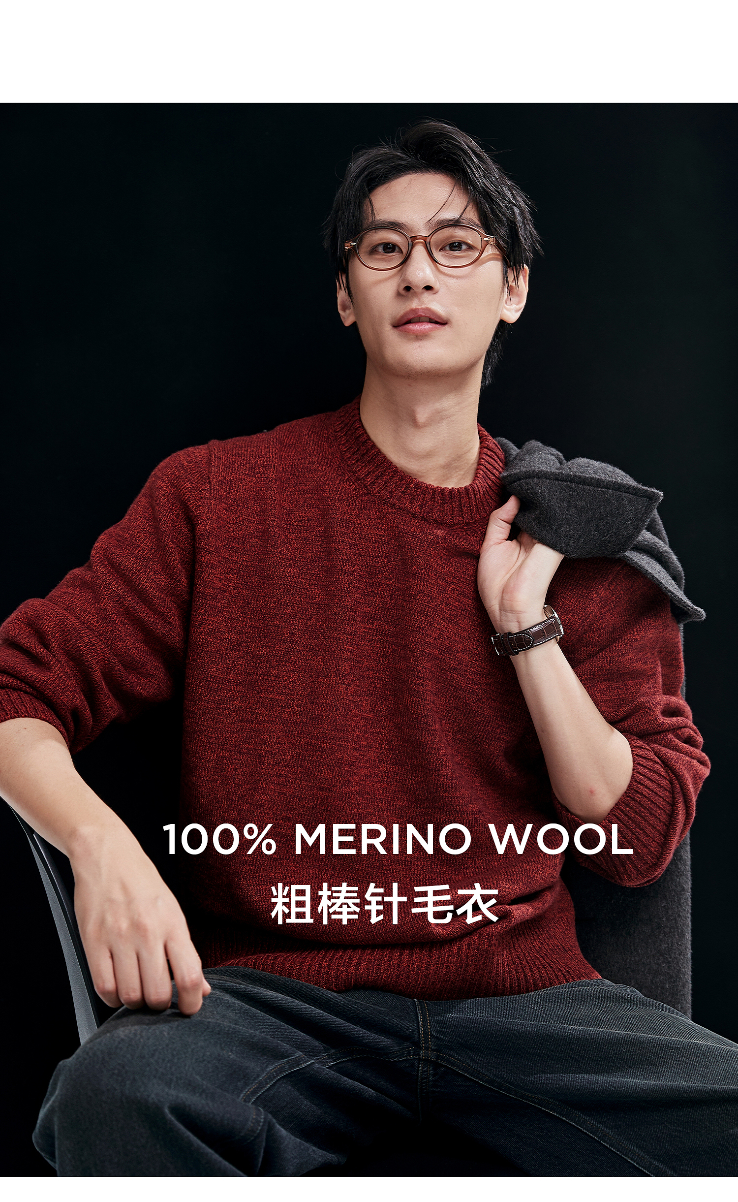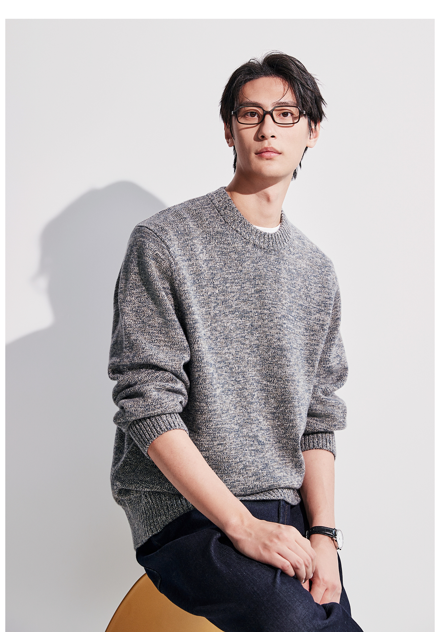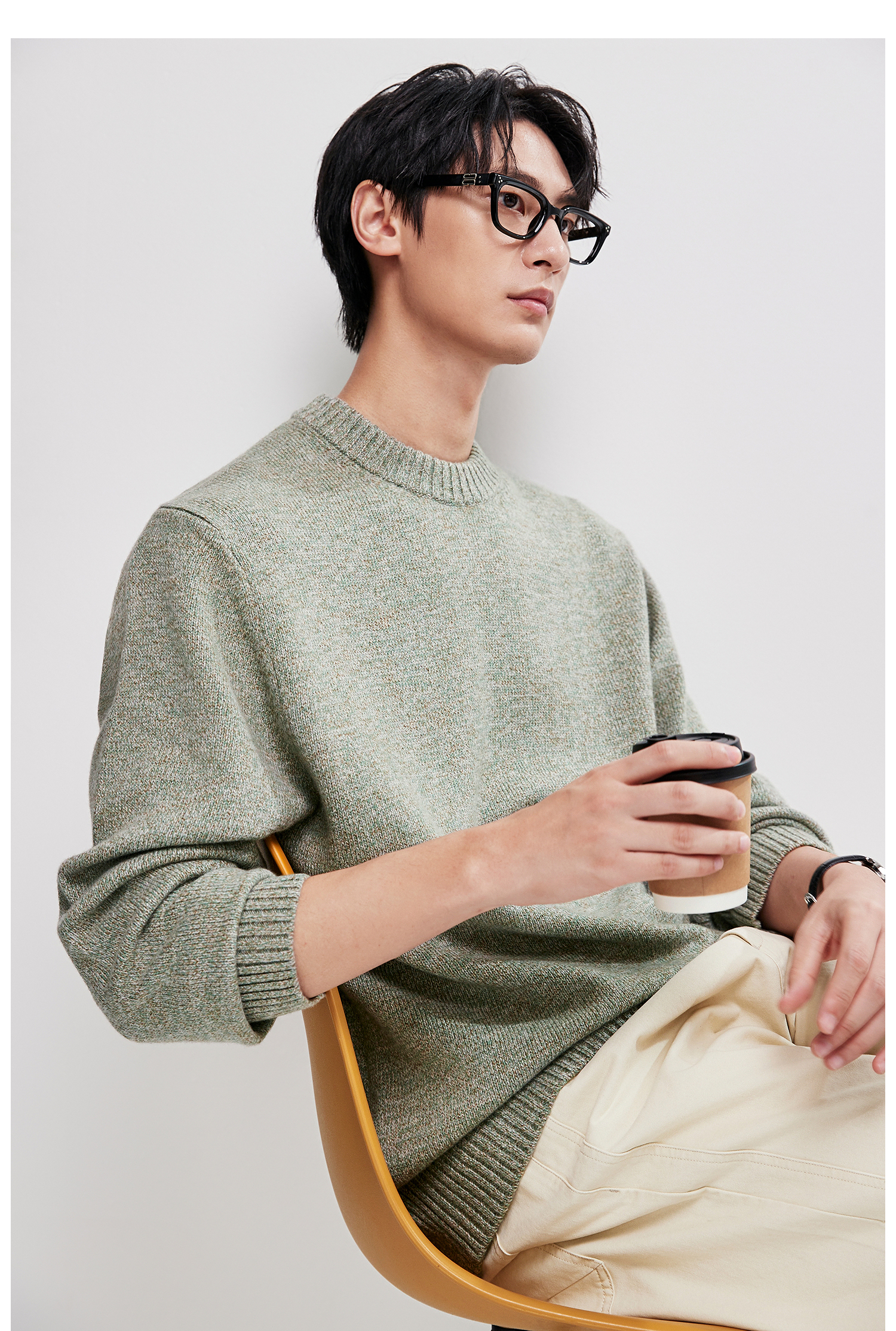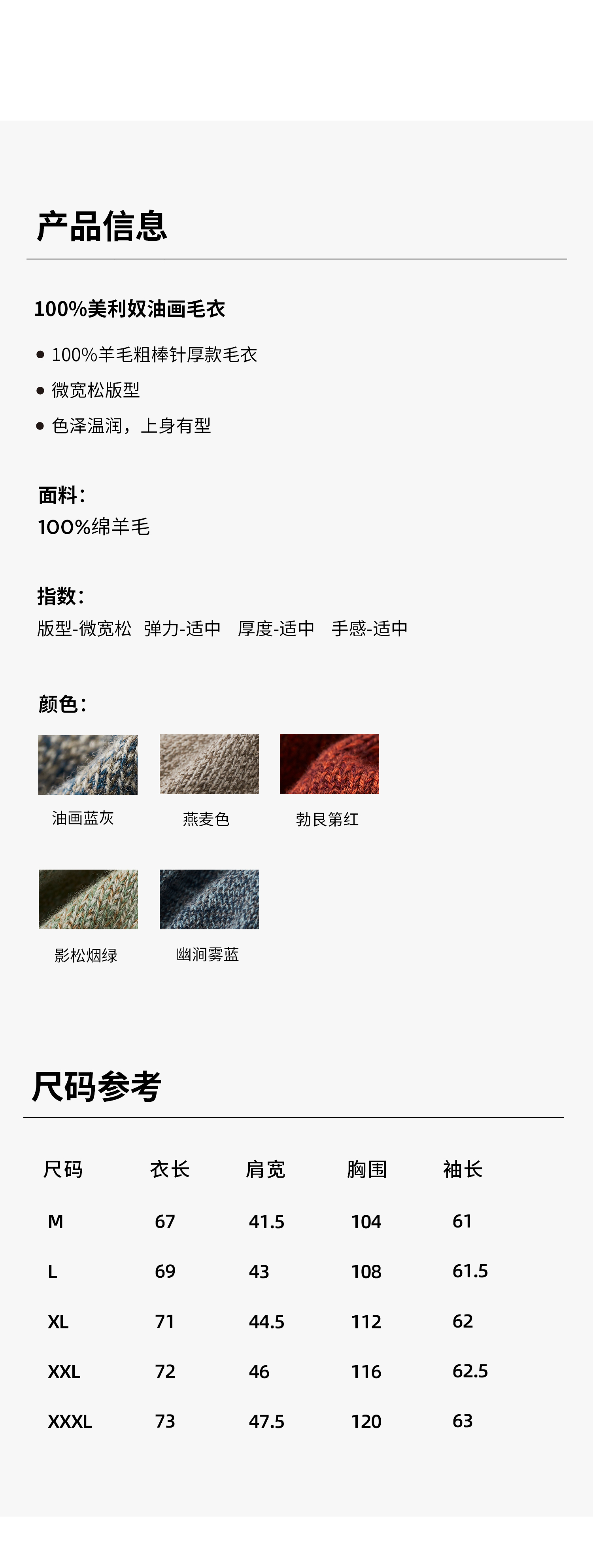 棉先生美丽诺全羊毛毛衣男秋冬高级感宽松情假风厚款花纱羊毛衫