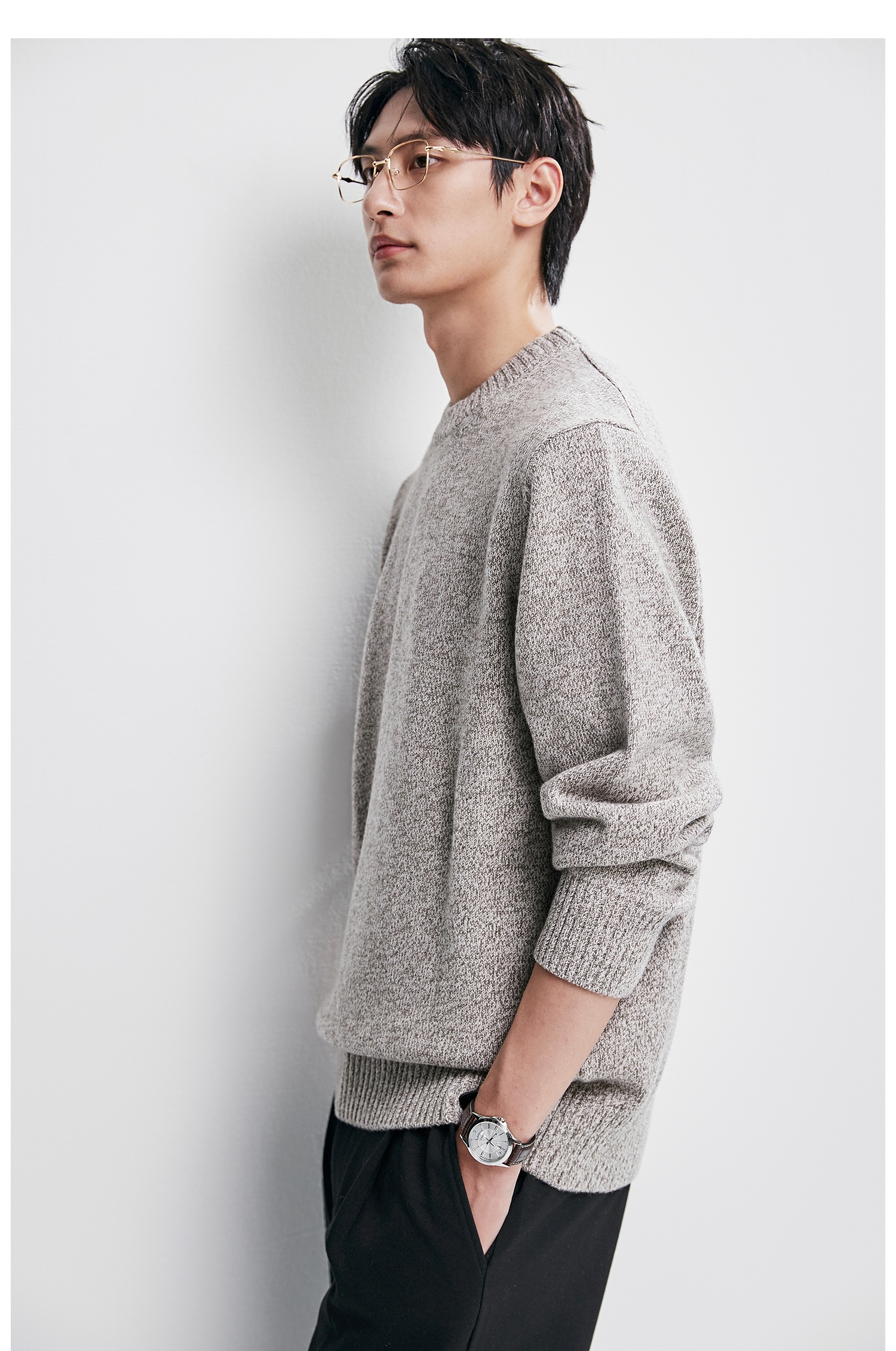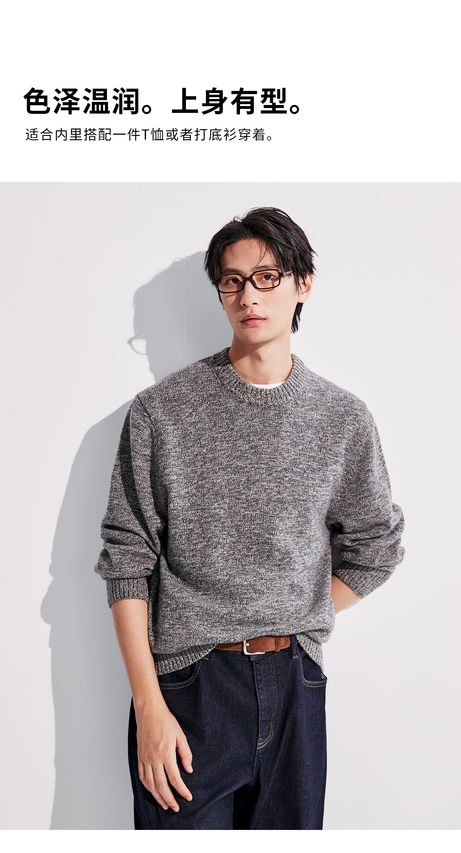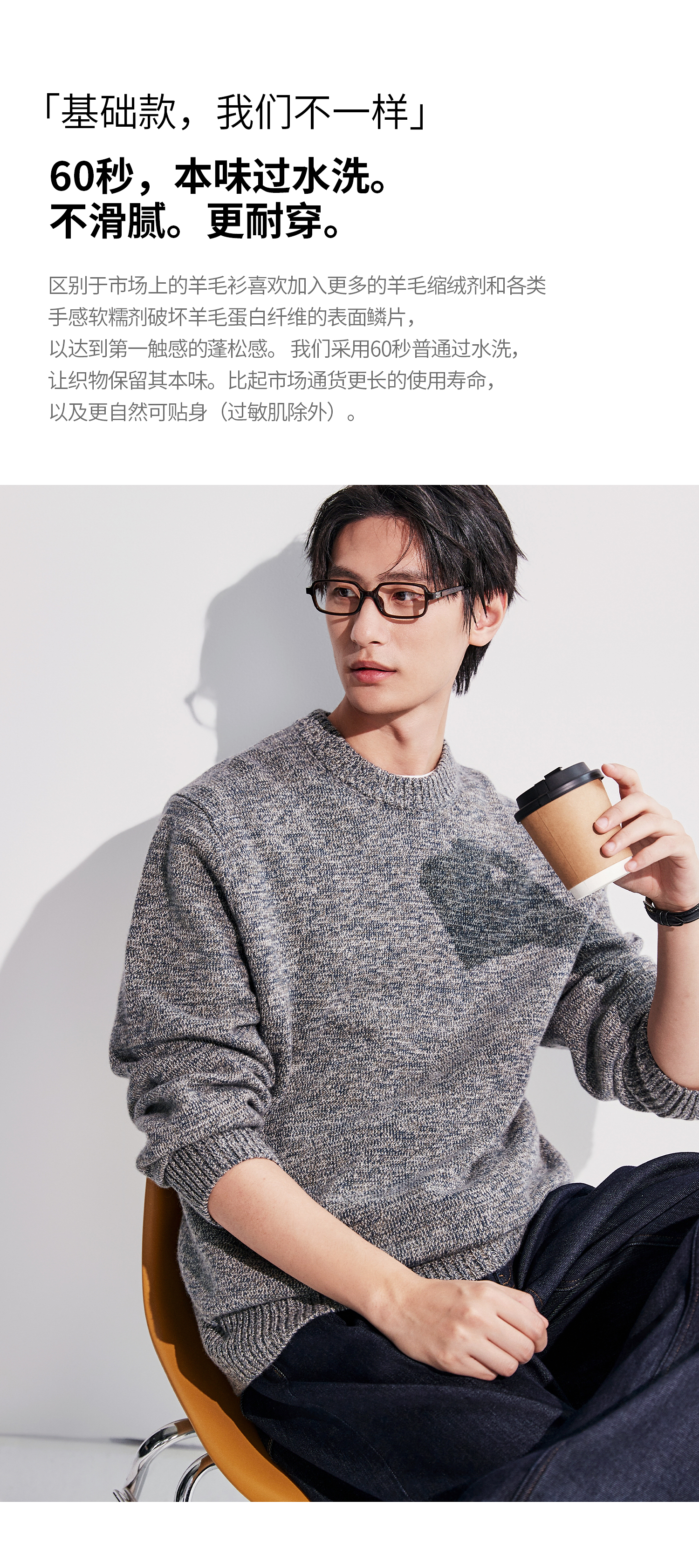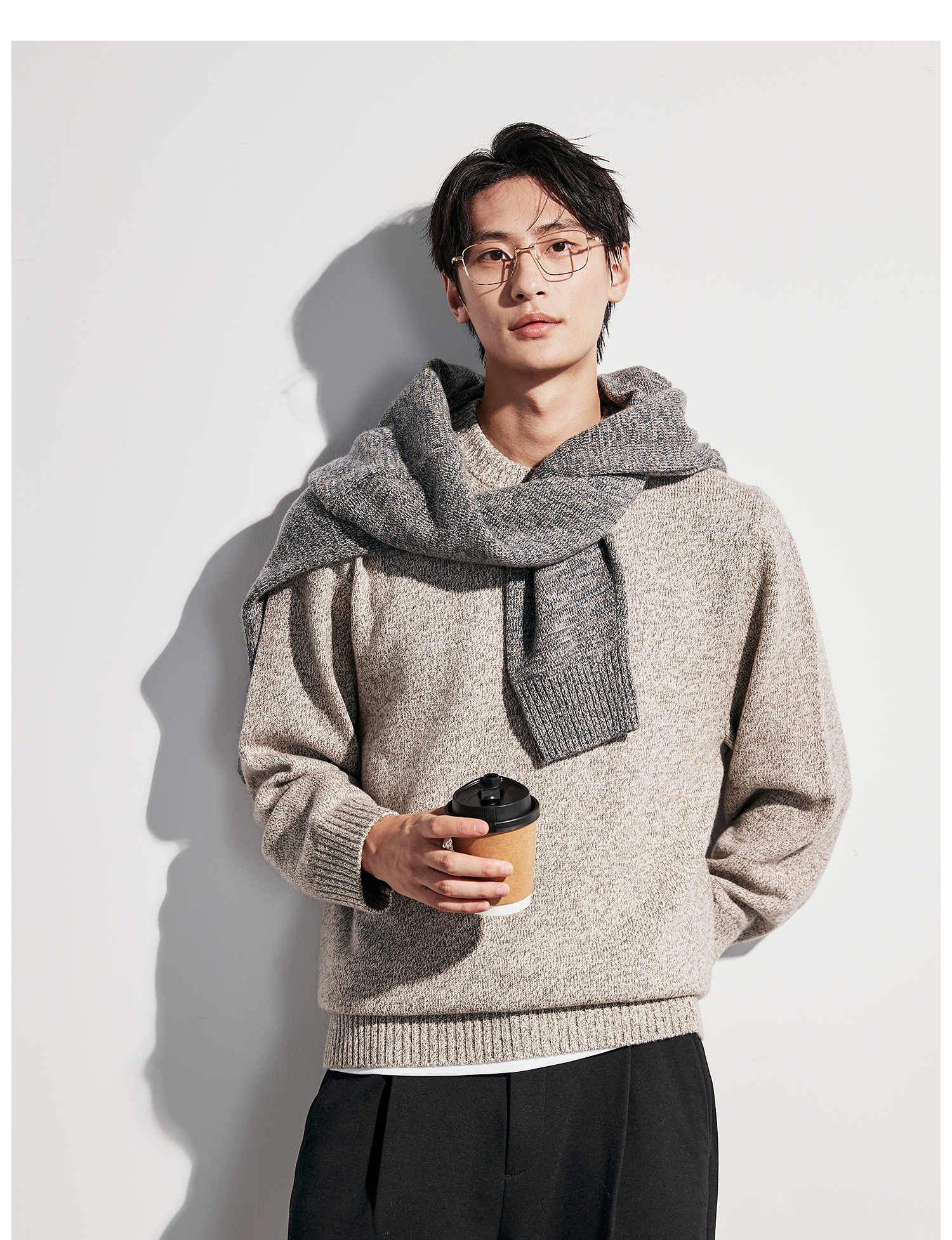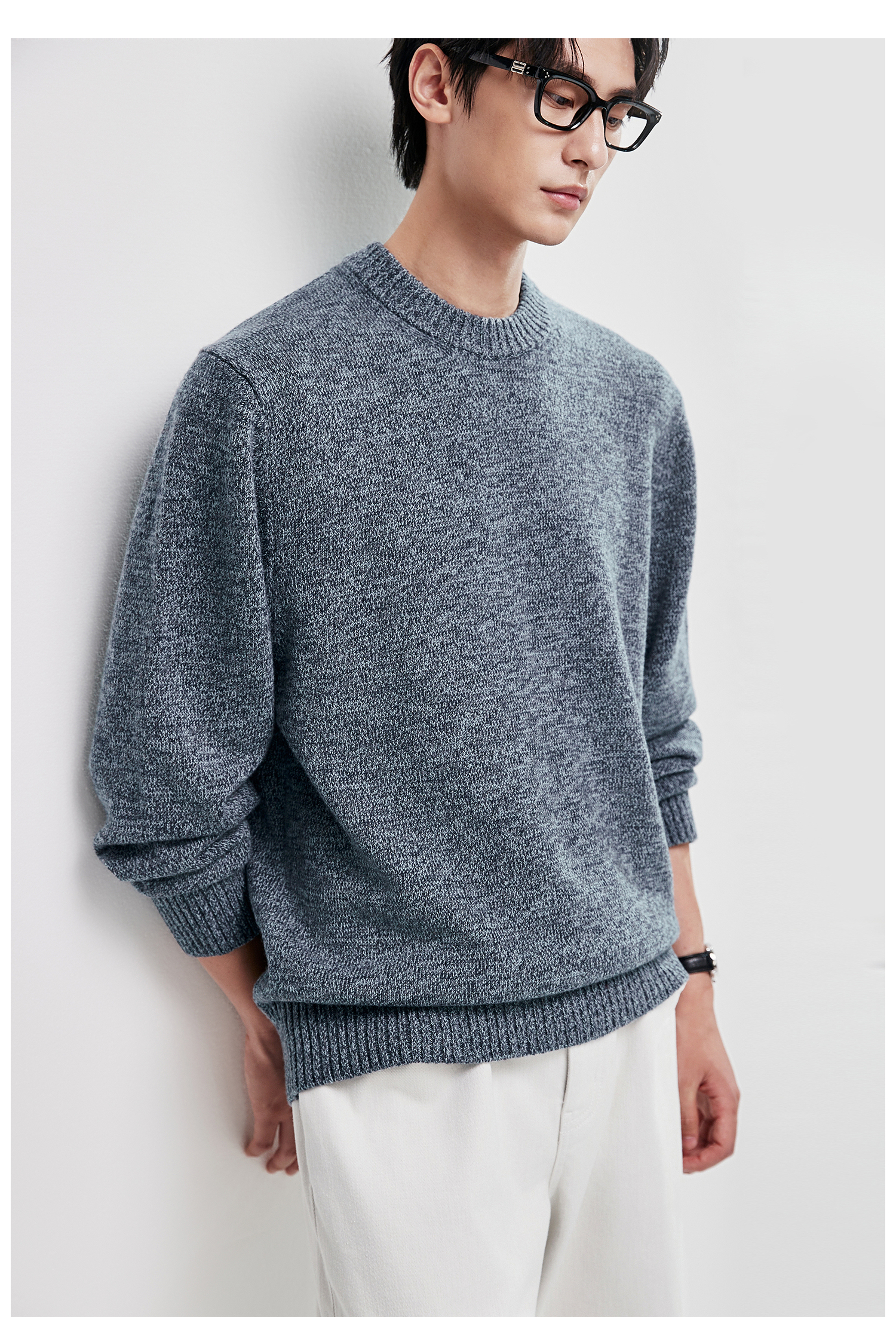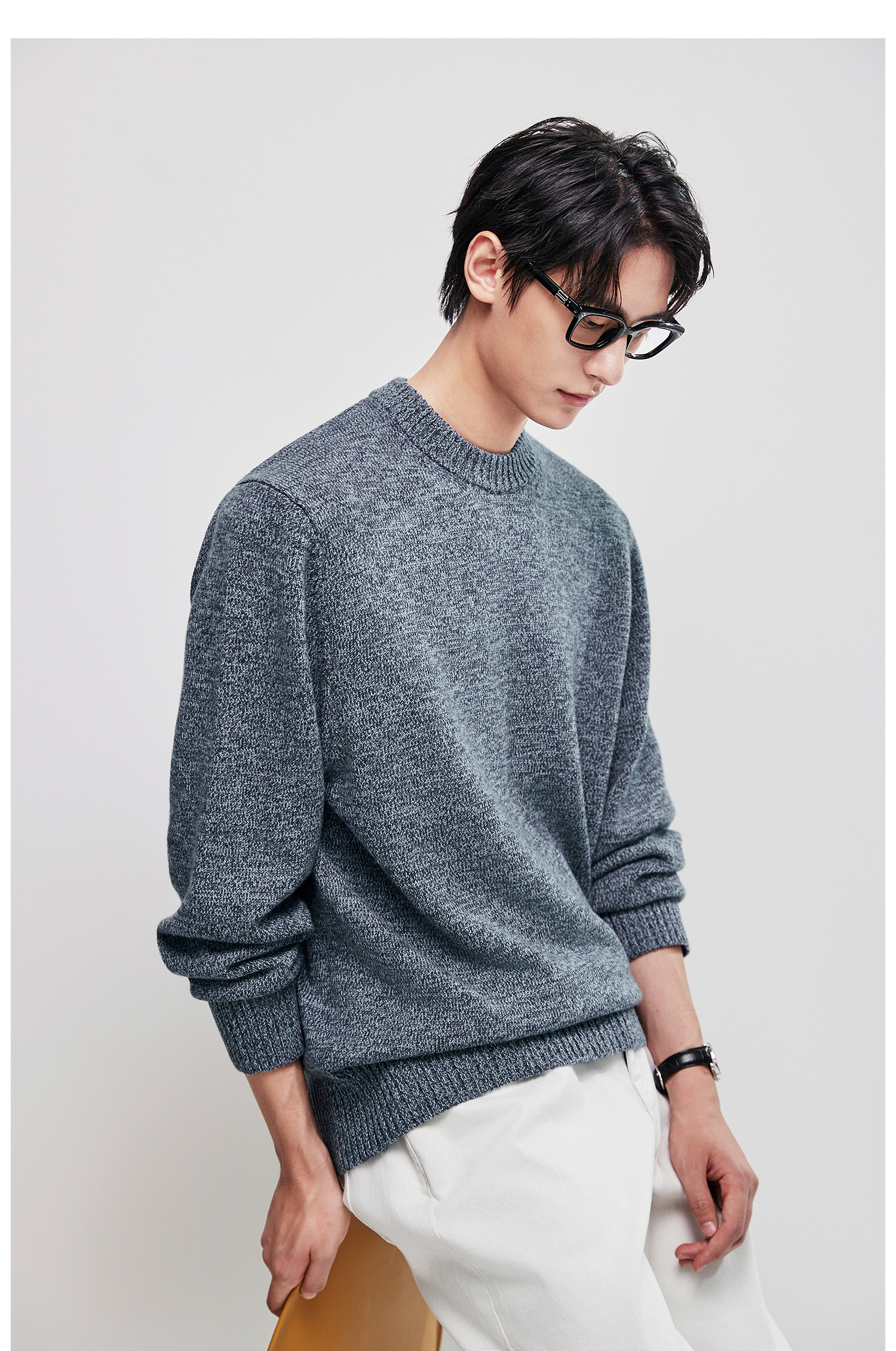 棉先生美丽诺全羊毛毛衣男秋冬高级感宽松情假风厚款花纱羊毛衫
