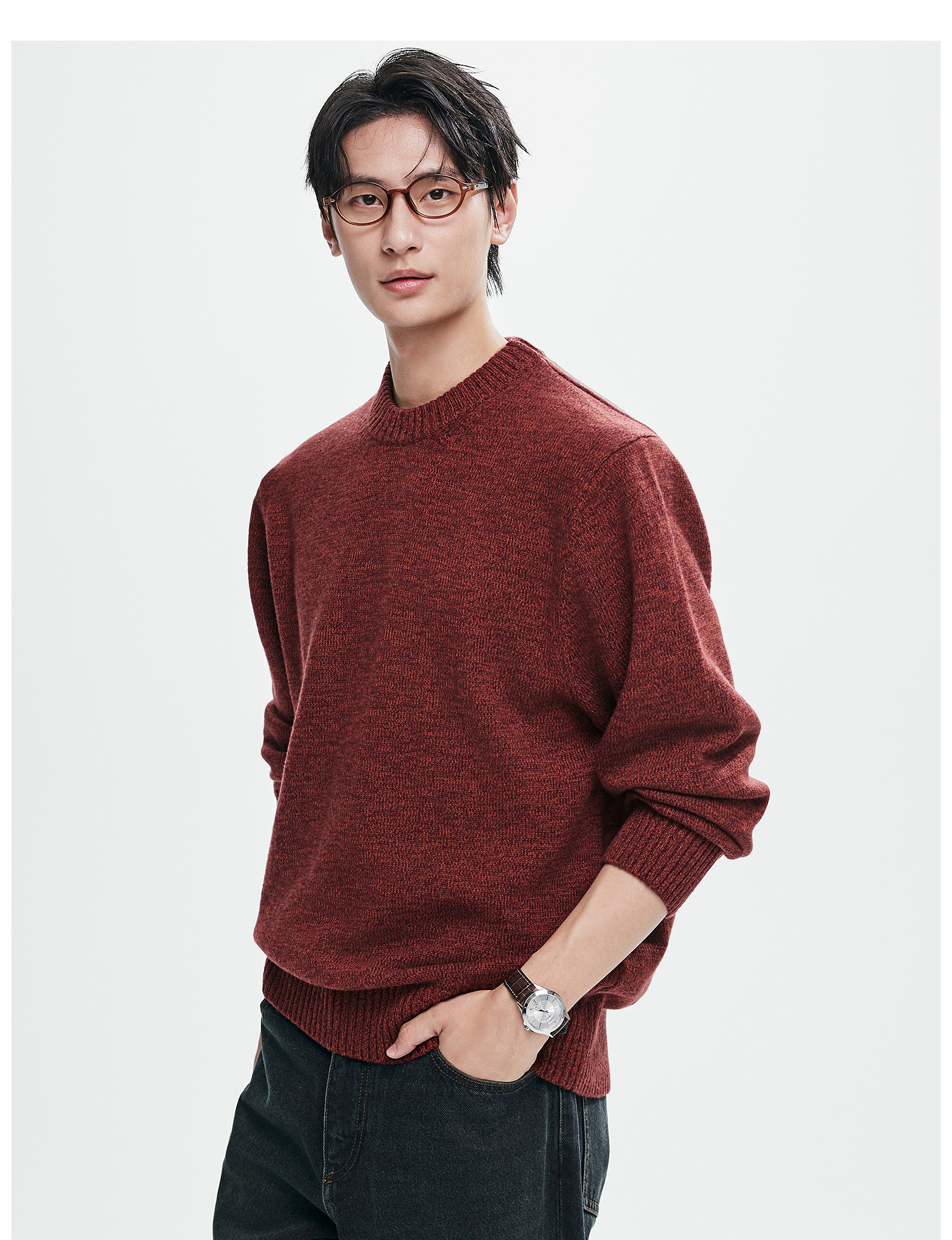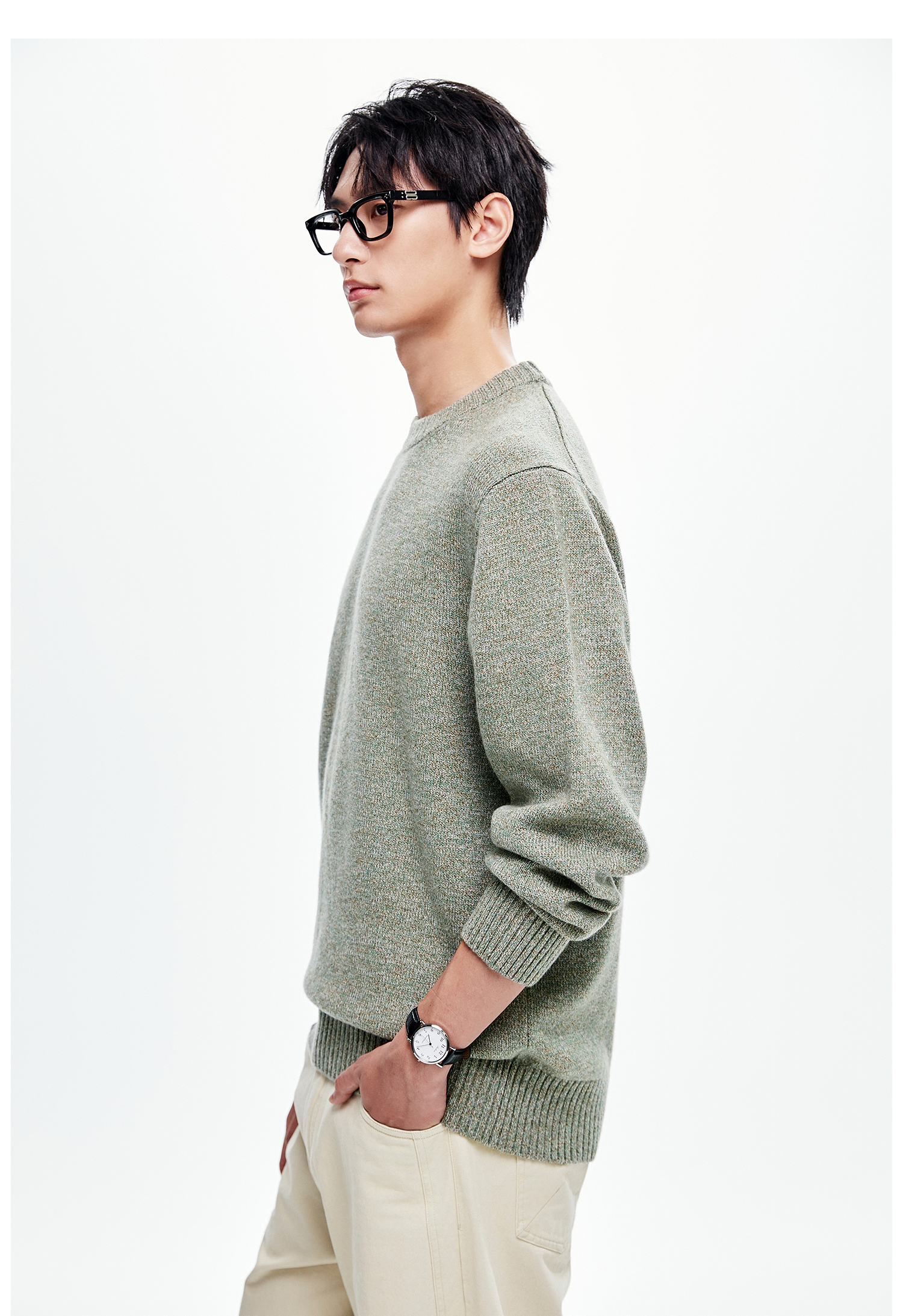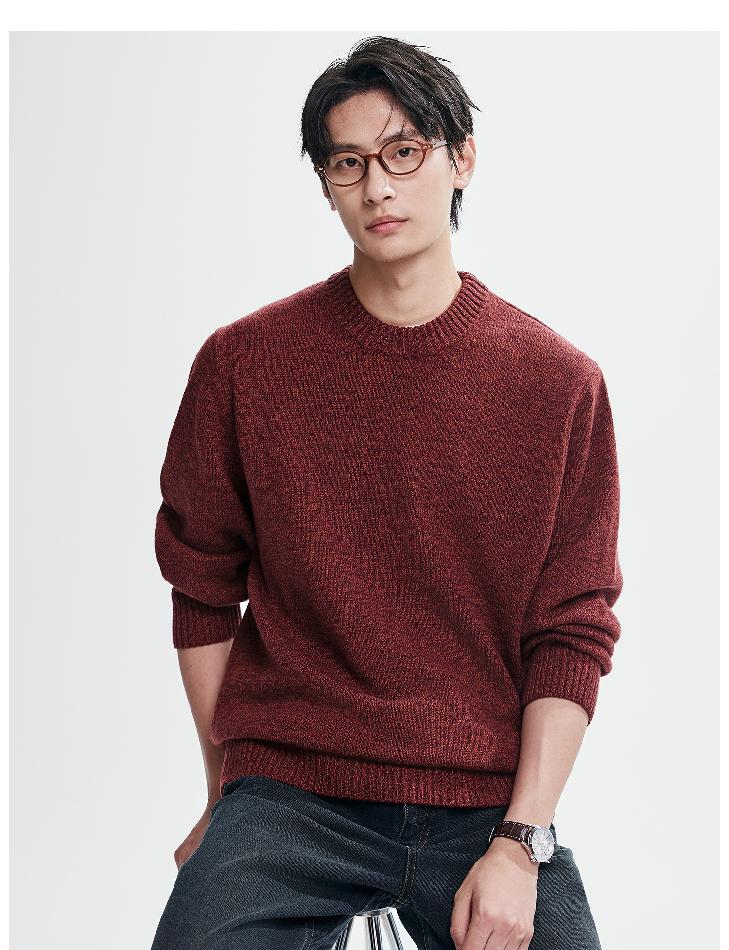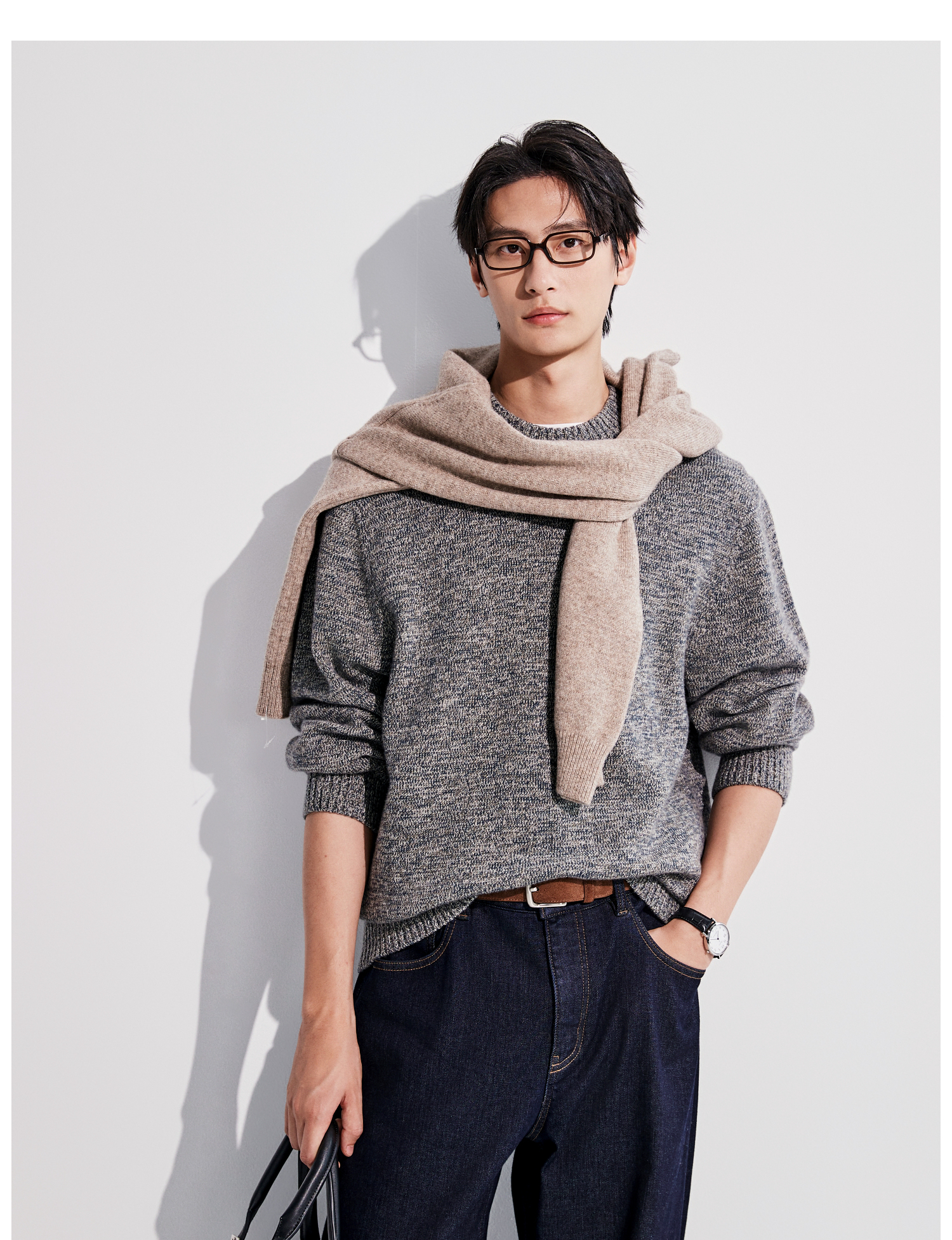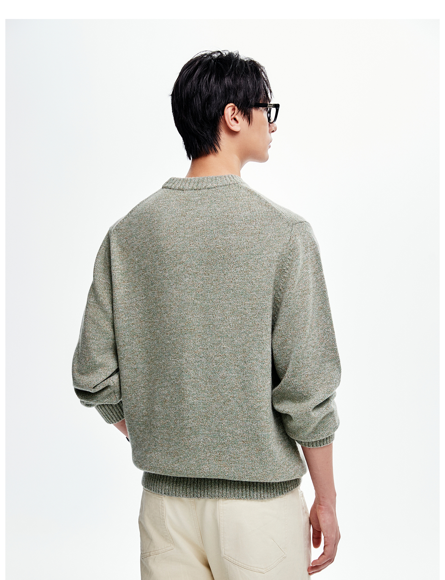 棉先生美丽诺全羊毛毛衣男秋冬高级感宽松情假风厚款花纱羊毛衫