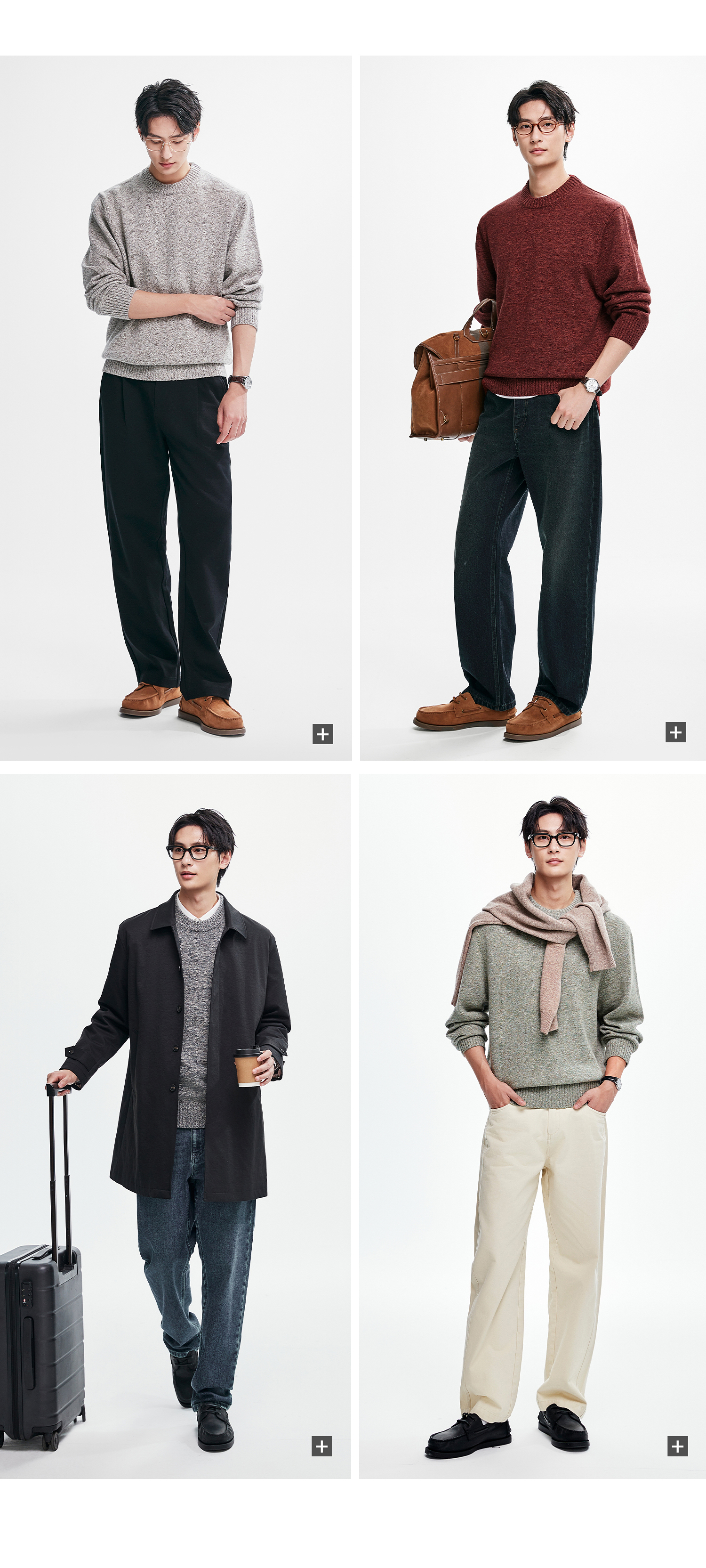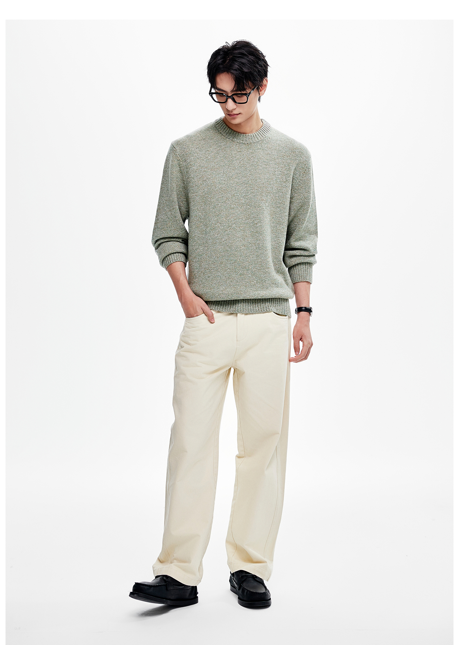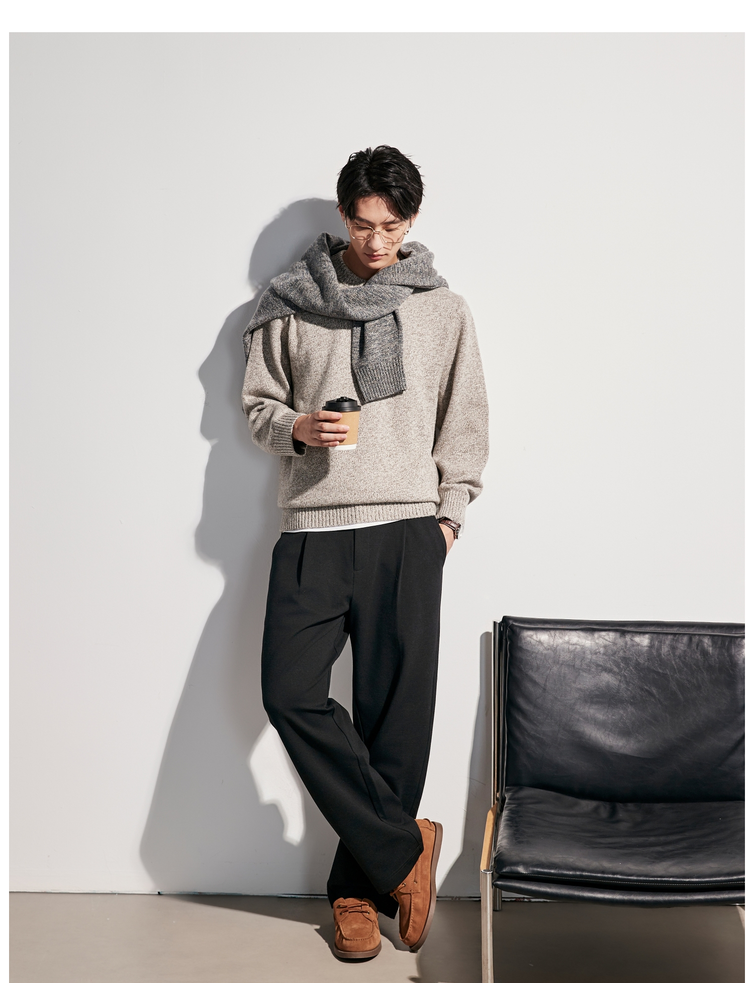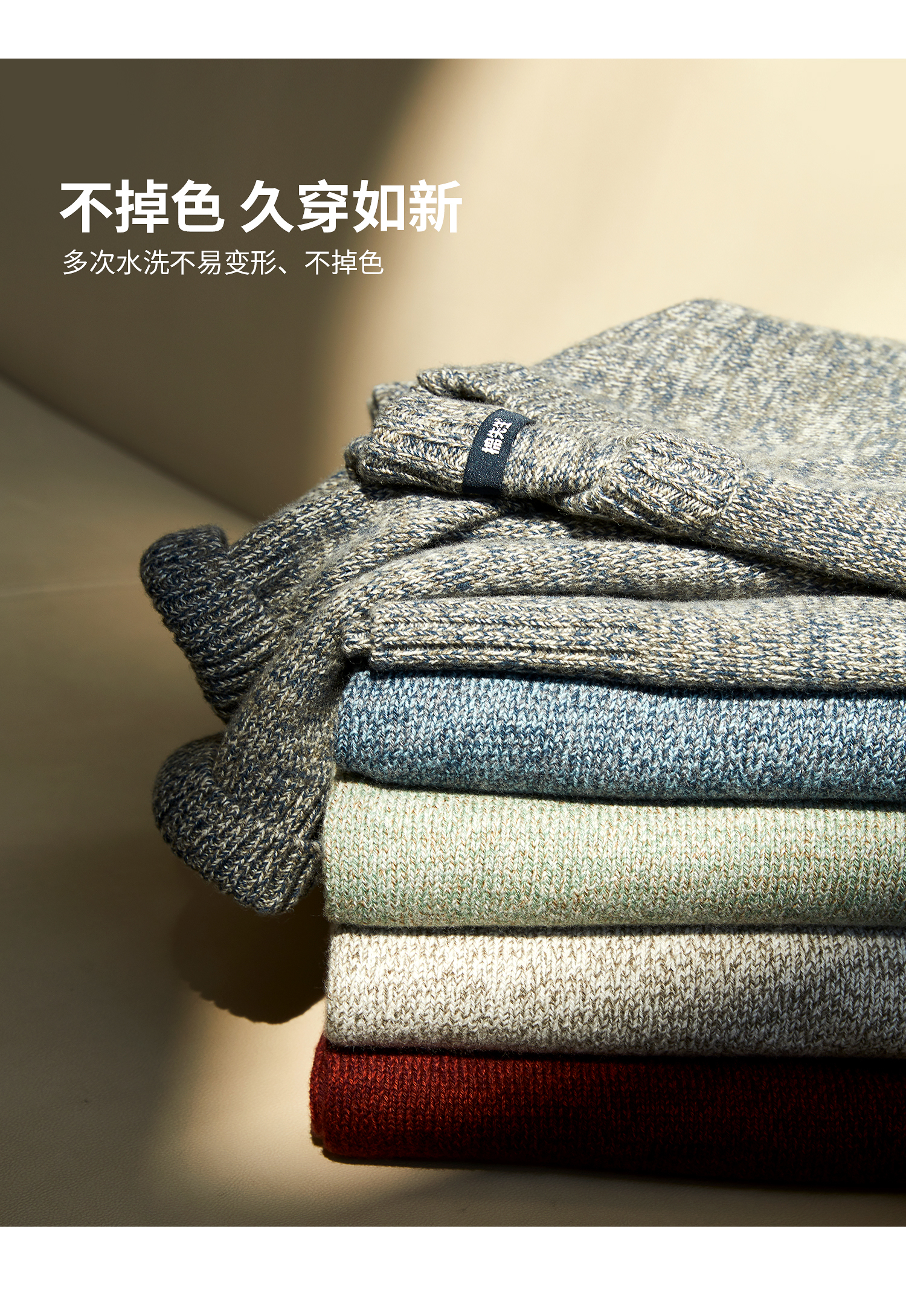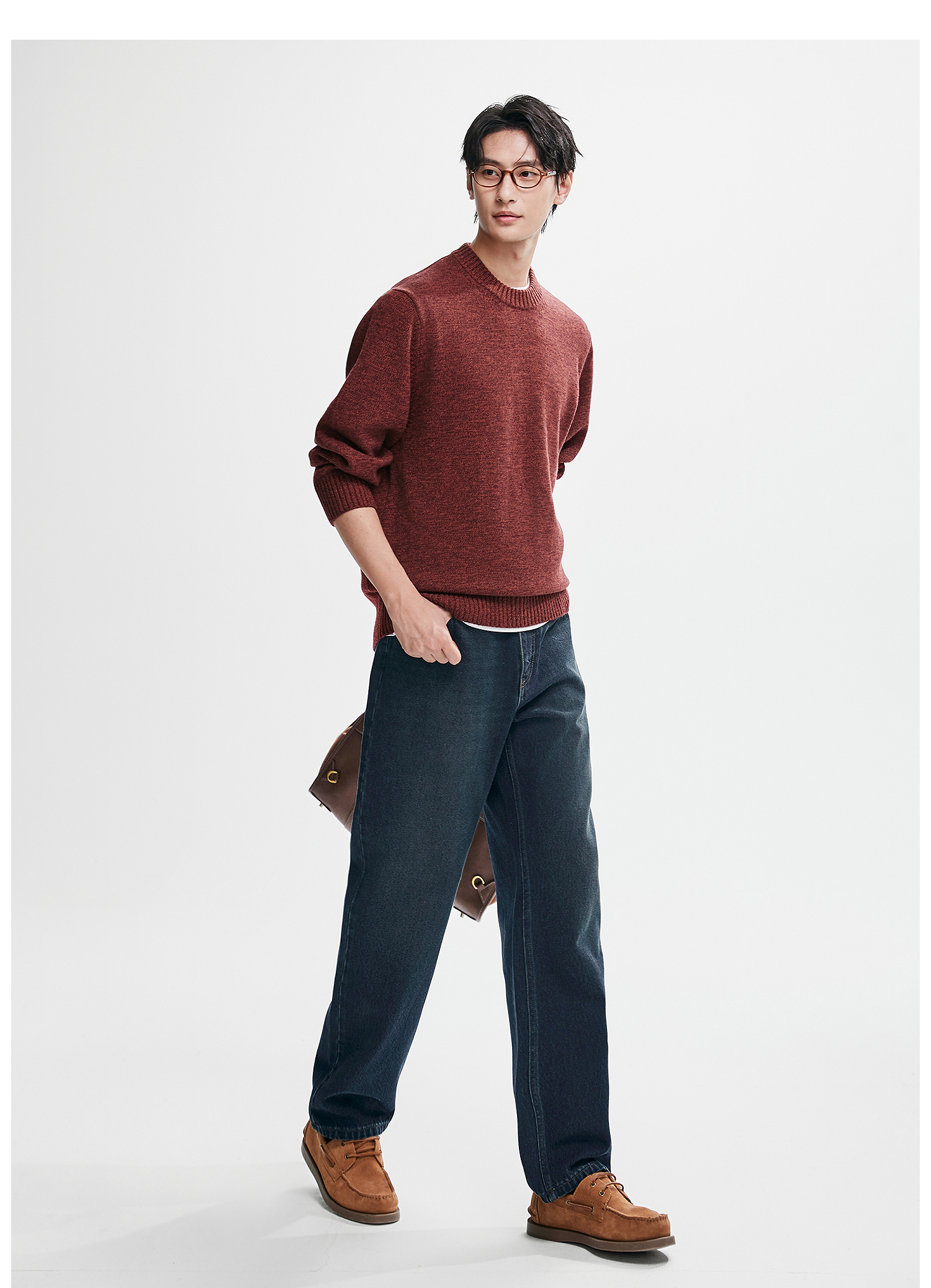 棉先生美丽诺全羊毛毛衣男秋冬高级感宽松情假风厚款花纱羊毛衫