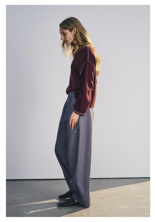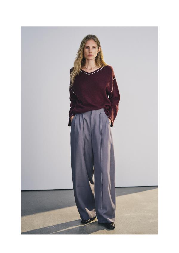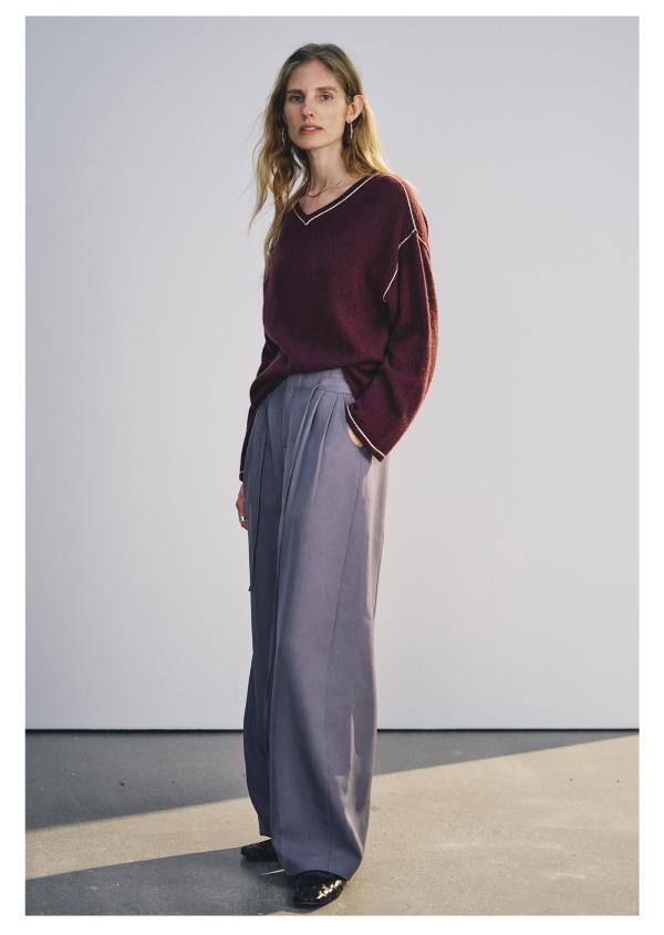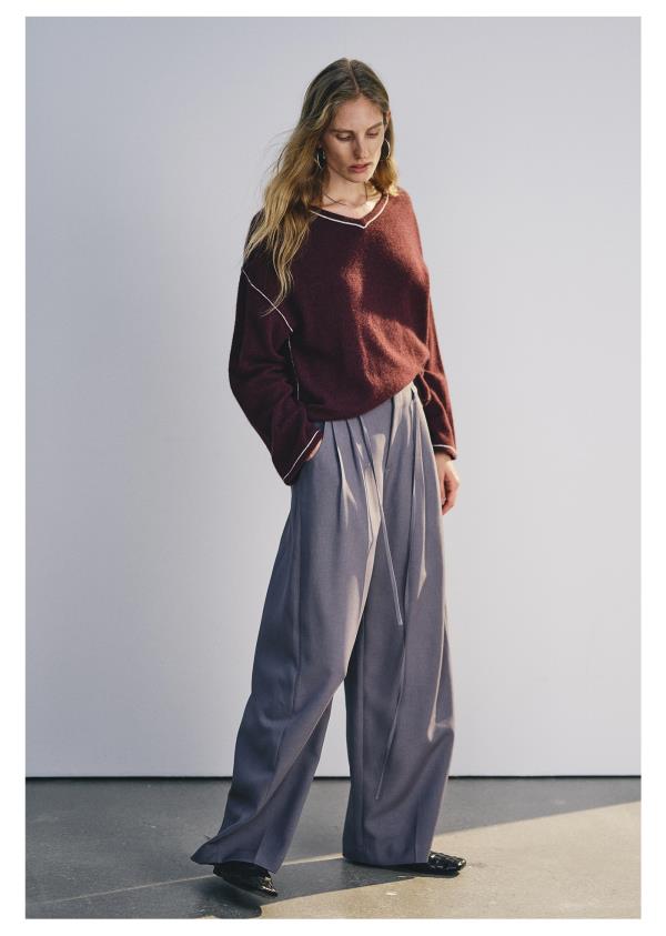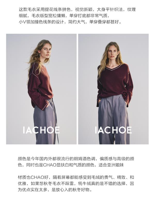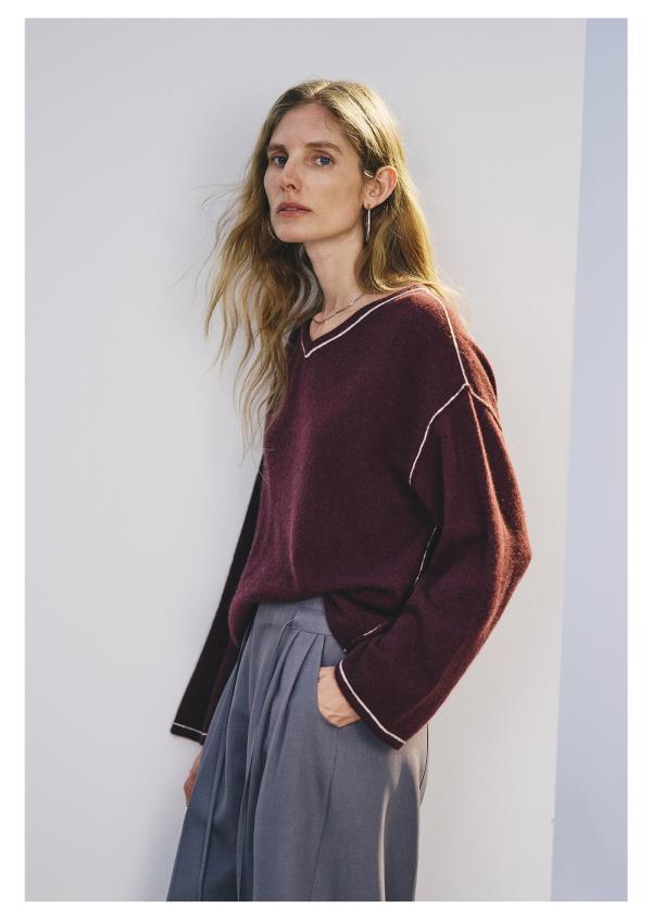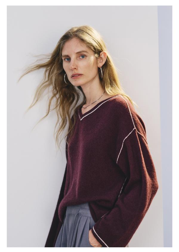 棉仓3661505006-含牦牛绒v领朗姆酒色毛衣