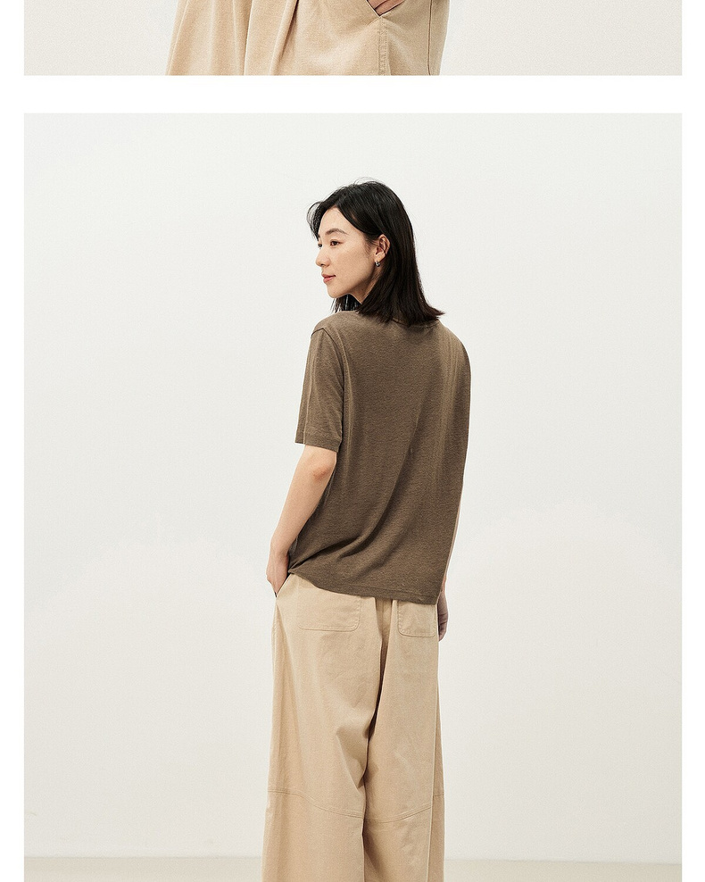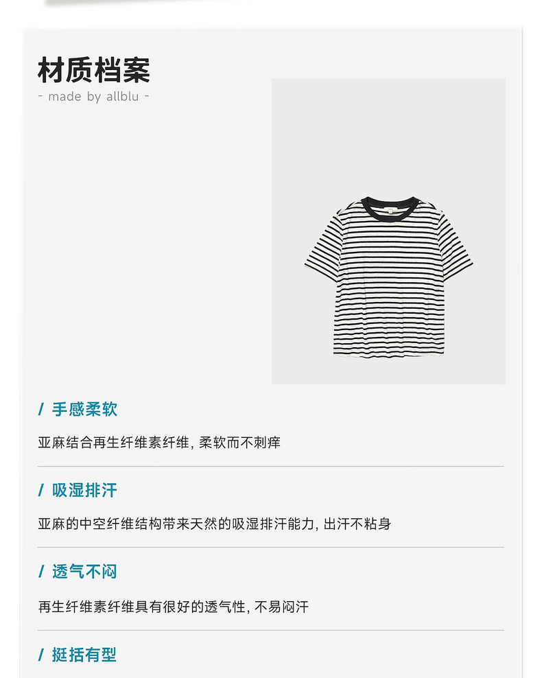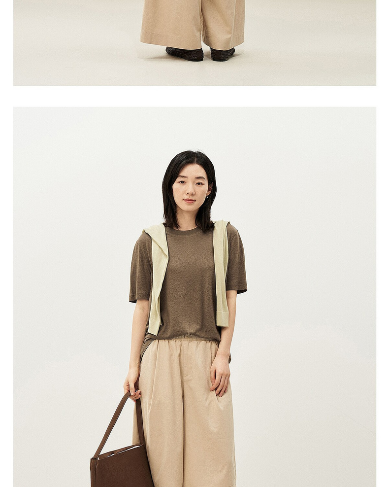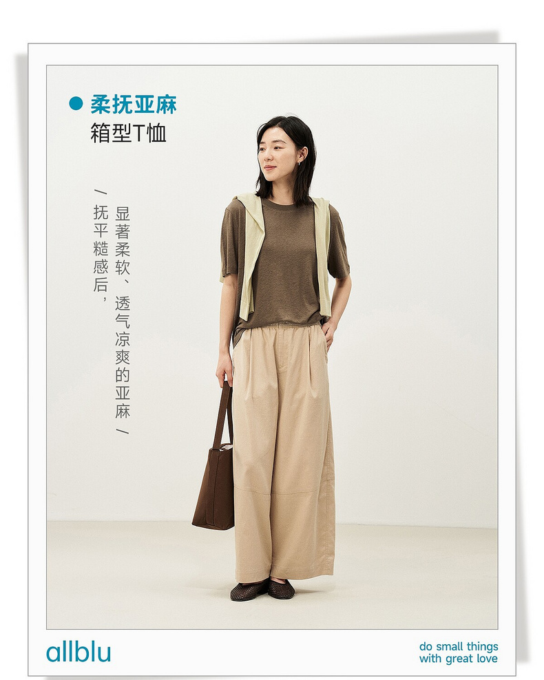 allblu女装“透气凉爽”26夏季新品【柔扶亚麻】箱型T恤上衣