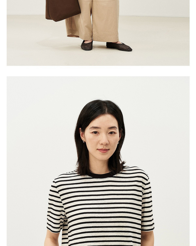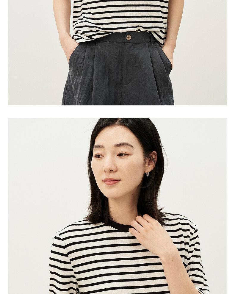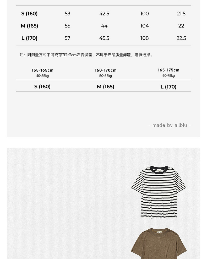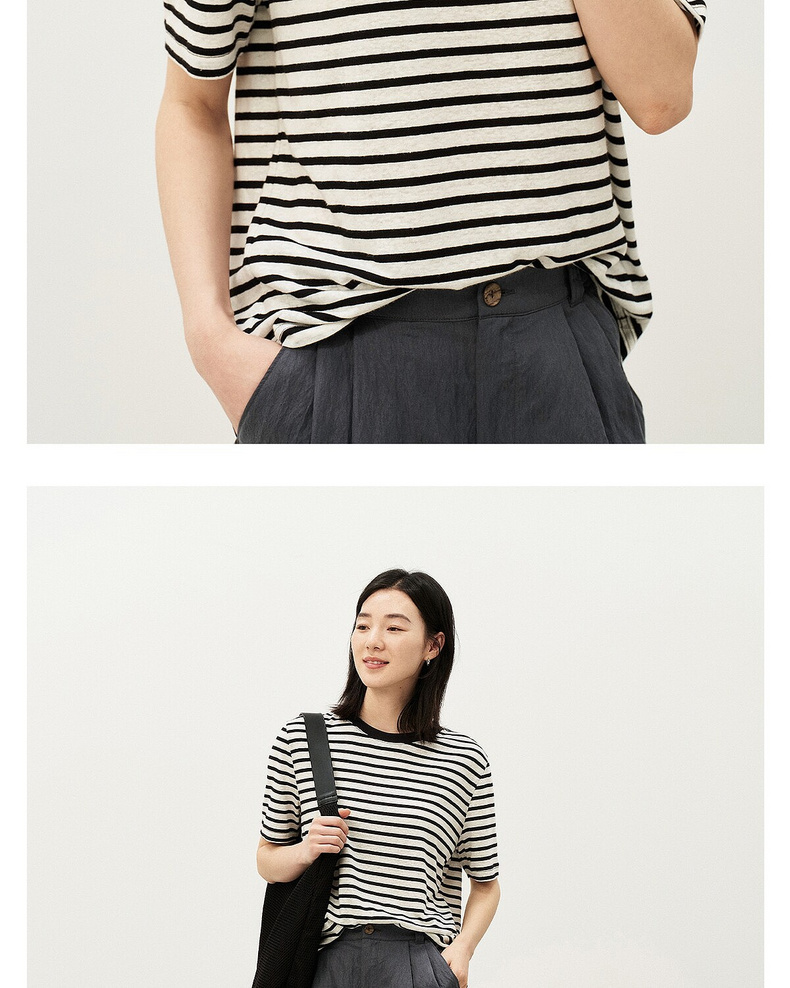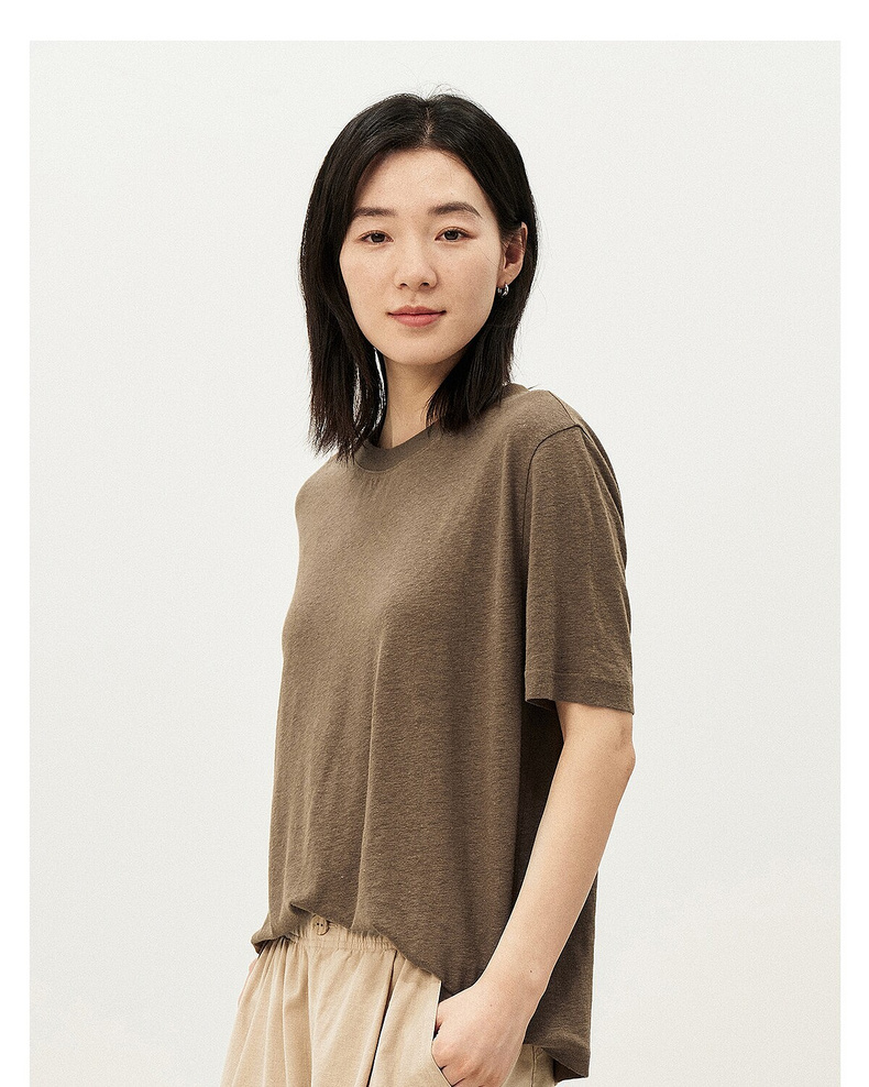 allblu女装“透气凉爽”26夏季新品【柔扶亚麻】箱型T恤上衣