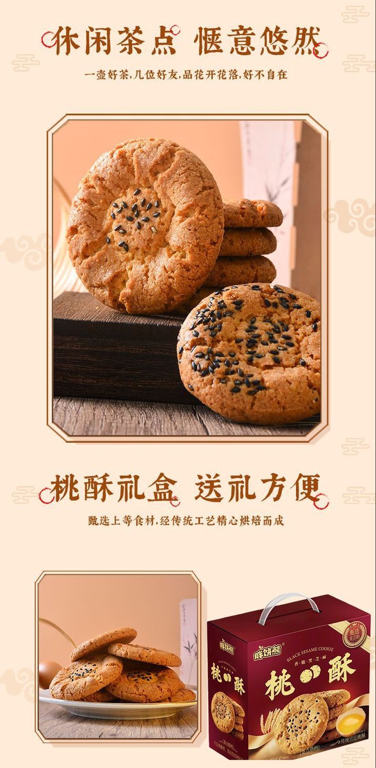 【秒杀❗抢🔥黑芝麻桃酥礼盒】甄选品质原料制作,酥松香浓入口即化儿时的味道,色泽金黄饱满酥脆,传统中式糕点礼盒,春节送礼长辈年货礼盒零食大礼包L