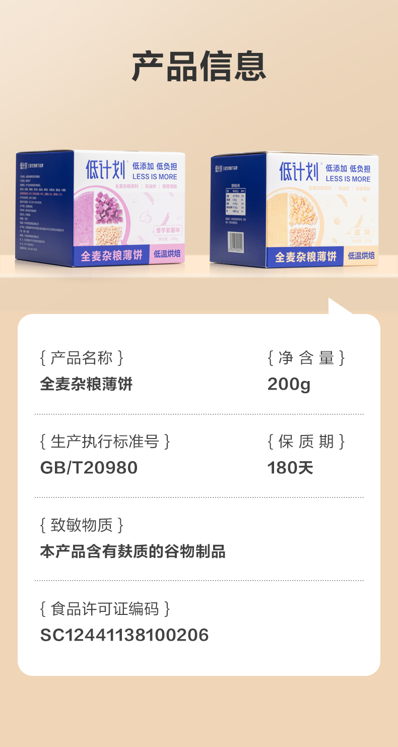【积分商城】低计划全麦杂粮薄饼 200g/盒