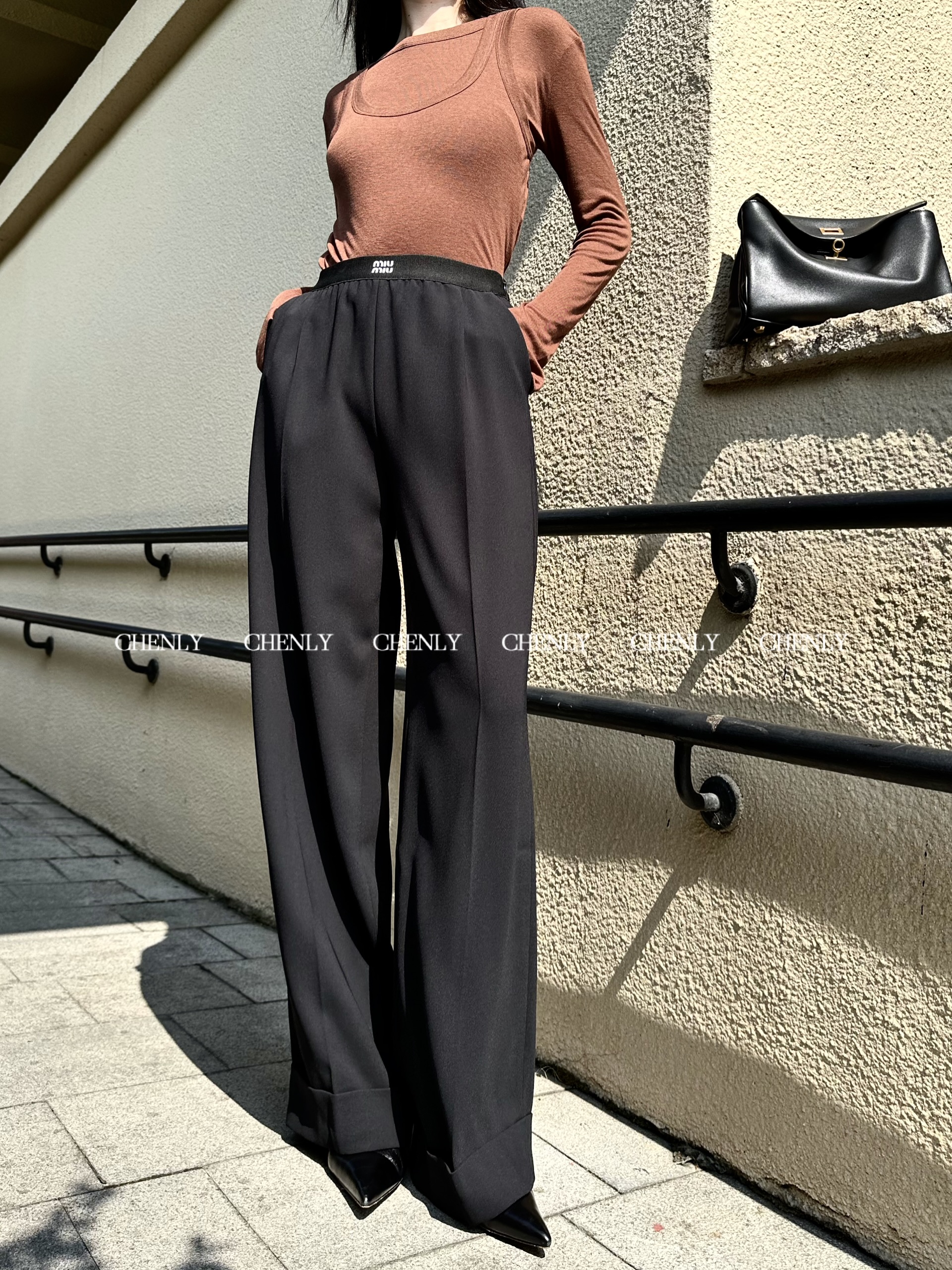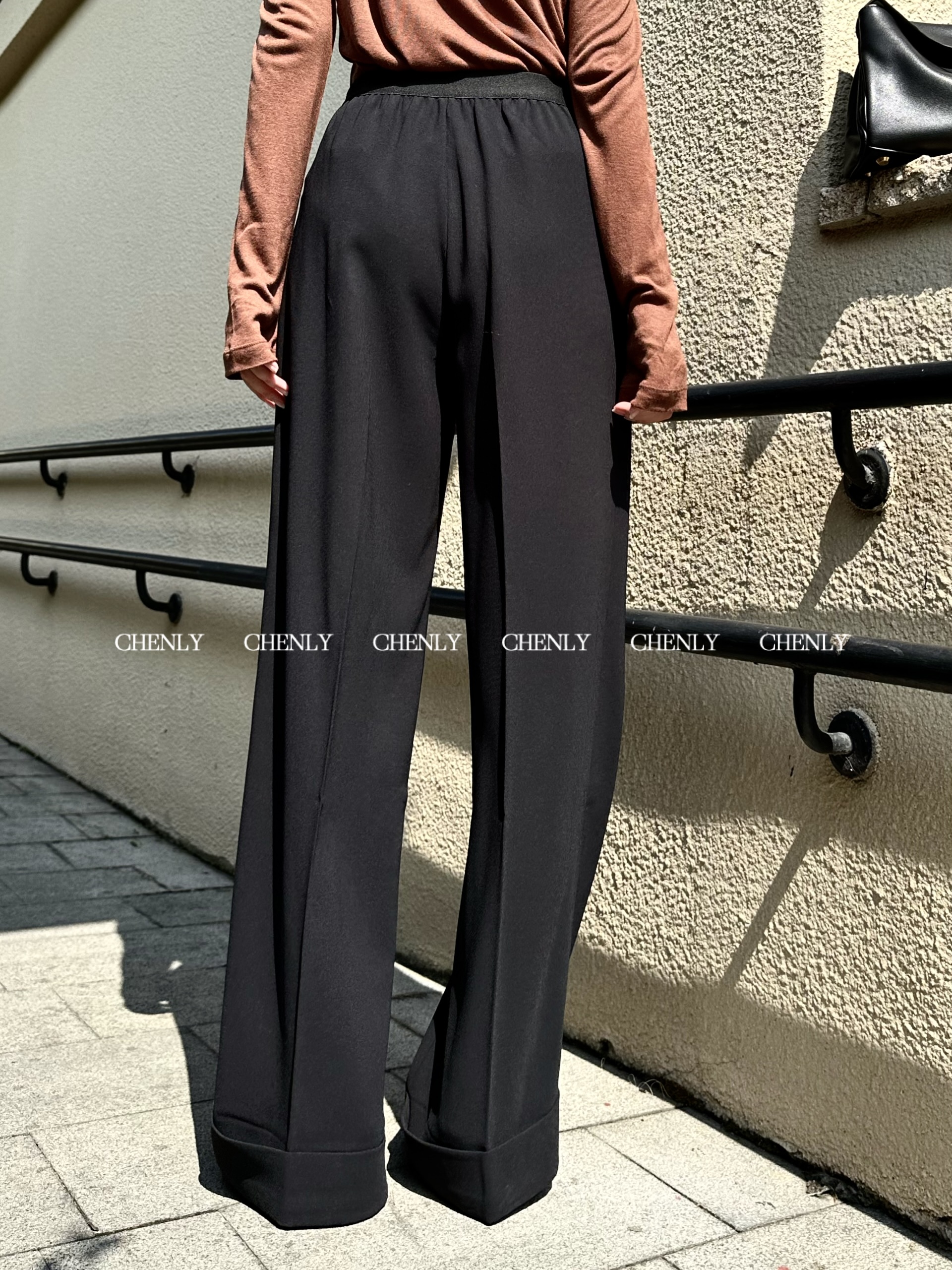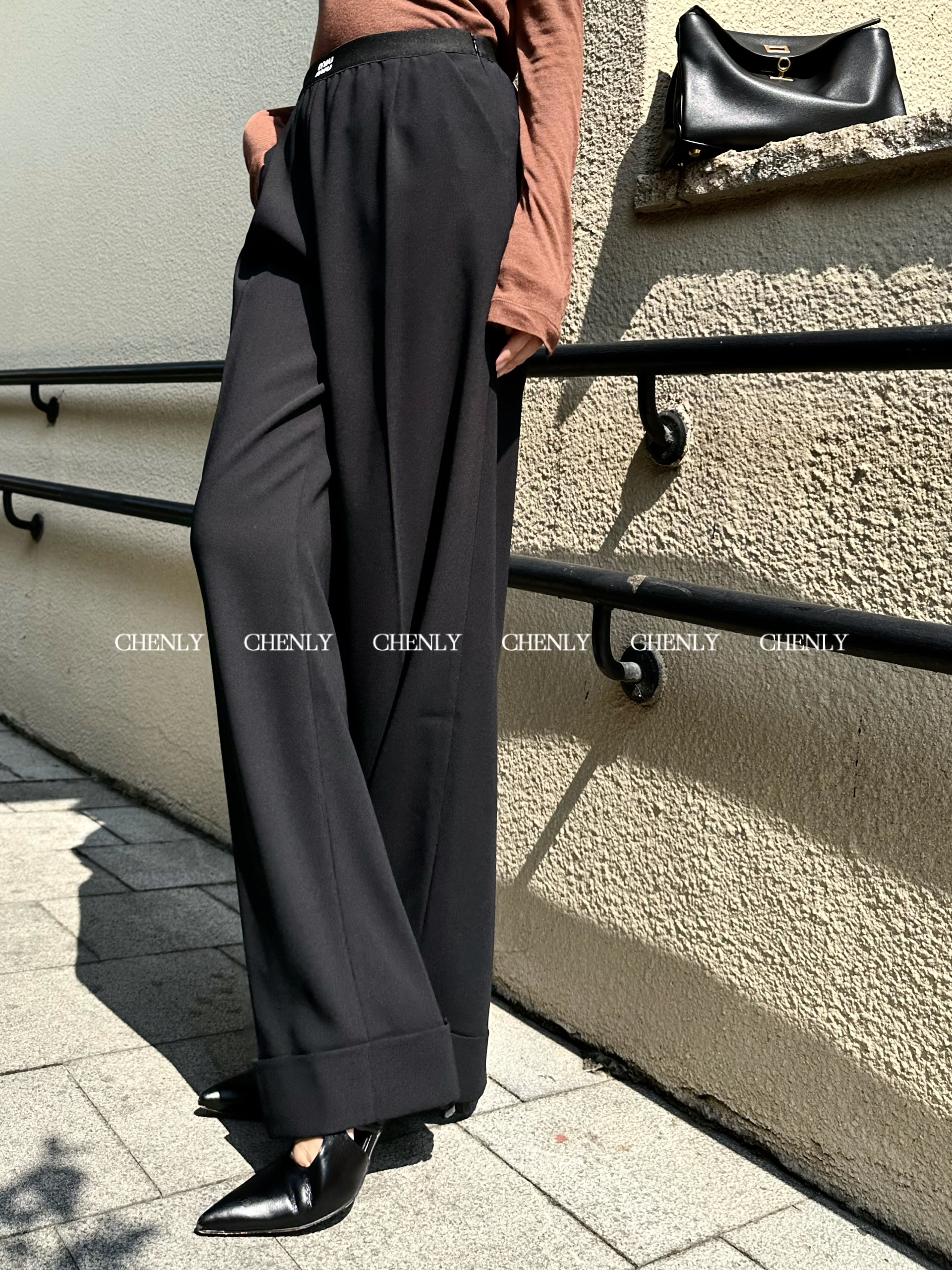 不退不换!尘衣|25春夏弹性字母腰头醋酸宽腿裤