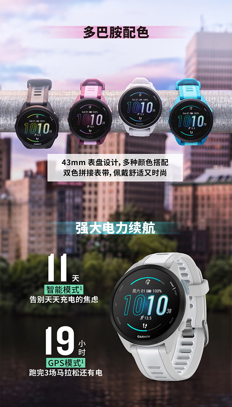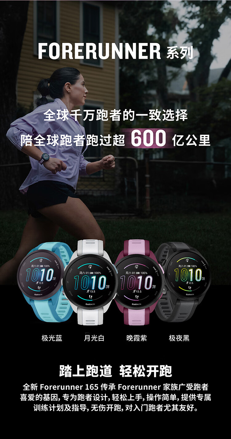 佳明(GARMIN)Forerunner165心率血氧多星定位户外智能运动手表 极夜黑【KLJJZQ15.0】