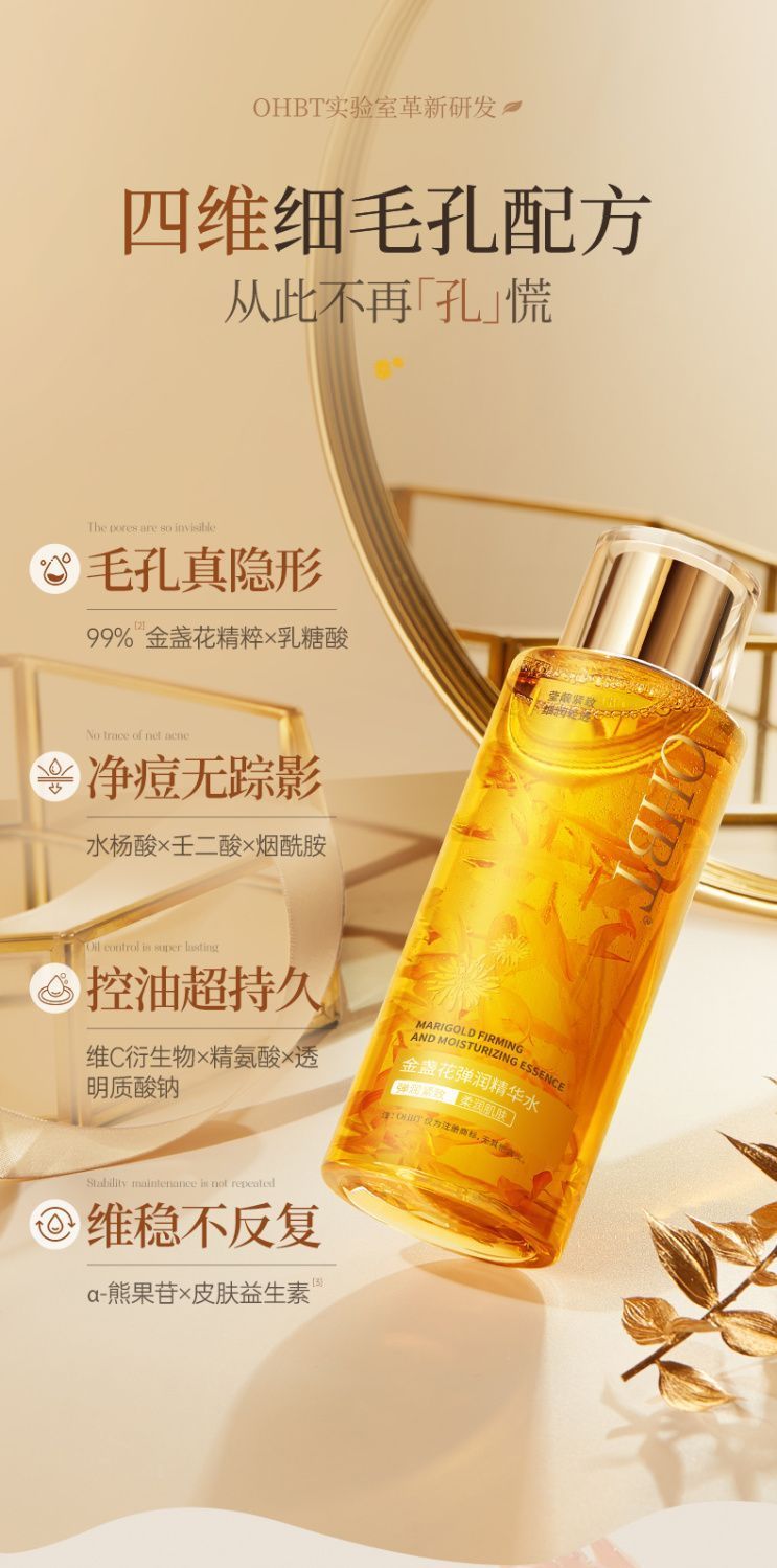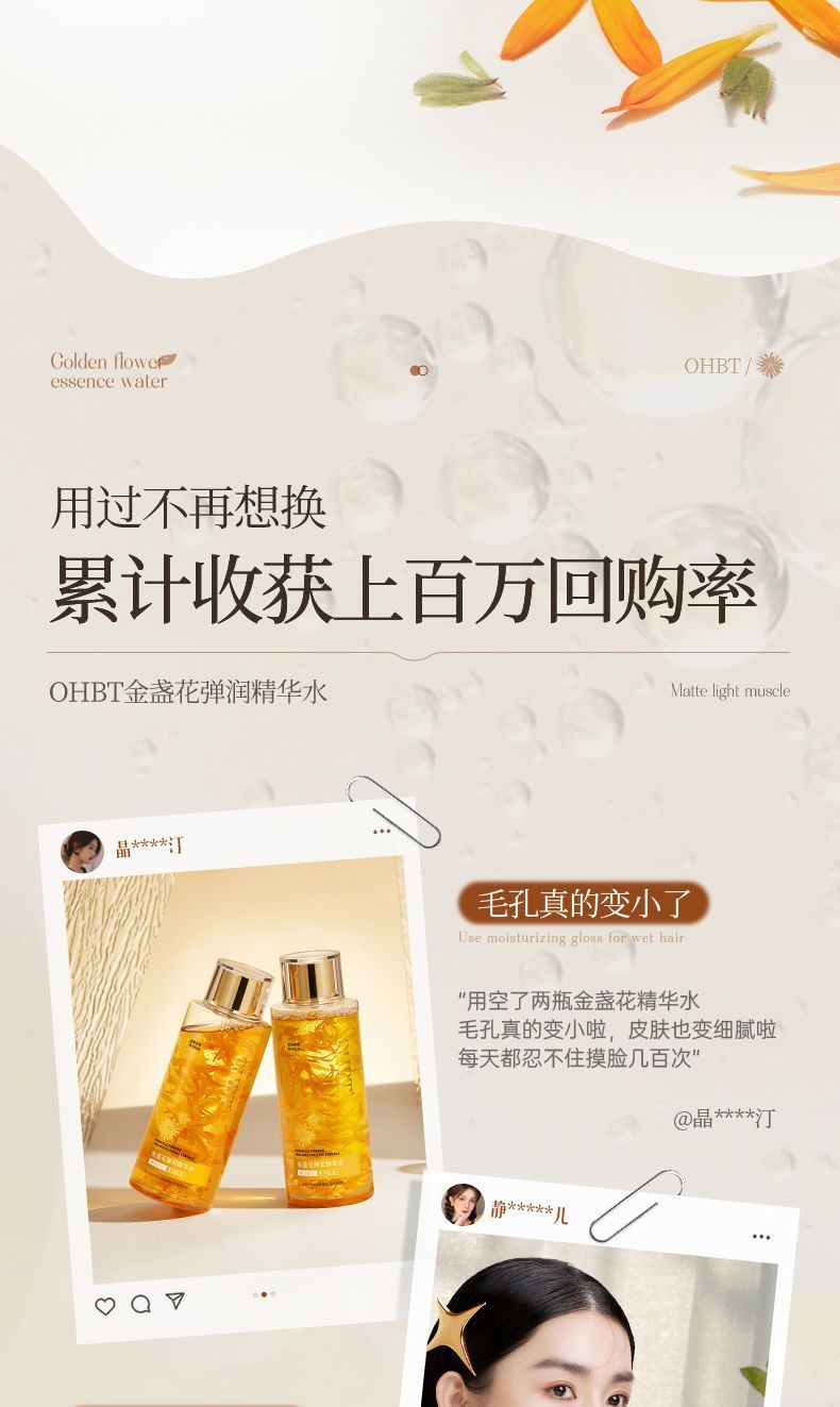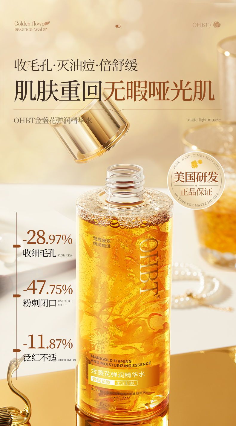 OHBT金盏花爽肤水熬夜去黄提亮控油收缩毛孔保湿补水精华水抗衰老