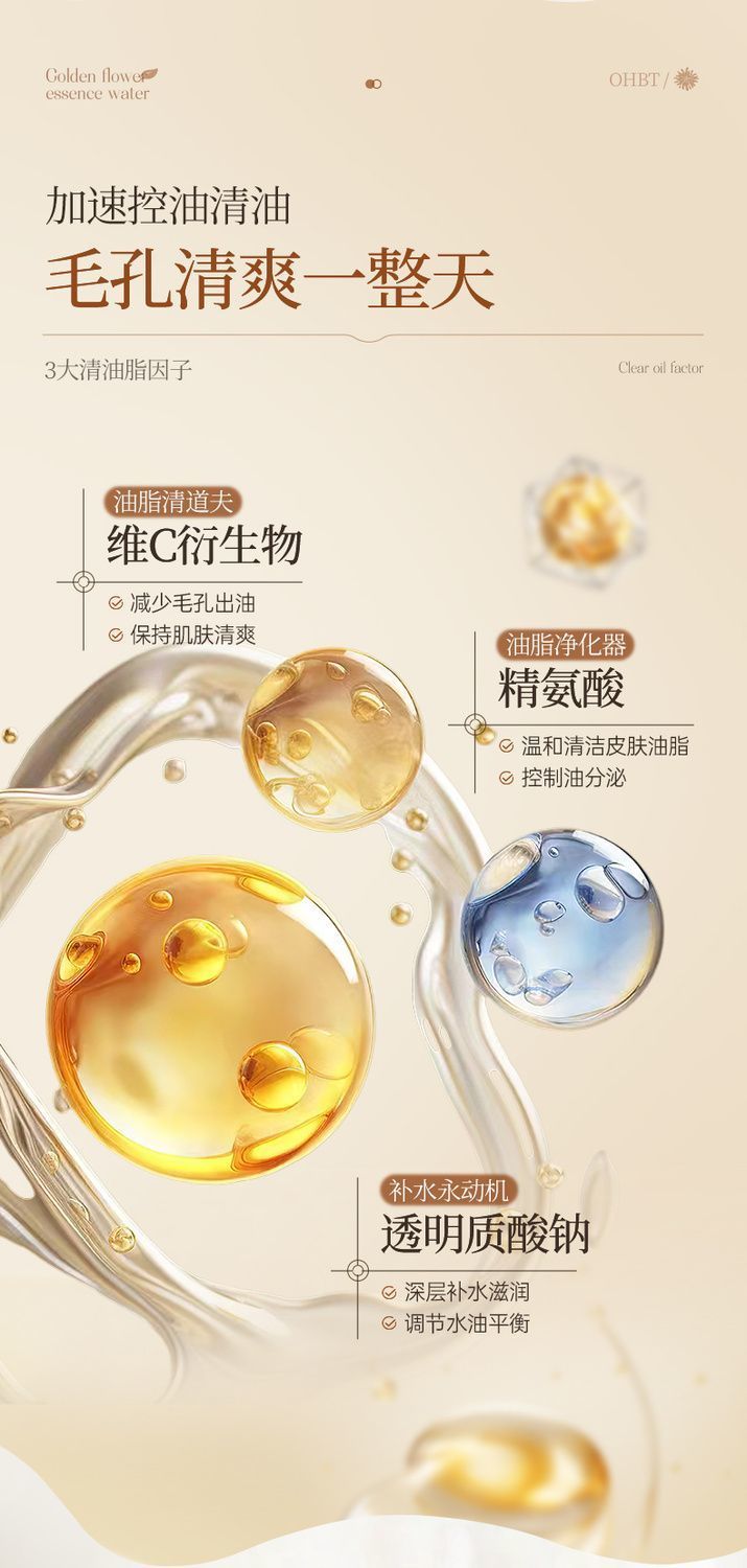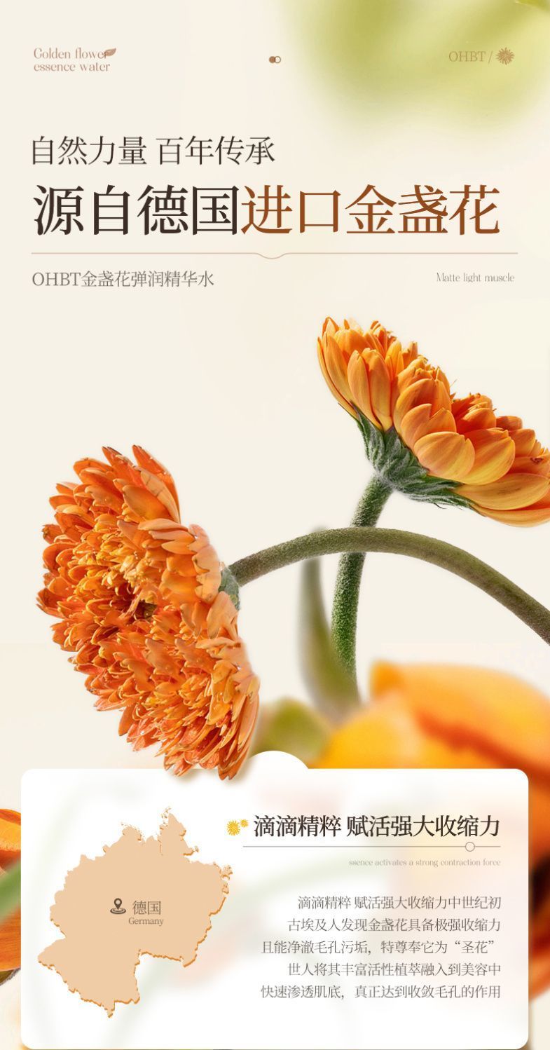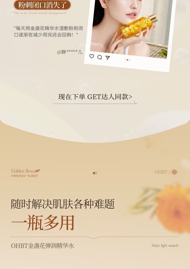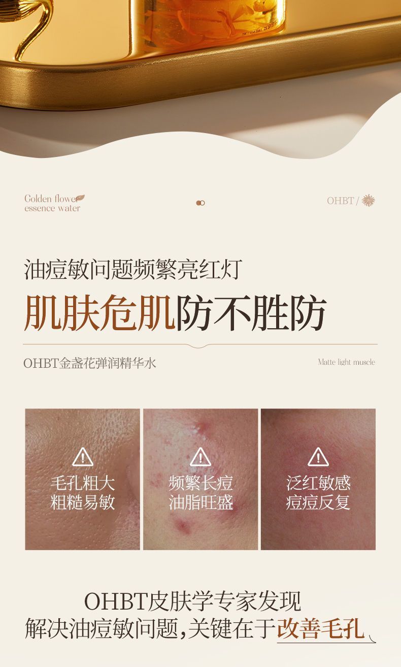 OHBT金盏花爽肤水熬夜去黄提亮控油收缩毛孔保湿补水精华水抗衰老