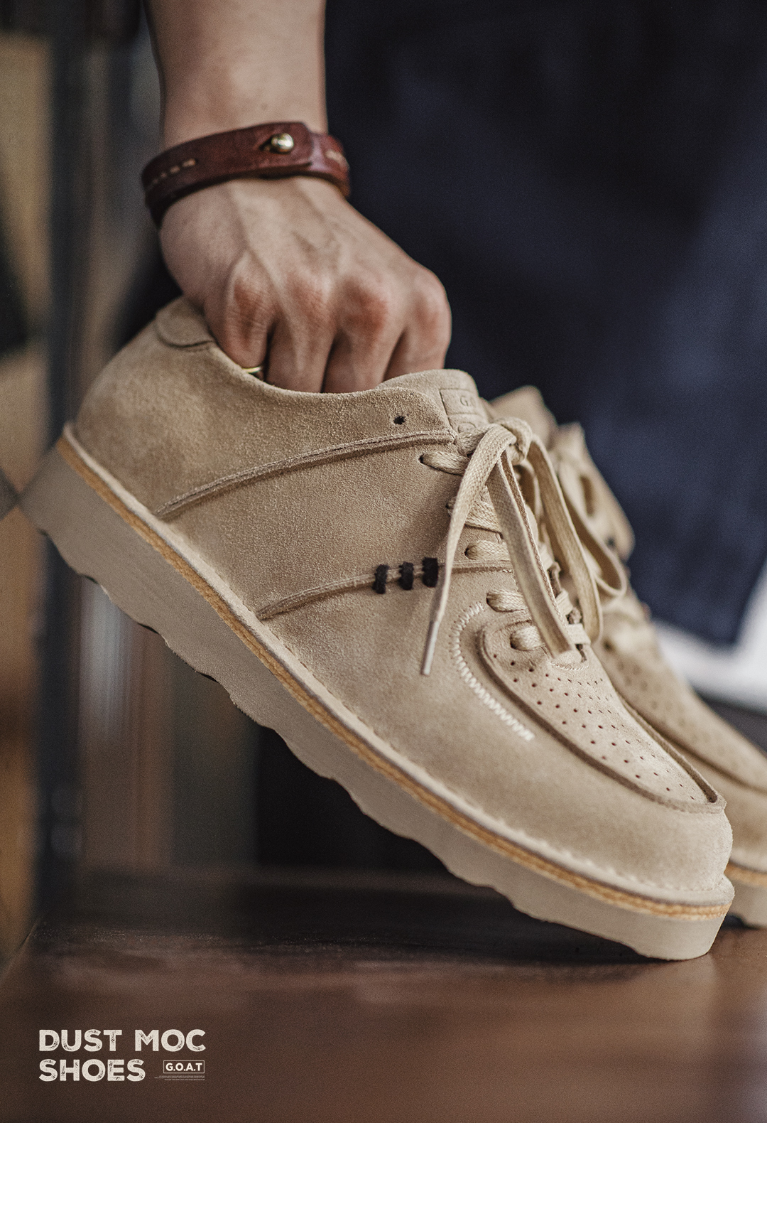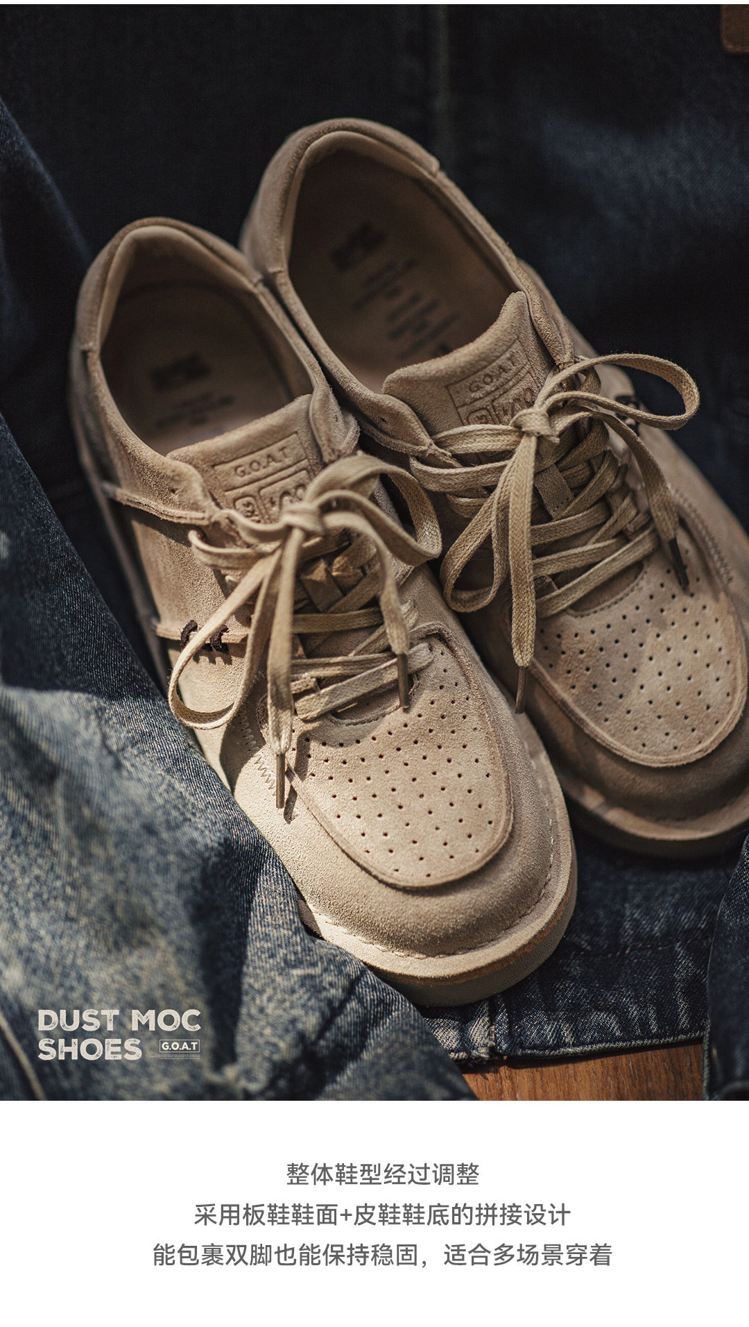 马登复古工装鞋男士秋季新款休闲百搭厚底鞋真皮透气反绒牛皮板鞋