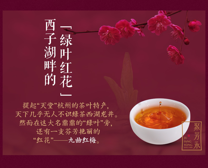 聚芳永【九曲红梅红茶】J1茶叶100g铁盒装