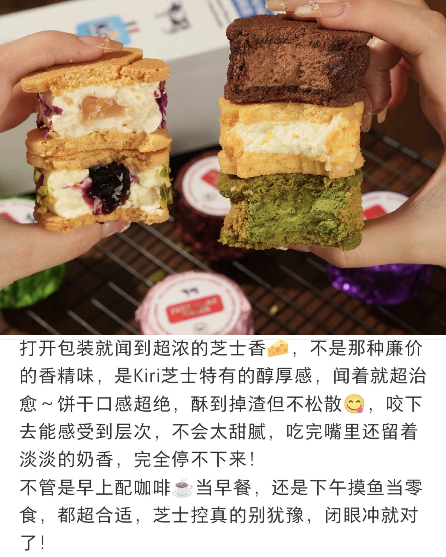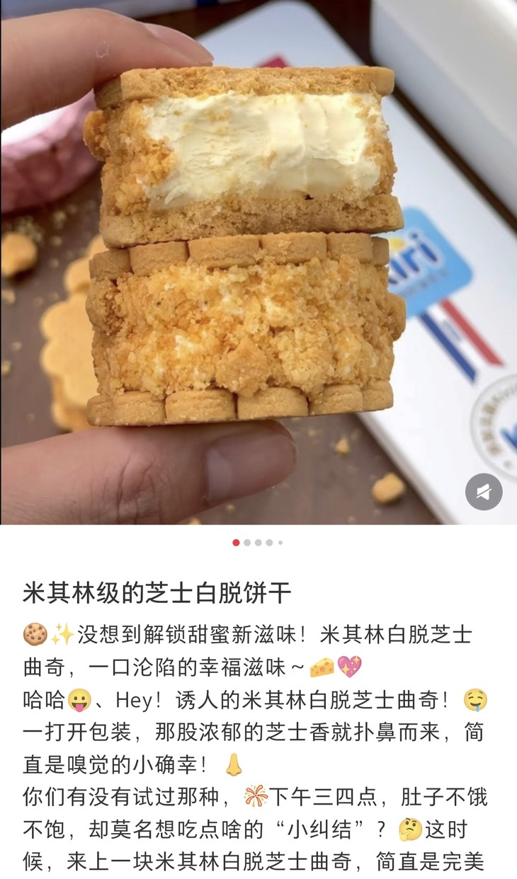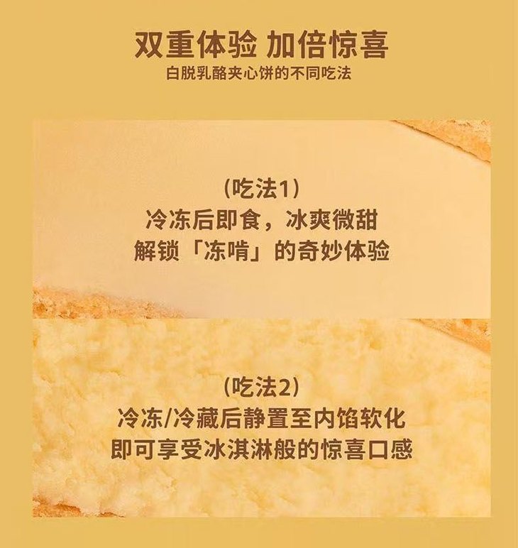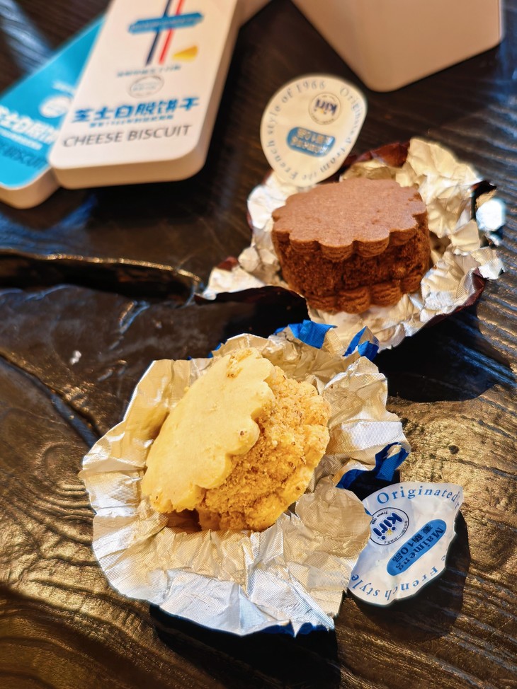 饼干是用小铁盒包装,还是蛮美貌的,吃法也特别多:冷冻后直接冻啃,冰爽微甜的口感带着几分韧劲,芝士夹心仿佛变成了浓郁的冻乳酪;冷藏后吃也别有风味,内馅慢慢软化,此时夹心会呈现冰淇淋般的丝滑质地,入口绵密顺滑,每一口都像在吃乳酪冰淇淋;常温食用时,外皮的酥脆感最为突出,芝士与黄油的香气瞬间迸发,搭配一杯黑咖啡或红茶,既能中和浓郁风味,又能让茶香与奶香相互映衬,惬意感直接拉满!