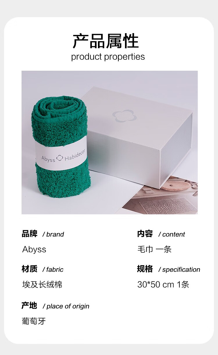 【6F】爱比丝Abyss葡萄牙SUPER PILE 爱比丝埃及长绒棉小毛巾手巾纯绵家纺 30*50cm